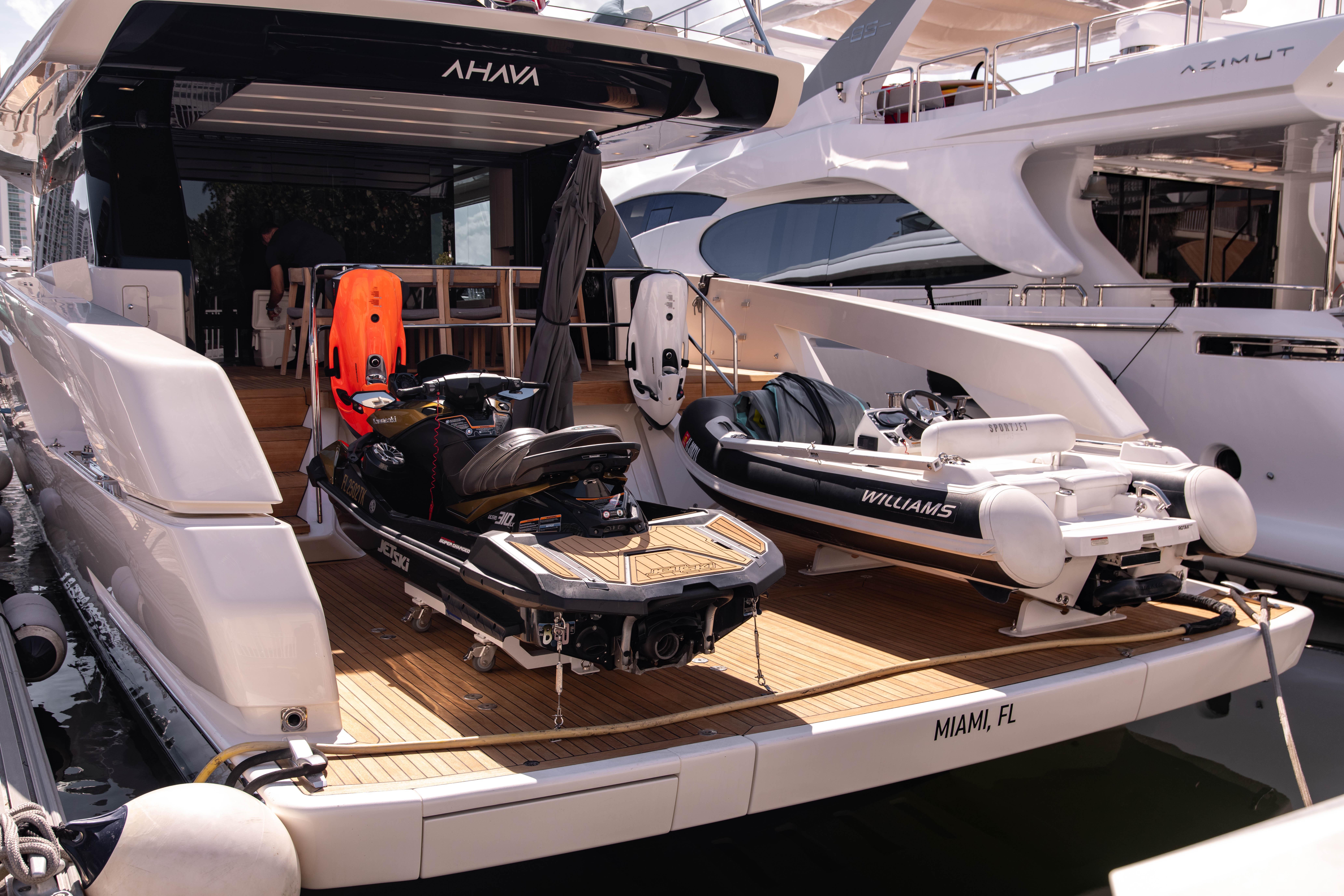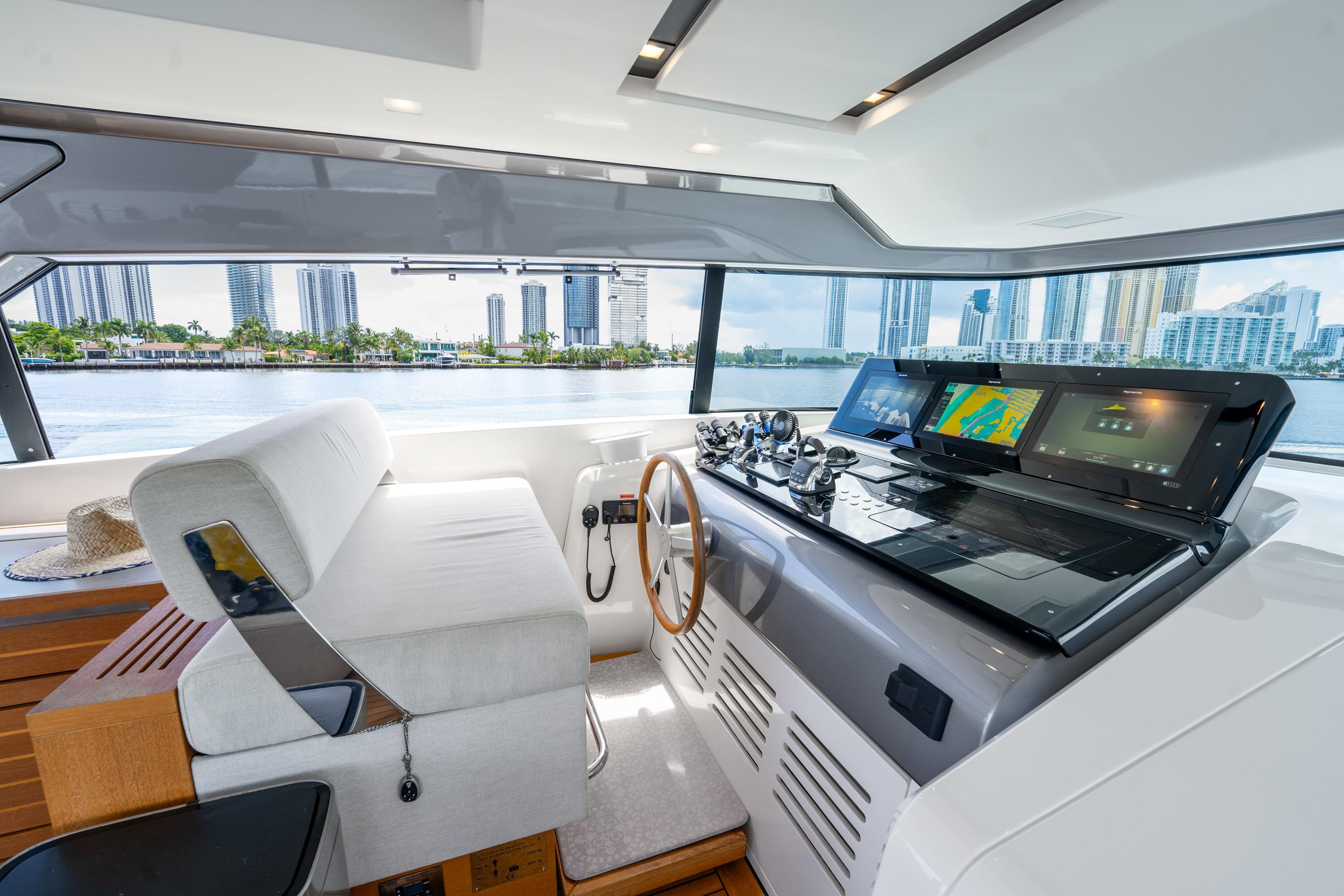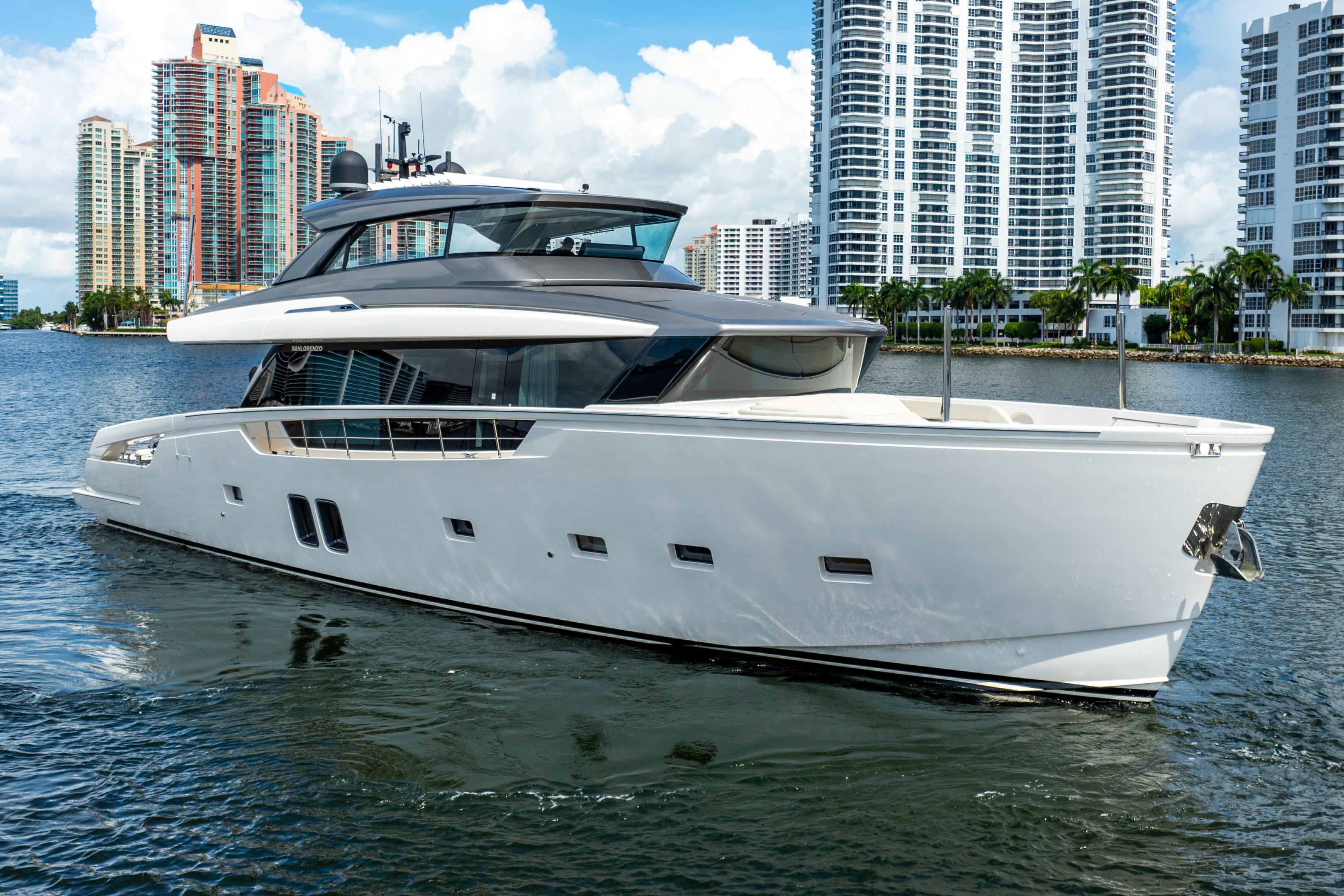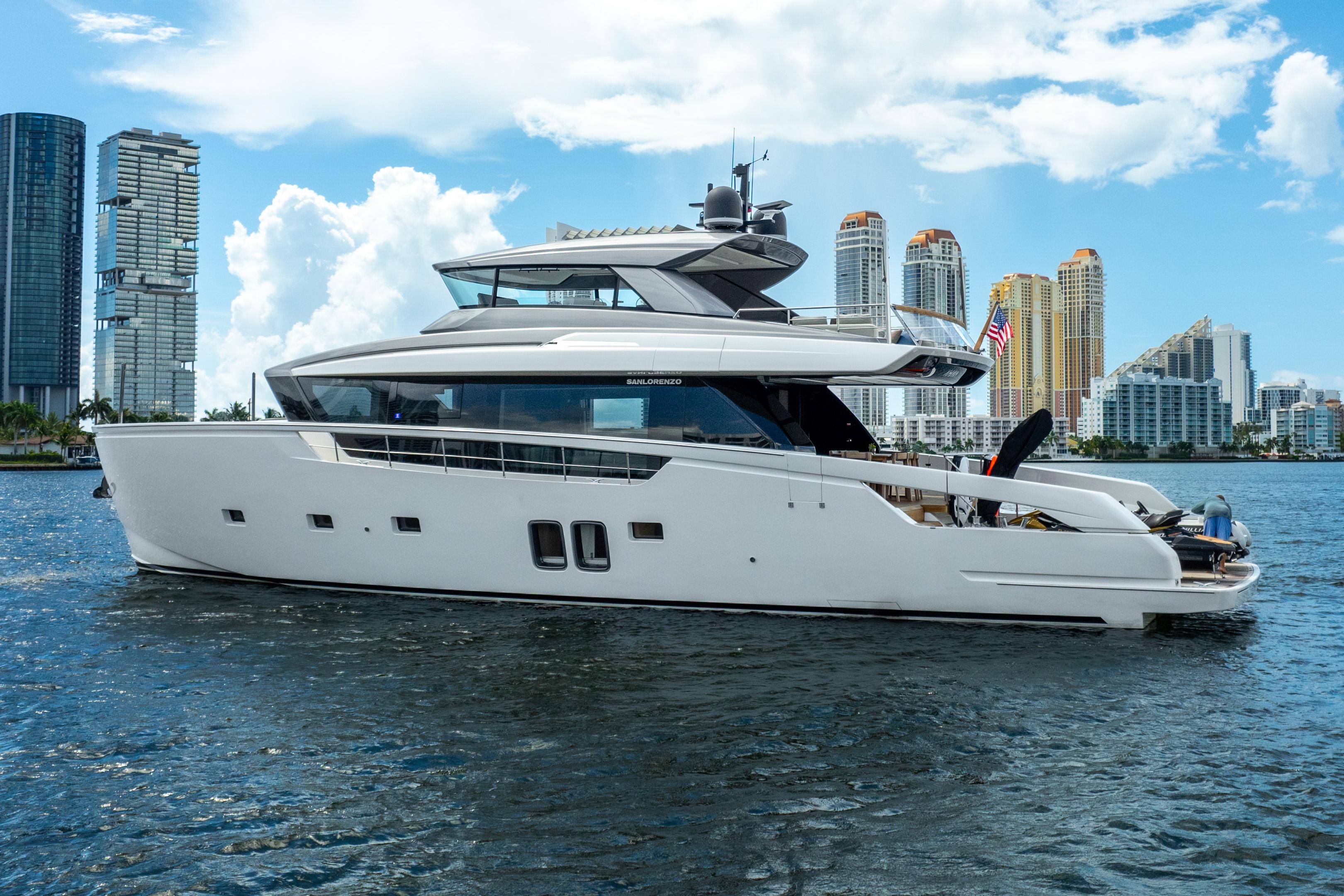 THE ONLY SX76 FOR SALE IN NORTH AMERICATurnkey For U.S. Ownership | US-Spec + US Import Duties PaidOwn a phenomenally maintained & upgraded SX76. Maintained by three full-time crew and easy to see in Aventura, FL.RECENT UPGRADES:DirecTVStarlinkRaymarine 12kw Open ArrayUpgraded Dometic A/C system (2 x 60,000BTU)KEY FEATURES4 total guest cabins (3 full + 2 twin beds) all with en suite bathroomsCMC fin stabilization (zero speed + at anchor)ANG voltage regulation for shore powerWasher/dryerElectric blackout shades + sun shades in guest roomsCreston digital control system for all tech (DirecTV, audio, lighting, and more)Full kitchen + forward dining area on main deckWine fridge + ice maker in forward dining areaSecond helm station hidden in starboard aft cabinetWilliams SportJet 345 tenderHidden davit (1,100 lbs capacity) in port swim platform for toy managementHydraulic swim platformAft passerelle with up/down function + water entryHidden television + grill on flybridgeElectric louvered sun shade in hard top roofElectric flybridge windows (port + starboard)Bow seating with hi/lo table and Sanlorenzo sun shade Length: 77.9ft // 23.75mMax Beam: 21.65ft // 6.6mDraft(Full Load): 5.4ft // 1.65mEngines: 2 x Volvo IPS 1200Cruise/Max: 19/22 knotsCabins: 4Heads: 4 (all en-suite)