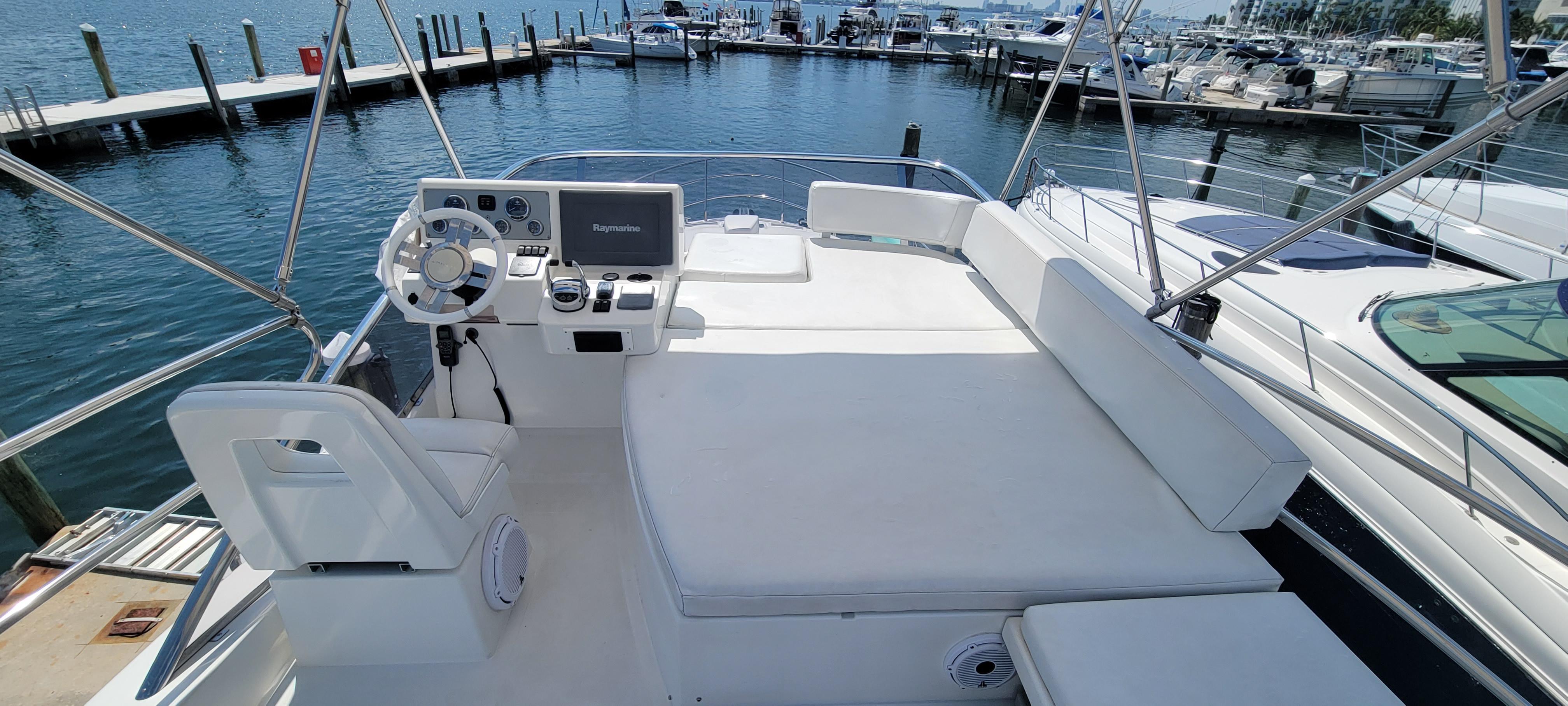 --------------------------------------------------BOAT SHOW SPECIAL!!!!-------------------------------------------The Azimut 45 have a structural design of the hull has been approved by RINA (EC approval category B). This guarantees the structural quality which is enhancedby the use of innovative materials and technologies.The hull and all the superstructures (deck, deckhouse, flybridge) have been built using the infusion technique. This construction technology reduces weight and, at the same time, improves construction control and quality. Bow and engine room trays: these are structural trays made through infusion. The key element of this transformationis the increasingly widespread use of the latest structural adhesives (replacing the traditional clamps).Fiberglass structures using multiaxial fabric with a powder binder. Neopentilic and isophtalic spray gelcoat. PVC foam is used for the sandwich panels on the hull, deck and superstructures. The engine room and bow anticollision structural bulkheads are made of PVC infused sandwich.The structural calculations have been checked using FEM analysis. FEM models were generated for the hull structures. This calculation system is used in the aeronautical and car manufacturing sectors. It allows us to simulate the behavior of a boat under extreme conditions, accurately checking the levels of stress and deformation.DCPD resin was used for the internal layers of the hull and for the superstructures.Vinylester resins were used for the external layers of the hull (resistance to osmosis and staining, print through).Recently done!!-New Bottom Paint & Propspeed-New carpet inside the cabin -1000 Hours Services on engines and Gen set-New underwater lights -New AC unit at main saloon