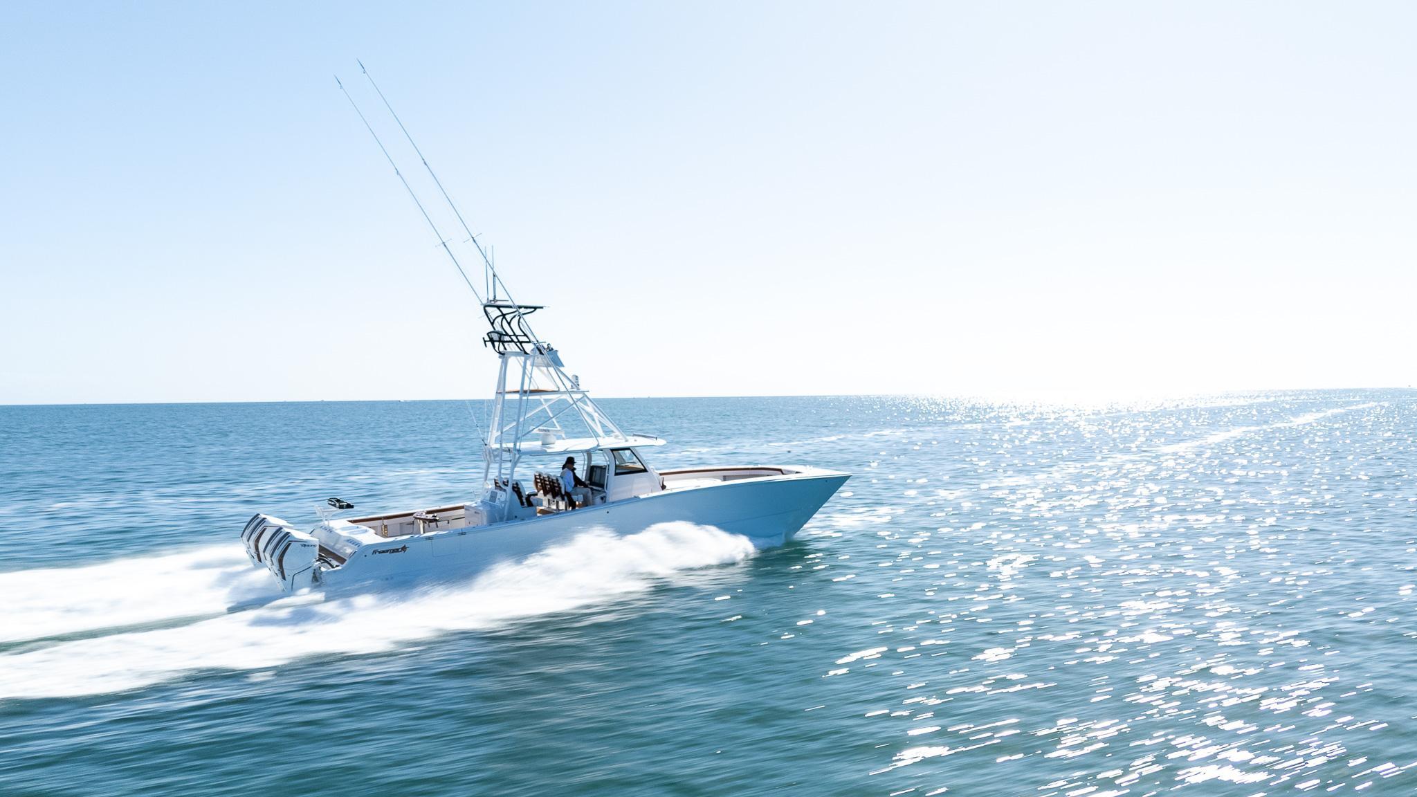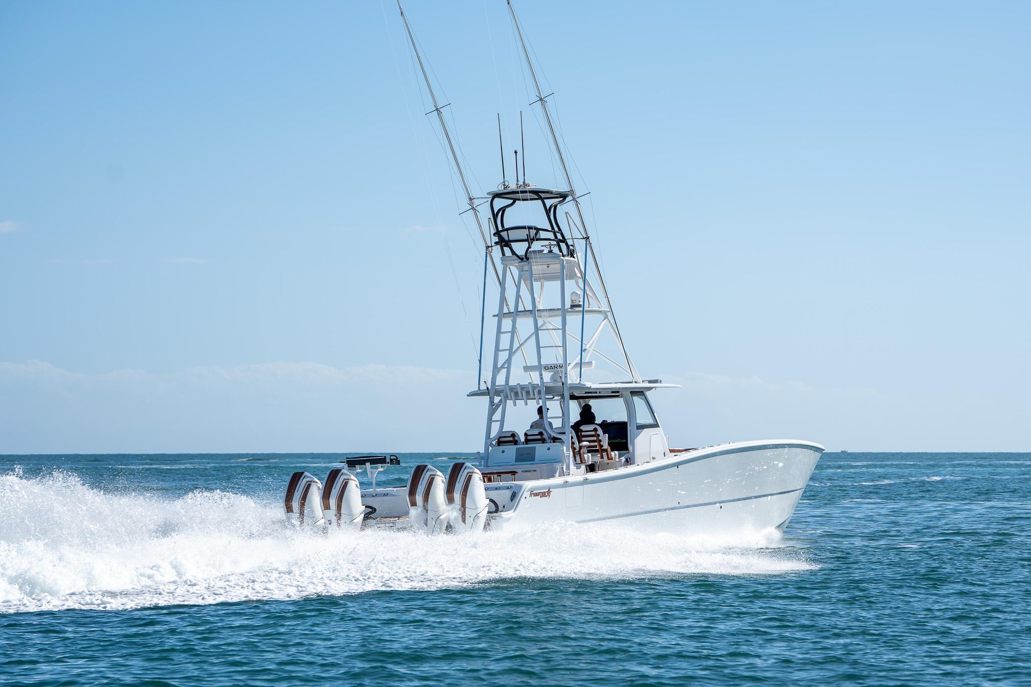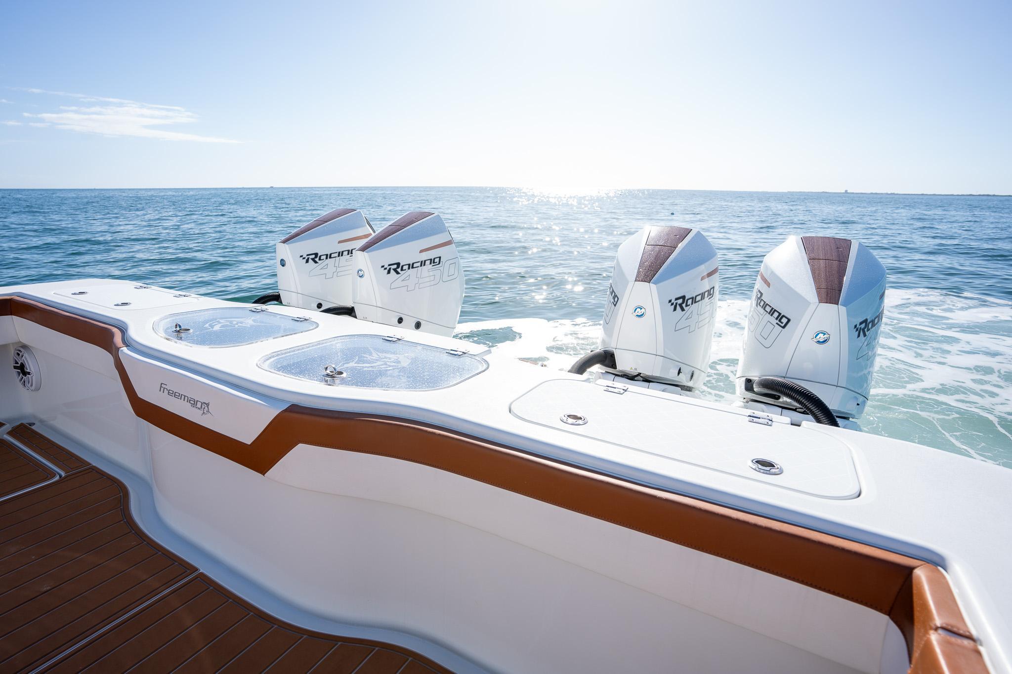 2022 Freeman 47 powered by quadruple Mercury Racing 450R's with ONLY 100 hours!Extended Platinum Warranty until 2028Matterhorn White HullSecond StationOptimus Joystick 360 with SetpointDual Row SeatingPremium JL Audio SystemFLIR Night Vision CameraLees OutriggersCustom Teak Rocket LauncherForward 500 qt insulated boxes Port & Starboard XL Storage Boxes Port & StarboardMid Ship Mechanical Boxes Port & Starboard70 gal. Livewells with Pumpout Port & Starboard100qt Transom Box Port & StarboardFreeman 4 Outlet Seachest2 Raw Water Wash Downs | Starboard Aft and Mid-Ship3 Custom Bucket Helm ChairsMiddle Row Custom Bolster BenchDeluxe Leaning Post with Rear Facing 16" Garmin Display2 Drink Storage CoolersTackle Storage Above and Below CoolersXL Tackle Storage on Either SideCoaming Bolsters Complete Wrap AroundCushioned Coffin Box with Backrest and Arm RestsDeluxe Electric Head(2) Dive Doors Port and StarboardFusion RadioRigid Light Bar 50"3kw Airmar R599 Medium/Low Frequency1kw Airmar B175 High/Wide FrequencyCustom Fitted Polycarbonate Windshield Enclosure 16 Rod Holders6 | 10" Stainless Steel Cleats4 Under Gunnel Universal Gaff/Brush Holders6 Under Gunnel Electric Plugs Spreader Lights (8 Total) | 2 Forward, 2 Rear, 2 Port, 2 StarboardOn-Board Battery Charger Multi-Color Dome Lights (6 Total)Double Console Doors Multi-Color Under Gunnel LightingForward Rod Locker Storage 4 Rods Per SideMulti-Color Under Water Lights (6 Total)Box LightsTwin 50 Gallon Pressurized Transom LivewellsTwin 500 Qt Below Deck FishboxLED Navigation Lights28 Gunnel Rod HoldersFlush Mounted Transom Rod Holders 5 Port & StarboardCoffin Box Rod Racks (2)Retractable Boarding ladder