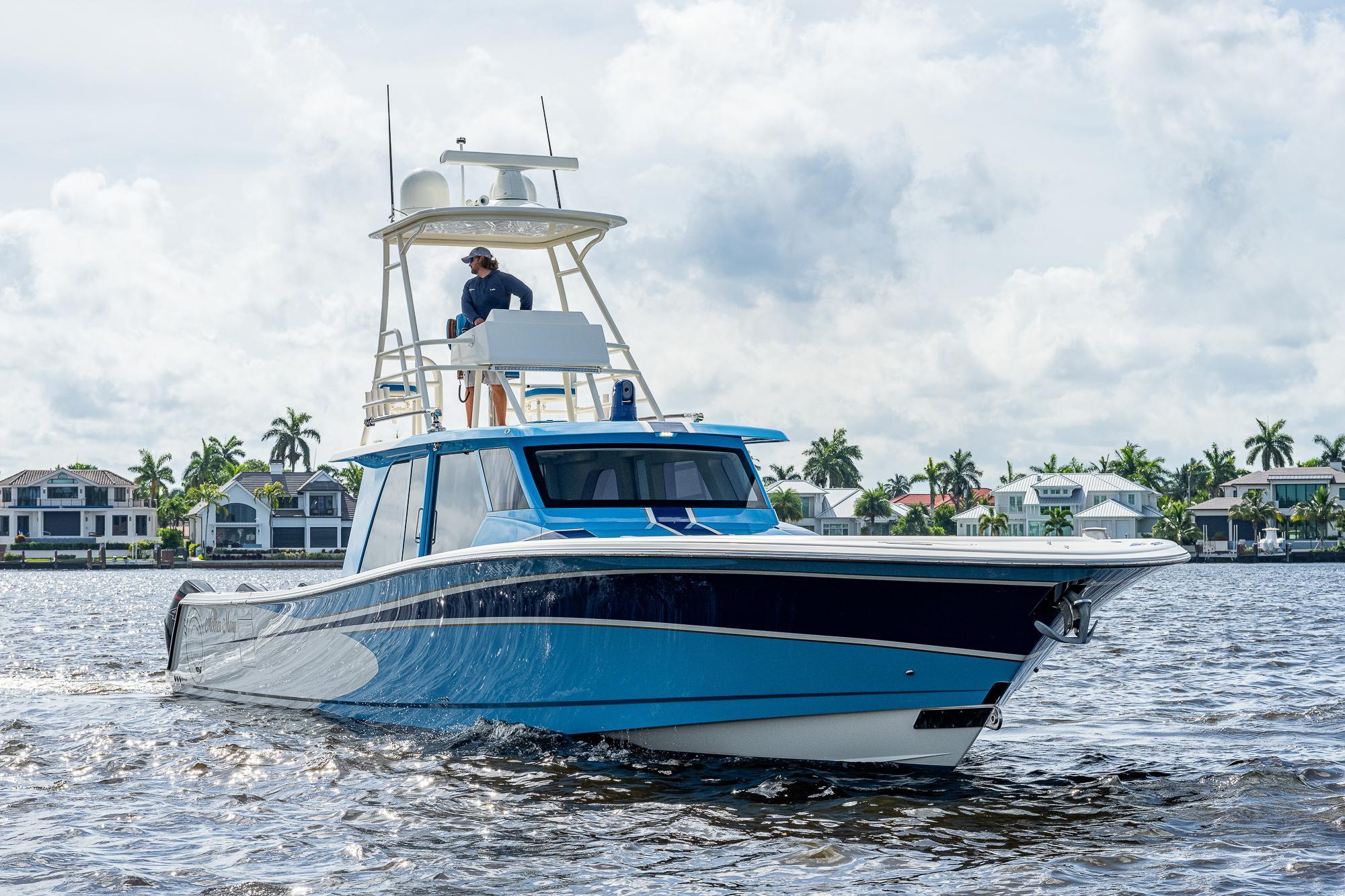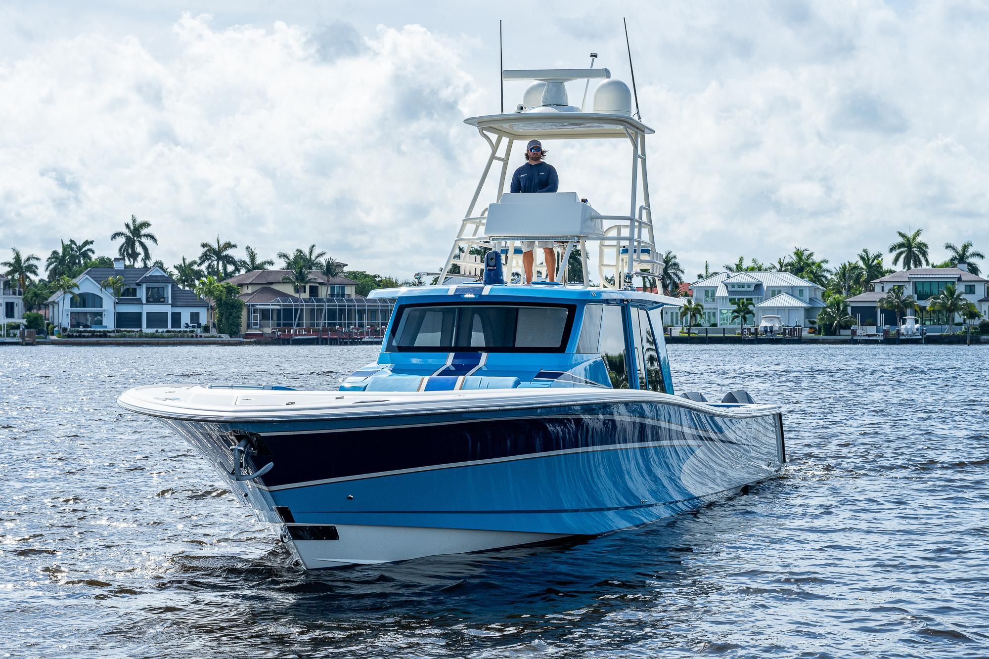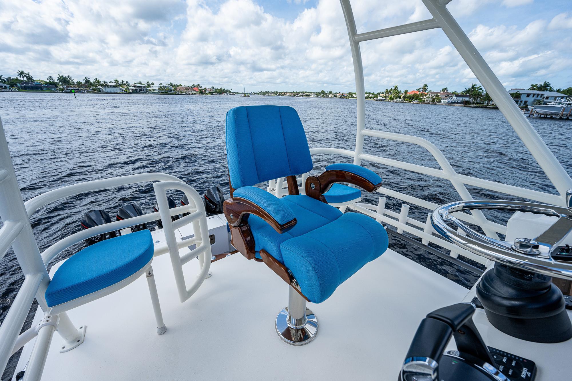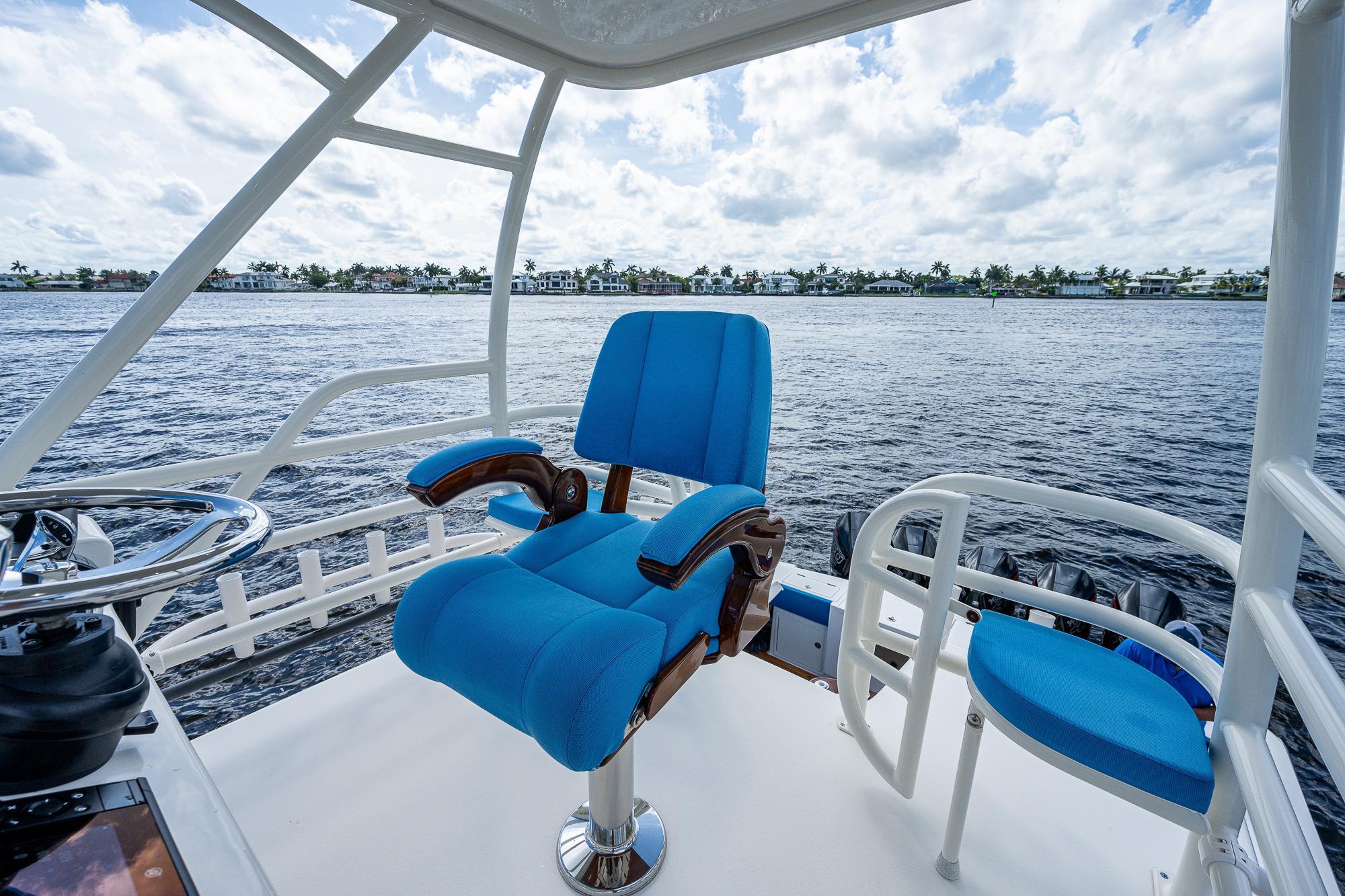 The Gulf Crosser 52 is arguably one of the most recognizable boats on the market and has created an entirely new category by combining the benefits of a traditional center console boat with the protection of an enclosed boat. It's a serious fishing machine but with a level of comfort that makes the boat ideal for many other uses, too. The most distinguishing feature of the 52 is the air-conditioned upper salon with a solid glass enclosure surrounding the helm and passenger seating area. This climate-controlled haven offers panoramic views and allows you to operate the boat in any type of weather conditions that you might encounter during your outings on the water. Gone are the days of hesitating to enjoy a lunch or dinner cruise aboard your center console boat out of fear that it might storm on your way home.