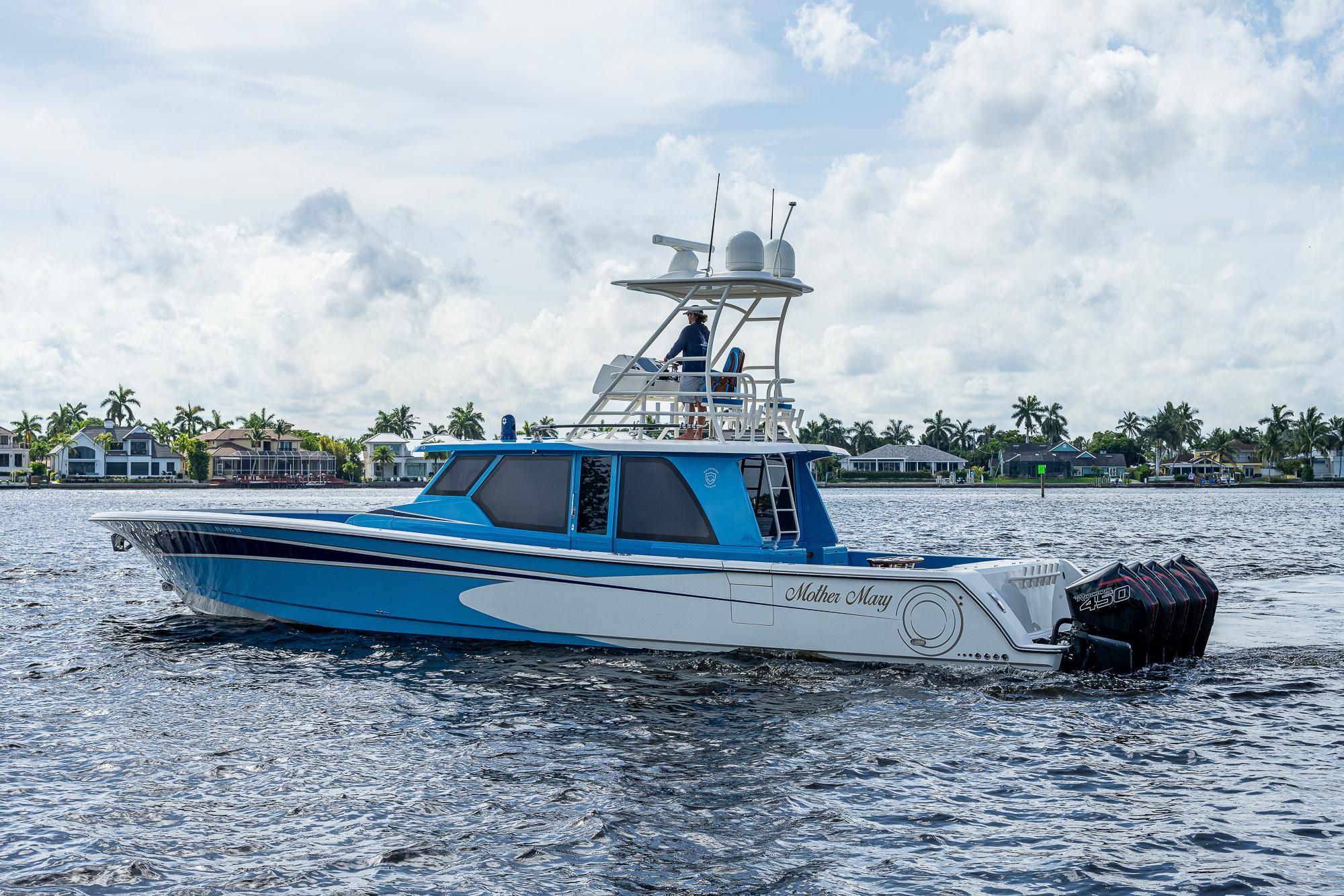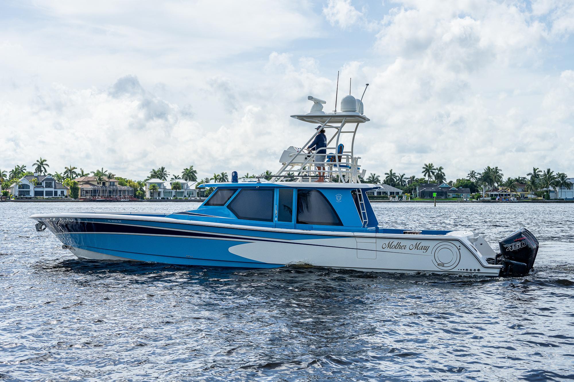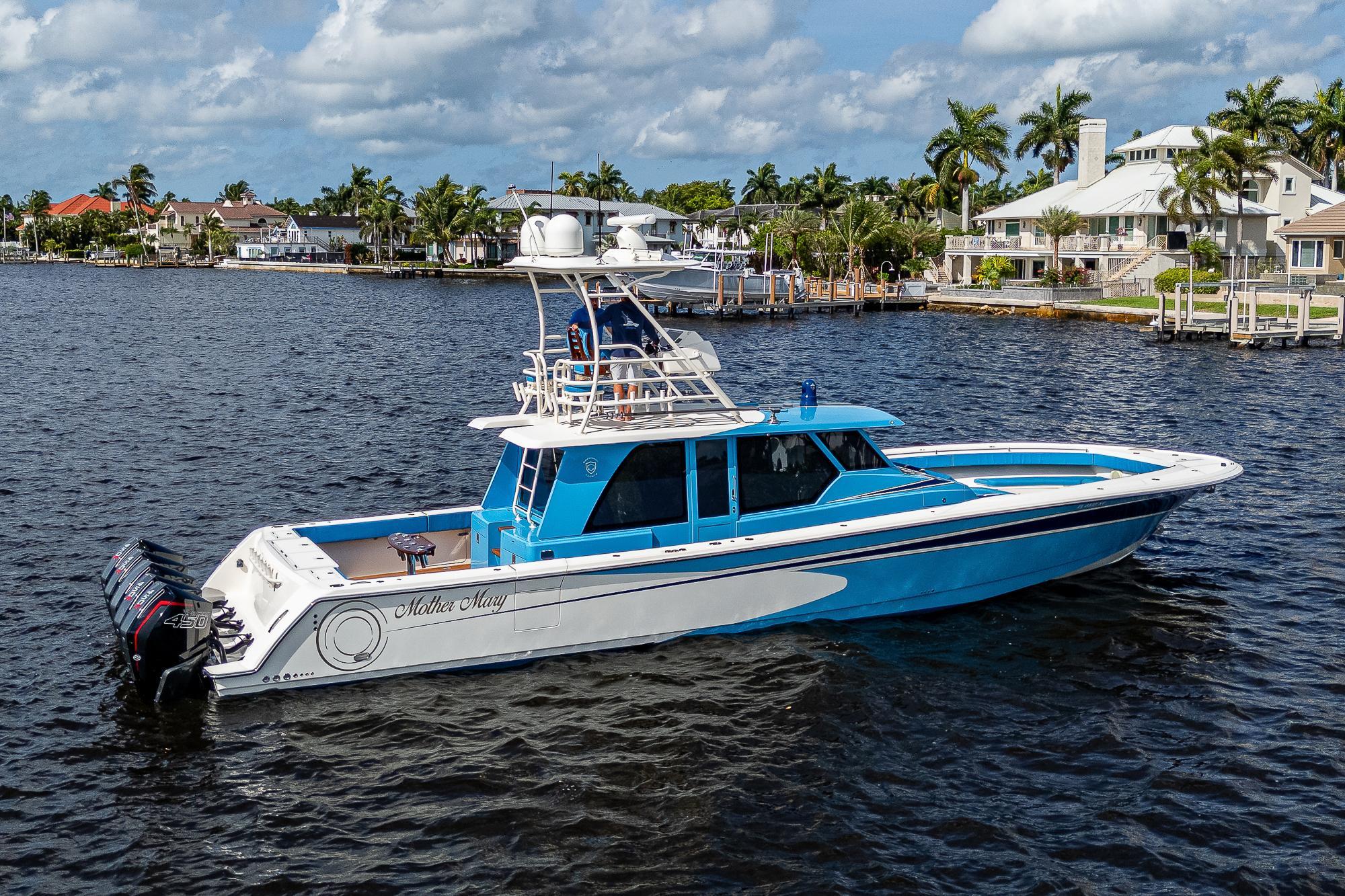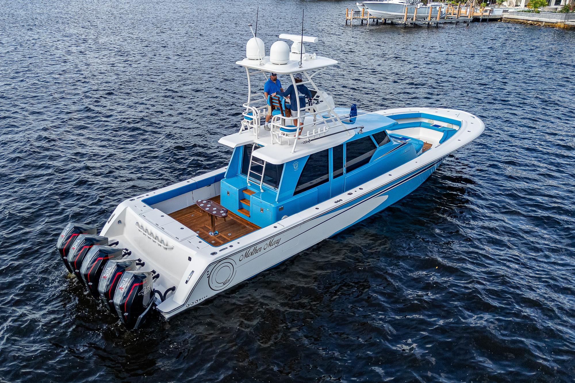 This Gulf Crosser 52 is a multi-purpose Quint(5) Mercury, 2250 HP, center-console designed for sport, pleasure, and yacht tender services. “Mother Mary” is arguably one of the most recognizable boats on the market that boasts the benefits of a traditional center console with the protection of an enclosed boat. This privately owned vessel has never been used commercially and becomes available to the market while the sellers new Gulf Stream/Gulf Crosser nears completion. This boat is unmatched in the Center Console Market and once you see it you can't take your eyes off of it. "Mother Mary" holds an unrivaled 5 engine setup, sea keeper, joystick, and tower for unlimited fishing and entertaining!Additional Features: CockpitTeak DecksTwin Side Dive DoorsAft Port and Starboard Fish Box FreezersRetractable Boarding LaddersNavigator Station with Additional ElectronicsAir-Conditioned / Heated EnclosureSleeps 4 People in Two Separate Areas