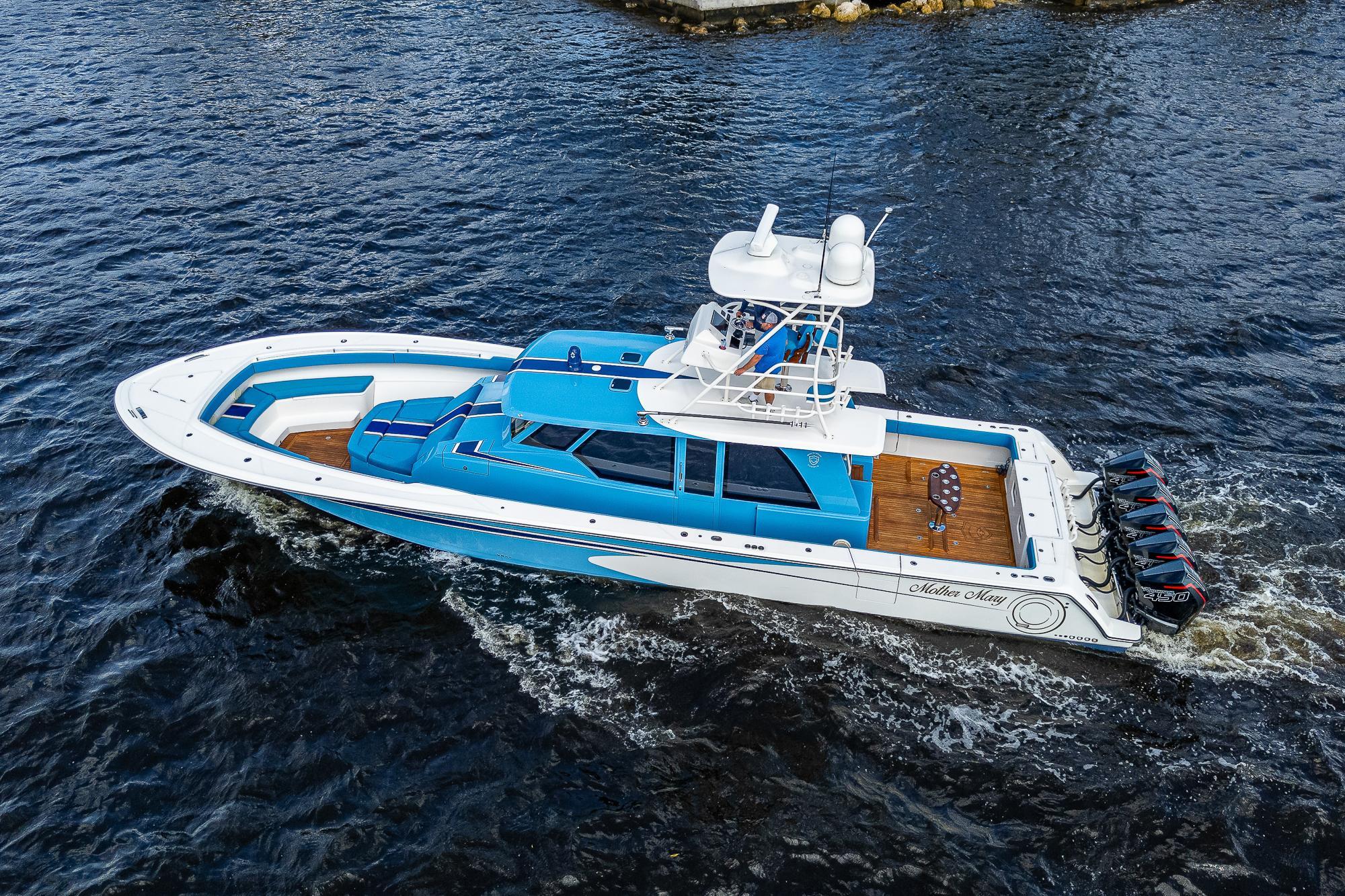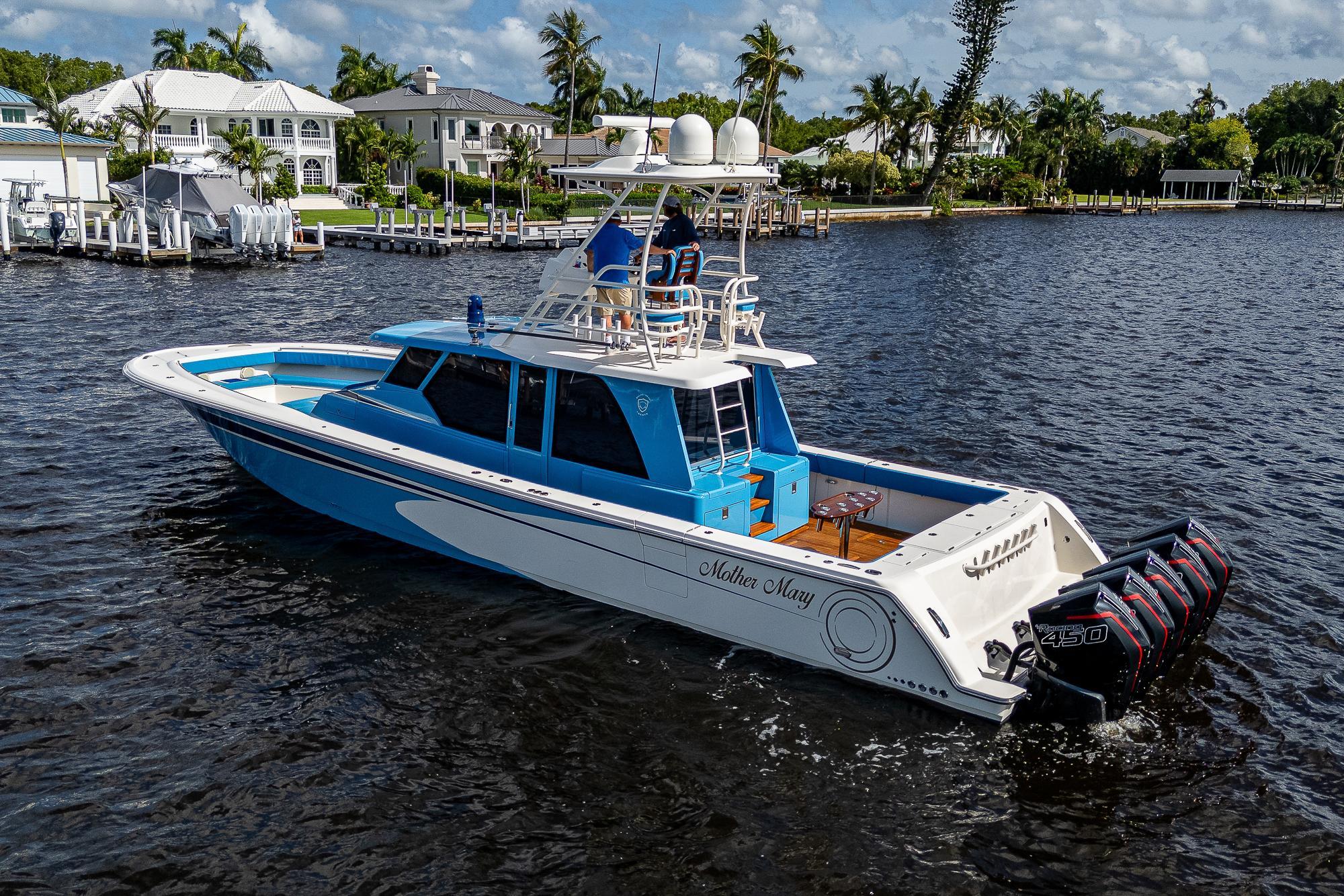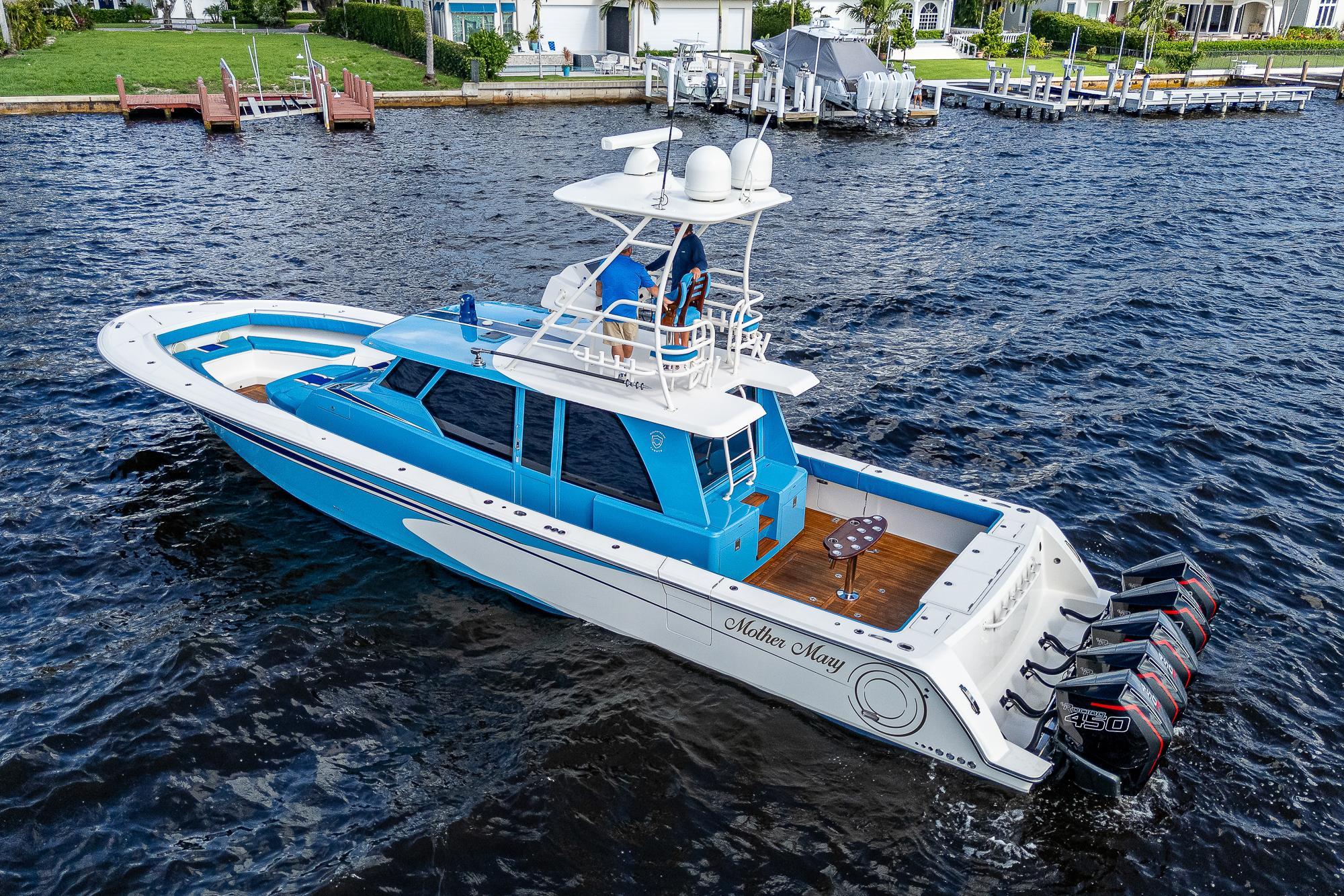 This Gulf Crosser 52 is a multi-purpose Quint(5) Mercury, 2250 HP, center-console designed for sport, pleasure, and yacht tender services. “Mother Mary” is arguably one of the most recognizable boats on the market that boasts the benefits of a traditional center console with the protection of an enclosed boat. This privately owned vessel has never been used commercially and becomes available to the market while the sellers new Gulf Stream/Gulf Crosser nears completion. This boat is unmatched in the Center Console Market and once you see it you can't take your eyes off of it. "Mother Mary" holds an unrivaled 5 engine setup, sea keeper, joystick, and tower for unlimited fishing and entertaining!Additional Features: CockpitTeak DecksTwin Side Dive DoorsAft Port and Starboard Fish Box FreezersRetractable Boarding LaddersNavigator Station with Additional ElectronicsAir-Conditioned / Heated EnclosureSleeps 4 People in Two Separate Areas