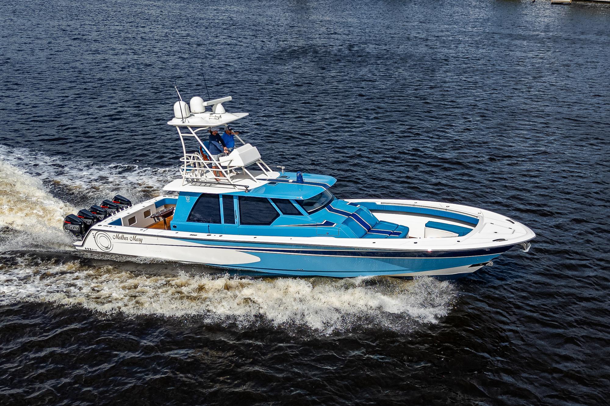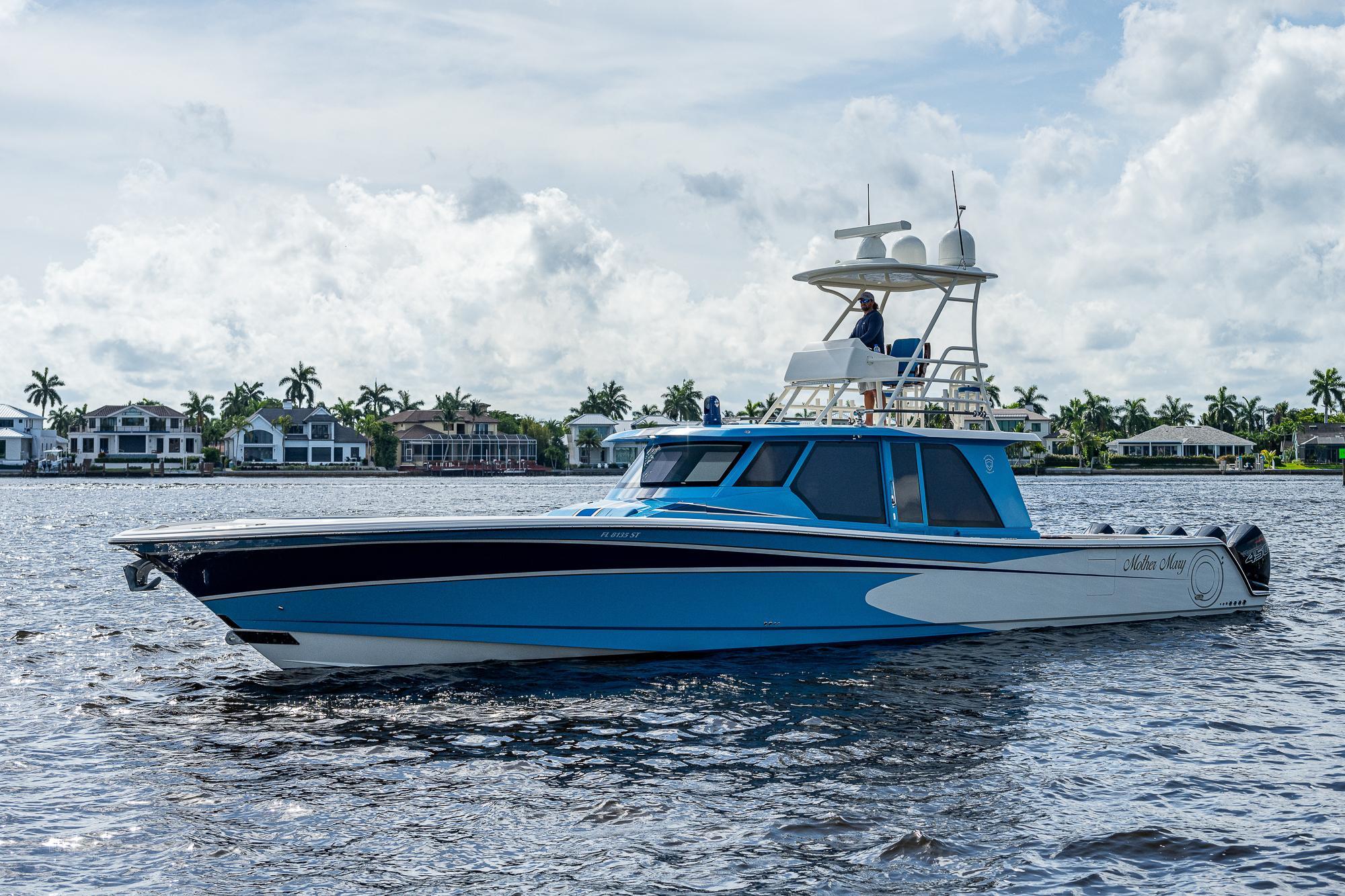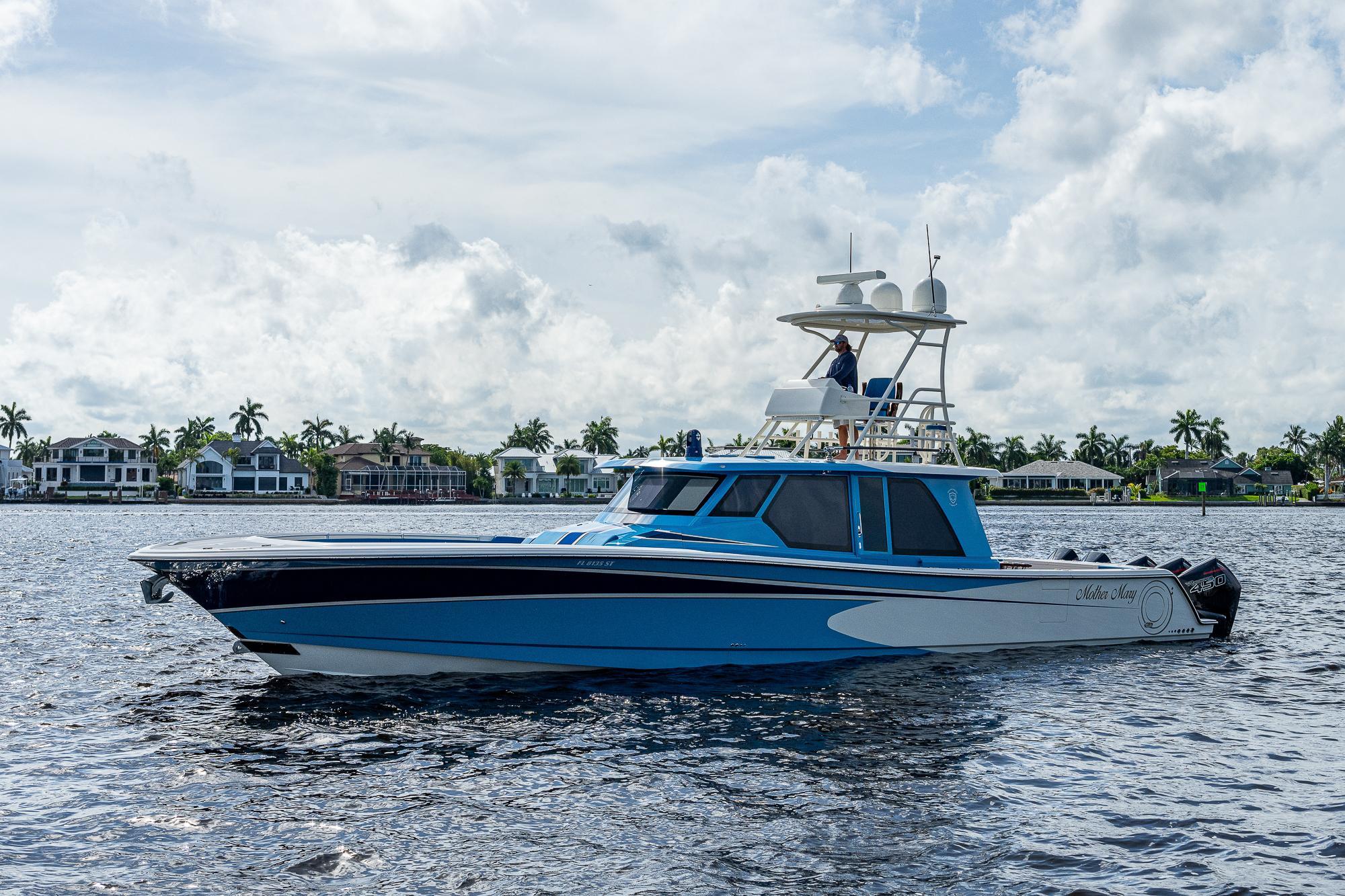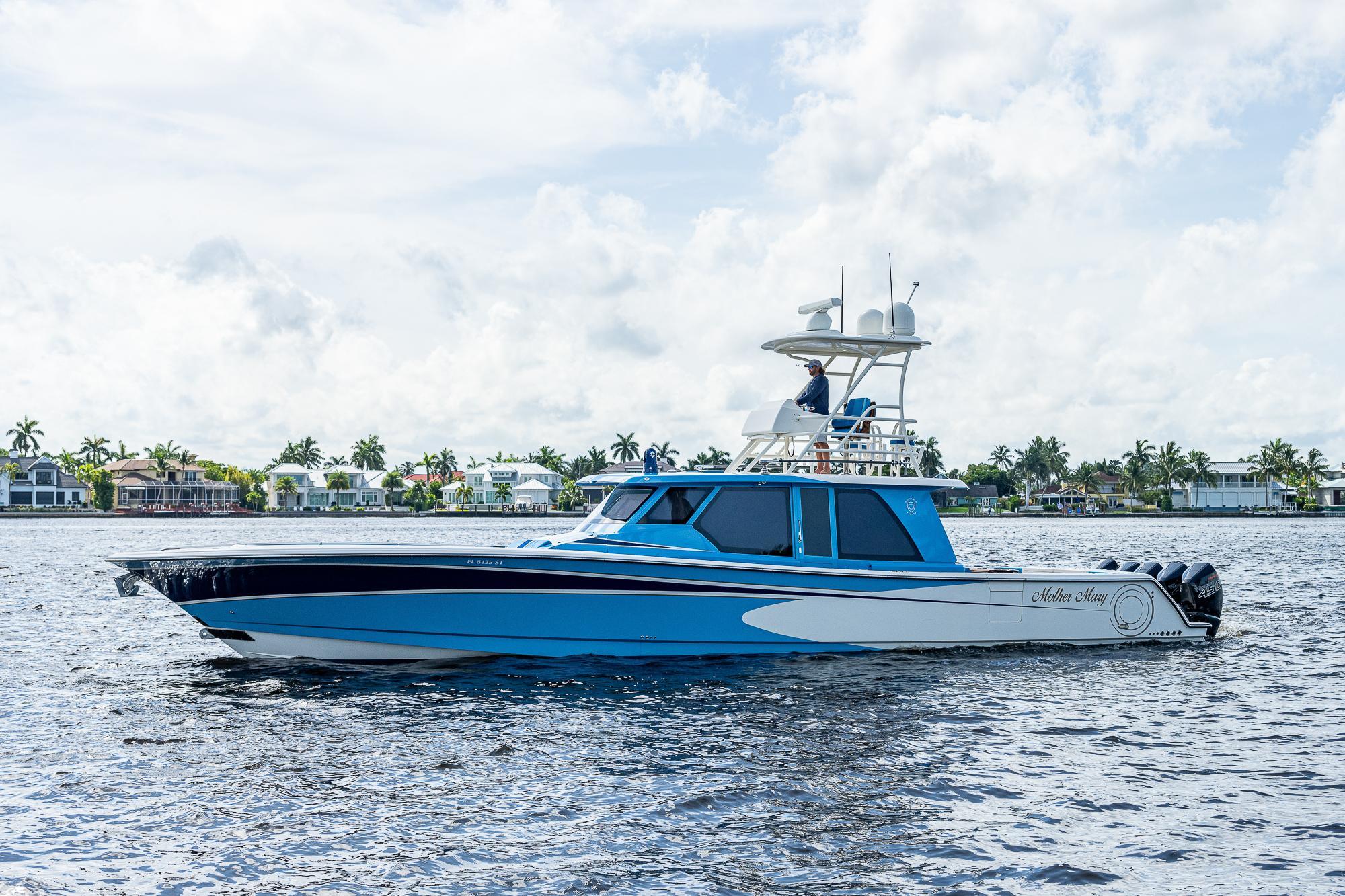 This Gulf Crosser 52 is a multi-purpose Quint(5) Mercury, 2250 HP, center-console designed for sport, pleasure, and yacht tender services. “Mother Mary” is arguably one of the most recognizable boats on the market that boasts the benefits of a traditional center console with the protection of an enclosed boat. This privately owned vessel has never been used commercially and becomes available to the market while the sellers new Gulf Stream/Gulf Crosser nears completion. This boat is unmatched in the Center Console Market and once you see it you can't take your eyes off of it. "Mother Mary" holds an unrivaled 5 engine setup, sea keeper, joystick, and tower for unlimited fishing and entertaining!Additional Features: CockpitTeak DecksTwin Side Dive DoorsAft Port and Starboard Fish Box FreezersRetractable Boarding LaddersNavigator Station with Additional ElectronicsAir-Conditioned / Heated EnclosureSleeps 4 People in Two Separate Areas