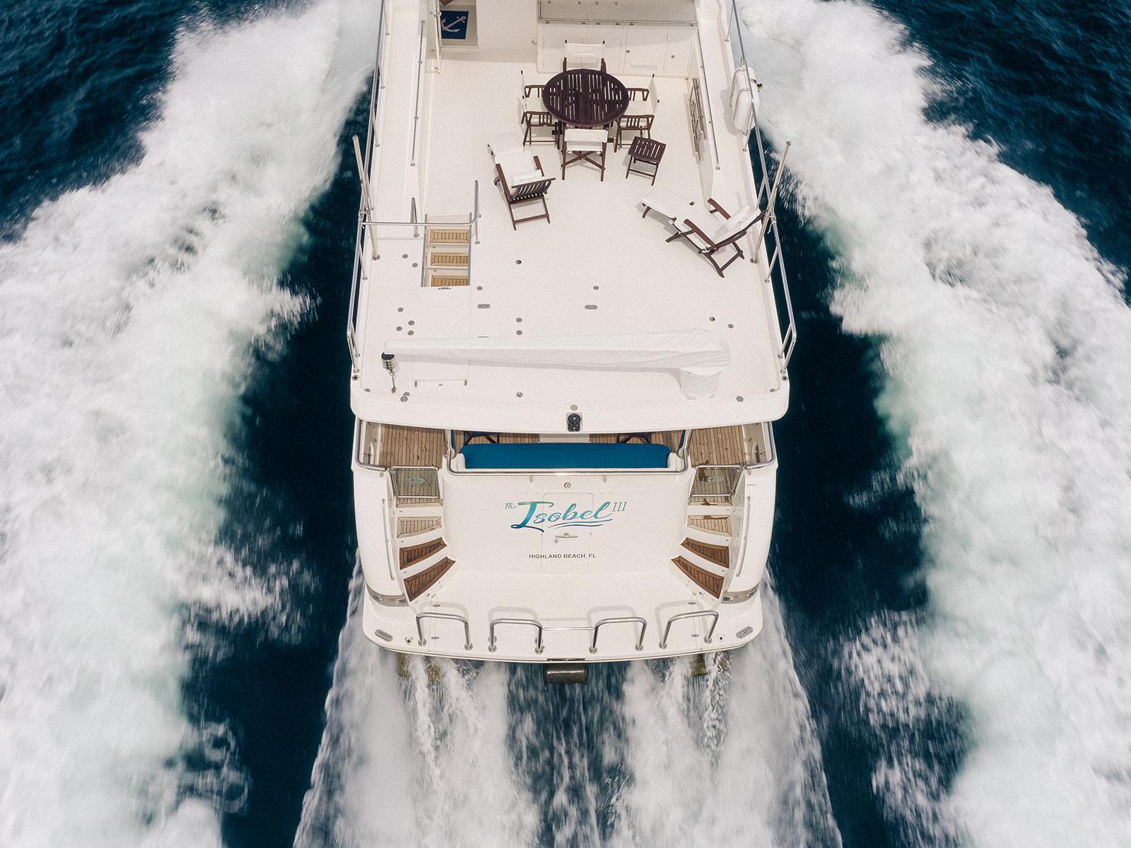 Highlight features for ISOBEL III incorporate a Comprehensive catalog encompassing design, function, layout, performance, reliability, and safety. ISOBEL III's floorplan is Welcoming and Comfortable, boasting volumes of space and natural light typically seen only in larger yachts.The main deck is Open from the aft deck through the salon and galley forward to the adjacent dining area, all with generous headroom. Design Elements combines tasteful and durable custom carpets, fabrics, furnishings, and decor throughout, with richly finished gloss cherry and holly flooring in the dining area, lower companionway, and crew cabins. Complementing the luxurious interior is stunning gloss finish handcrafted contemporary book matched Makore Cherry cabinetry, doors and wall panels, Granite counters and floors in the Galley, Marble, and Corian in the Heads along with matching Chrome hardware for light fixtures, doors, cabinets, and drawers.Appliances aboard ISOBEL III are thoughtfully installed maximizing the use of space in all areas. In the galley is an upright GE refrigerator with 2-freezer drawers and an integral icemaker, GE 4-burner electric cooktop, GE Convection, Broil & Bake oven, GE Convection microwave, Exhaust fan, Fisher-Paykel dishwasher, U-line wine cooler, and a lnsinkerator food waste disposal. Under the after-deck table is a Whirlpool refrigerator. On the flybridge is a Kenyon electric grill and Costway ice maker. In the crew area is an undercounter Arctic King chest freezer for provisioning. The laundry is Bosch brand washer and dryer.Well-appointed Accommodations include a full beam, king bed Master Stateroom with ensuite head and shower, VIP cabin forward, port Guest cabin with side-by-side twin beds, shared head and shower, Guest/ Crew cabin aft with over/under bunks and desk, head with separate shower (a 4th head with vanity is located on the aft deck), an abundance of hanging lockers, drawers and storage compartments in all accommodations areas with the laundry located in the foyer forward.You will be impressed with standup headroom and well-designed stainless steel grab rails in the Engine room between the engines with ample room forward and outboard for accessibility to critical systems. The Reliable and efficient Twin CAT C-18 delivering 930 HP Marine Diesel Main Engines with underwater exhaust Managed by 3-station ZF electronic engine control with JMS joystick system which includes the flybridge helm and 2-aft deck wing stations, are the heart of Performance offering high torque and low rated RPM providing excellent vessel control. Balancing the Robust drivetrain are ZF Marine gearboxes, Direct Drive 3" AQUATECH HS #22 Stainless Steel Shaft System with Tides Marine dripless seals, ZF propellers, stainless steel spade rudders and Sea Star steering.A Wesmar central hydraulic system powers the Wesmar stabilizer fins, MAXWELL dual gypsy anchoring system, and the Wesmar hydraulic bow and stern thrusters.Exterior spaces on the main deck extend forward from the aft deck along deep, wide, and covered side decks to the Portuguese bridge and foredeck seating. At the Bow Area resides a MAXWELL dual gypsy hydraulic anchoring system with (2) 50Kg polished stainless steel anchors with chain, adjacent deck controls, separate storage bins are accessed below the flush deck hatches, washdowns, and deck drains are positioned to aid in cleanup.Access to the Fly Bridge is either via aft deck molded stairs or by ascending the port side interior stairs in the Galley area. On the Fly Bridge deck forward and centerline is the helm area with an impressive array of Garmin electronics, and 2-adjustable Llebroc helm chairs with opening hatches in the hardtop above. The Centerpiece on the flybridge is a large FRP table mounted on a center stainless steel pedestal for dining and entertainment, Custom upholstered cushions attached to the molded L-lounge with storage below, Fusion stereo system, Stereo speakers, Samsung television, and an outdoor galley with Corian counter, sink and faucet, Kenyon Electric Grill, and ice maker. Mounted to the starboard railing is a deployable Life Raft.The Expansive flybridge is protected from the grill area forward to the helm by the glare resistant Hardtop with removable, repositionable high quality clear acrylic panels attached port and starboard, forward, and aft is the factory installed FRP frame with glass panel inserts for a full enclosure. For accessing the topside, the shipyard included a custom folding stainless steel ladder that stows conveniently when not in use. Mounted on top are the running/anchor light mast, radar antenna, GPS, VHF, and FLIR systems.Aft of the outdoor galley, the Boat Deck section is a self-draining non-skid FRP deck area presenting a fabulous multi-use area with plentiful space. Port and starboard stainless-steel railings extend from the sides forward of the hardtop supports. The railings are joined aft by dual vinyl coated lifelines.A UMT 1800-pound lift capacity davit, can launch a tender to either the starboard or aft with full power rotation. Fully integrated Electrical System with Kohler 15.5 kW and 23 kW / 120/240V I 60 Hz Marine Diesel Generators, 4kW inverter/charger & remote panel for ship's service, 12VDC charger to generator batteries, 24VDC charger to engine batteries, 24VDC to 12VDC converter, 24VDC Lighting, Charles 50A - lsoboost Marine Isolation Power Transformers, Midship Starboard, Marinco TV - Phone connection, Marinco 50A/125/250V Shore Power connections and Aft Port and Starboard 24VDC Glendinning Cablemaster CM7 motorized storage system with retraction and extension of the 50A/125/250V shore power cords. The 120VAC / 240VAC and Inverter breaker panel access in the crew area, the 24VDC / 12VDC breaker panel to starboard forward of the Galley and the 24VDC / 12VDC breaker panel at the flybridge helm area are well labeled.Electronics Suite components are 2 x Fly Bridge 7215 - MFD Touch-screen color displays with preloaded