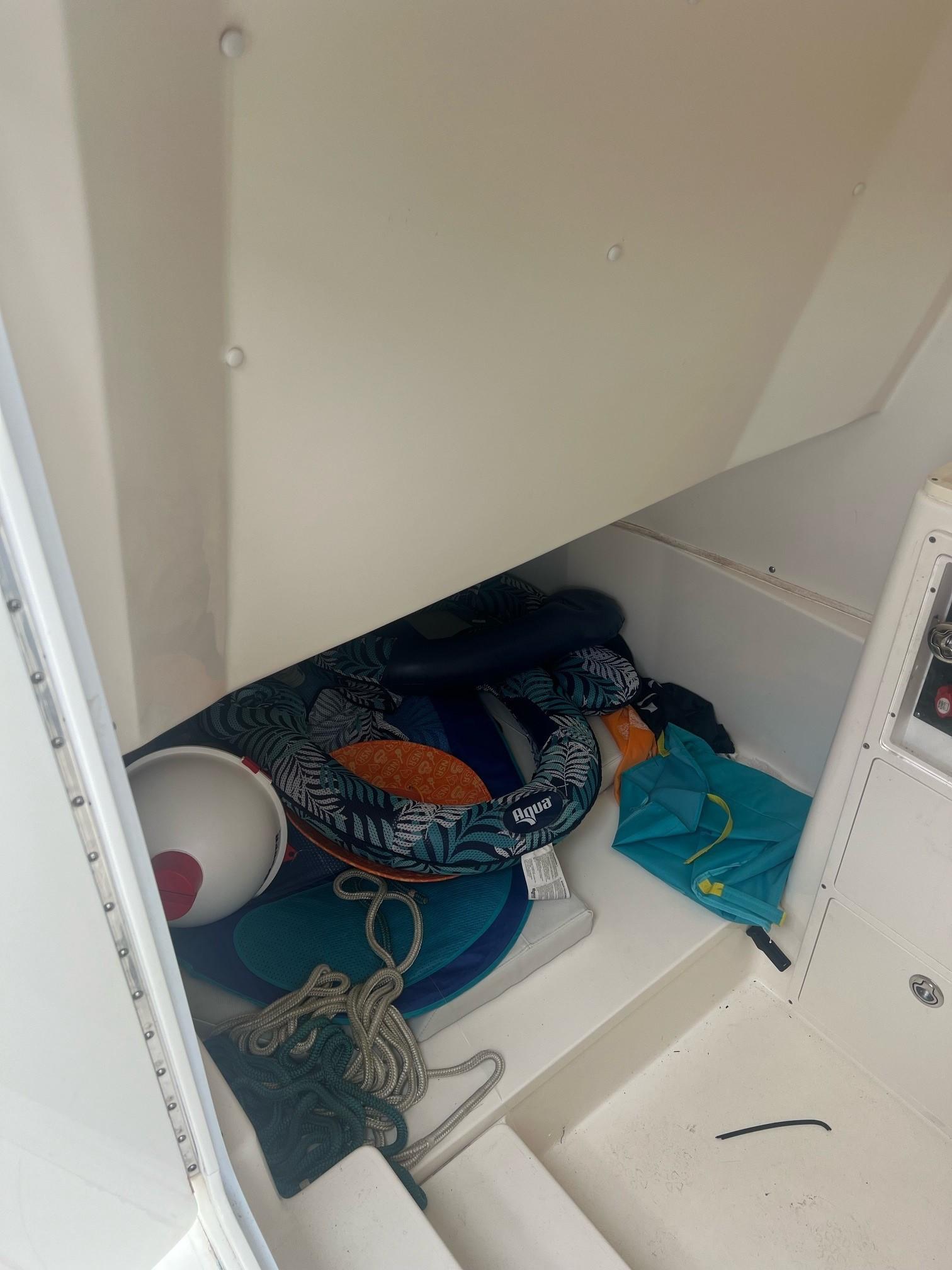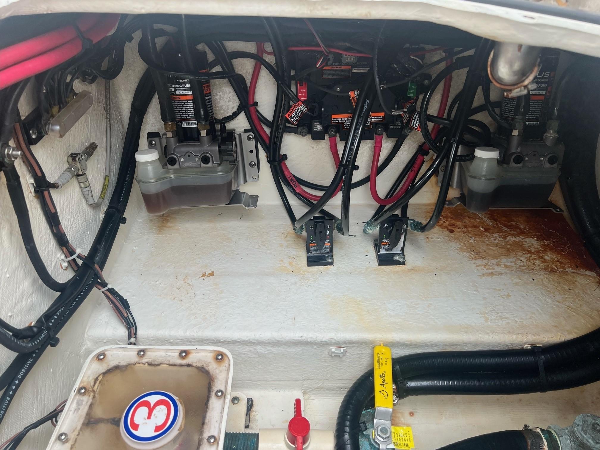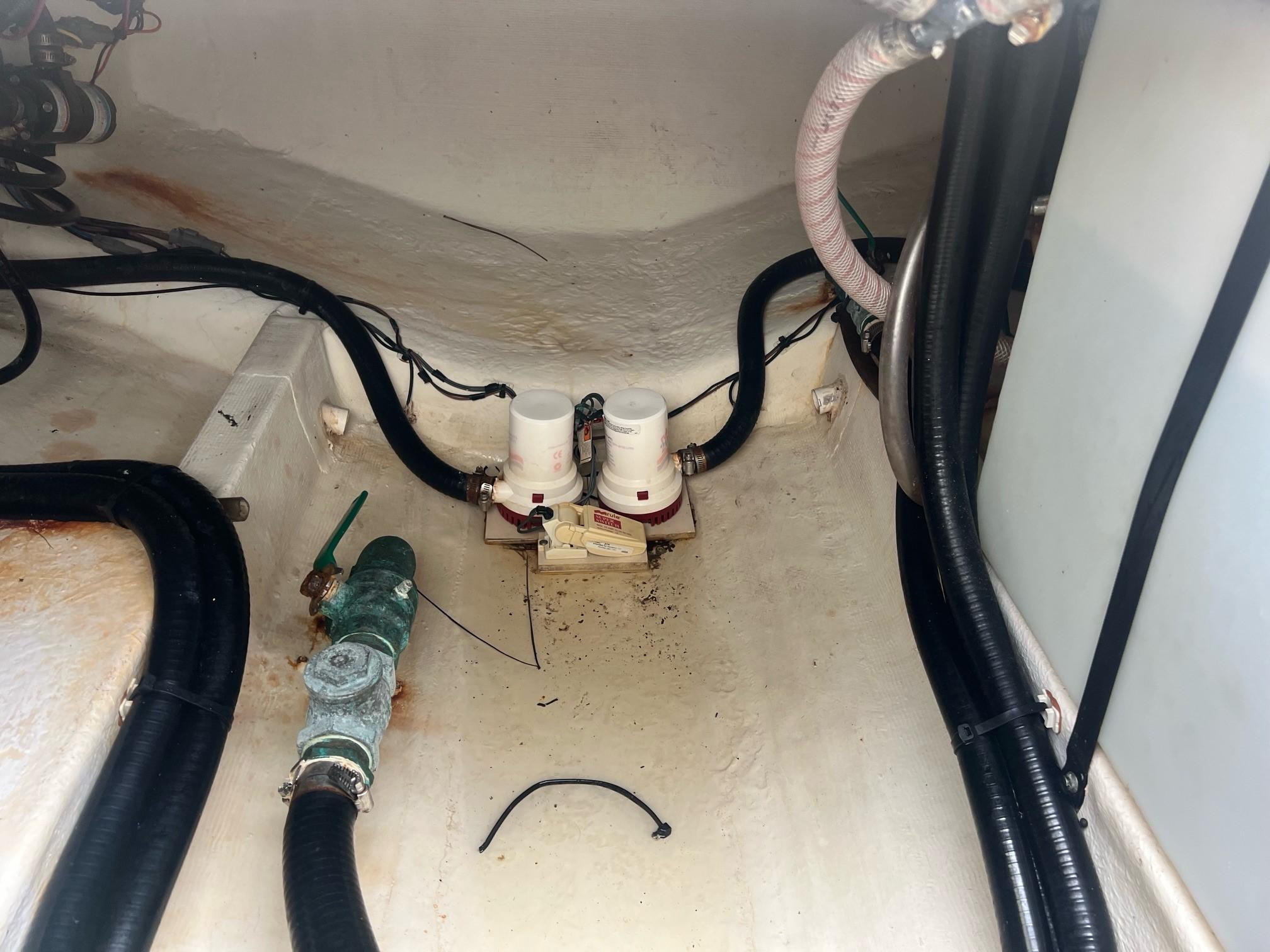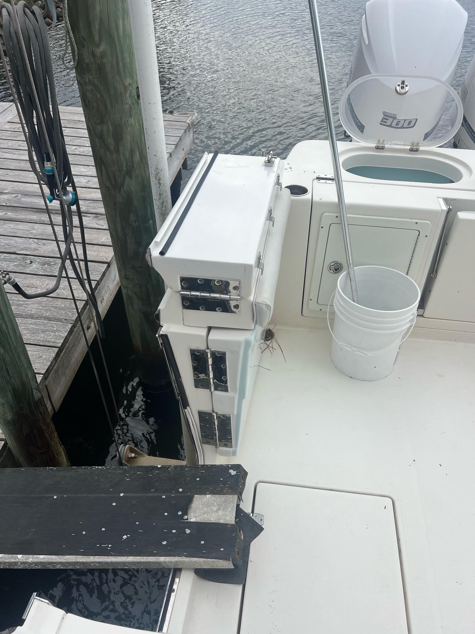 two large macerated in-floor fish boxes. The leaning post/tackle