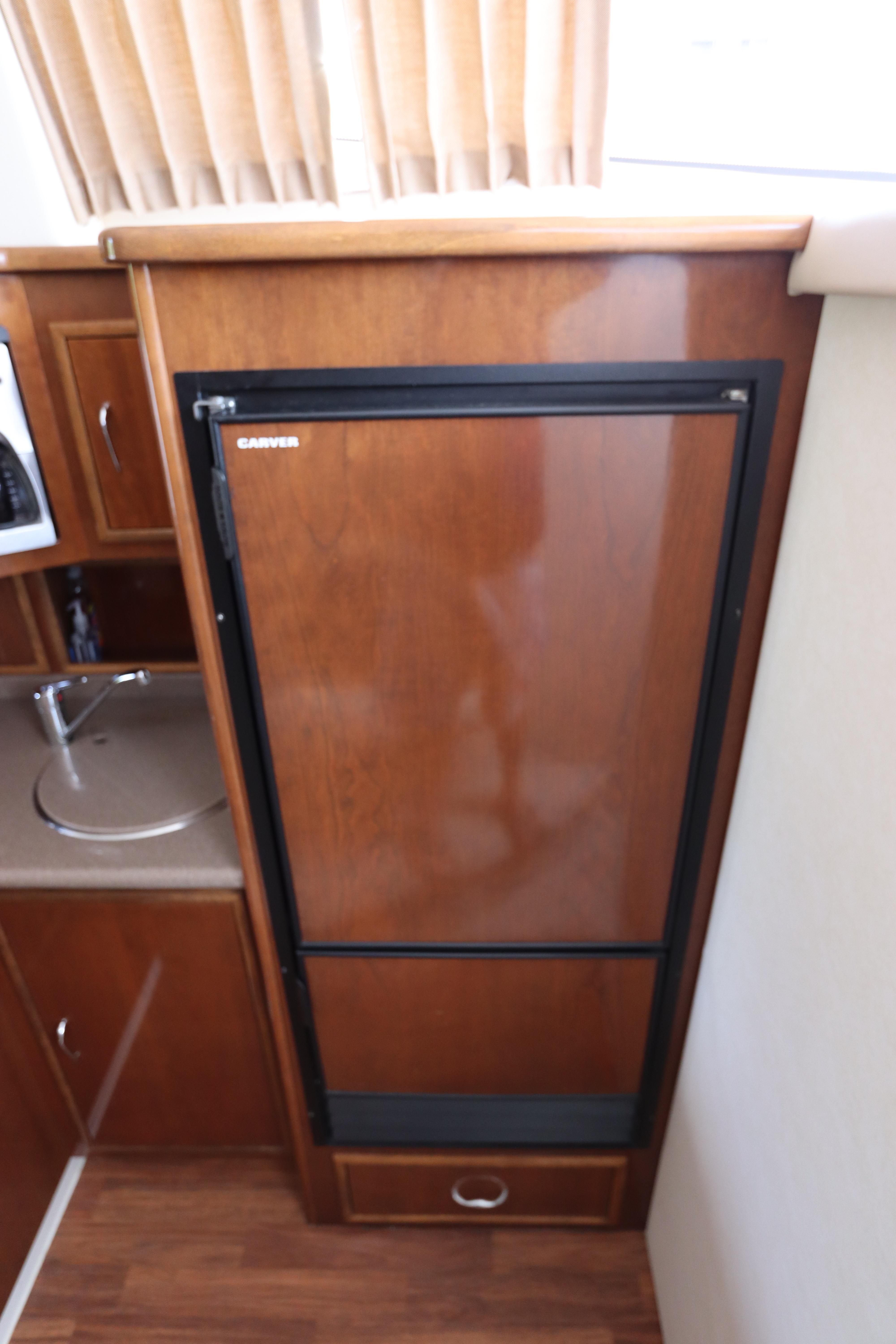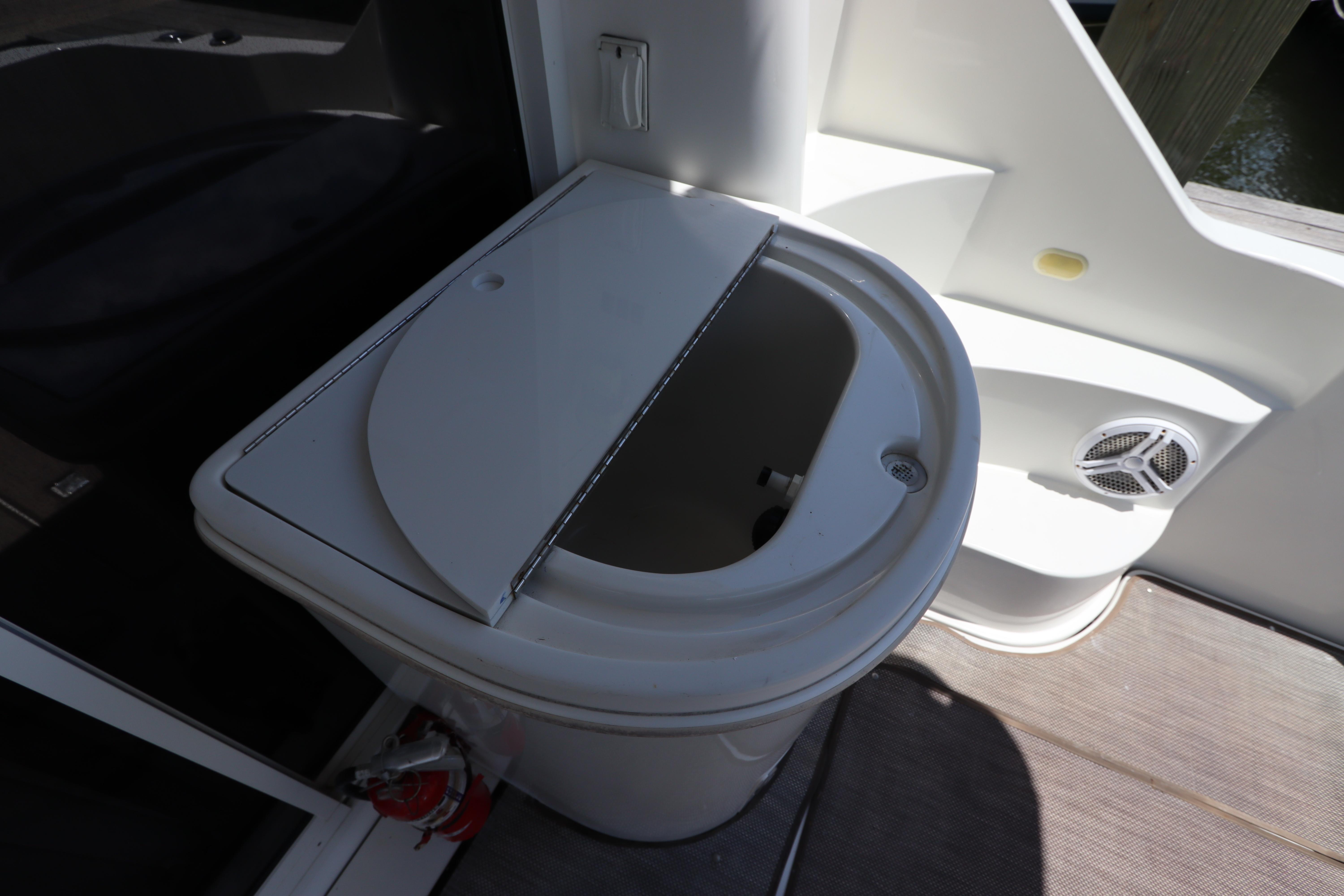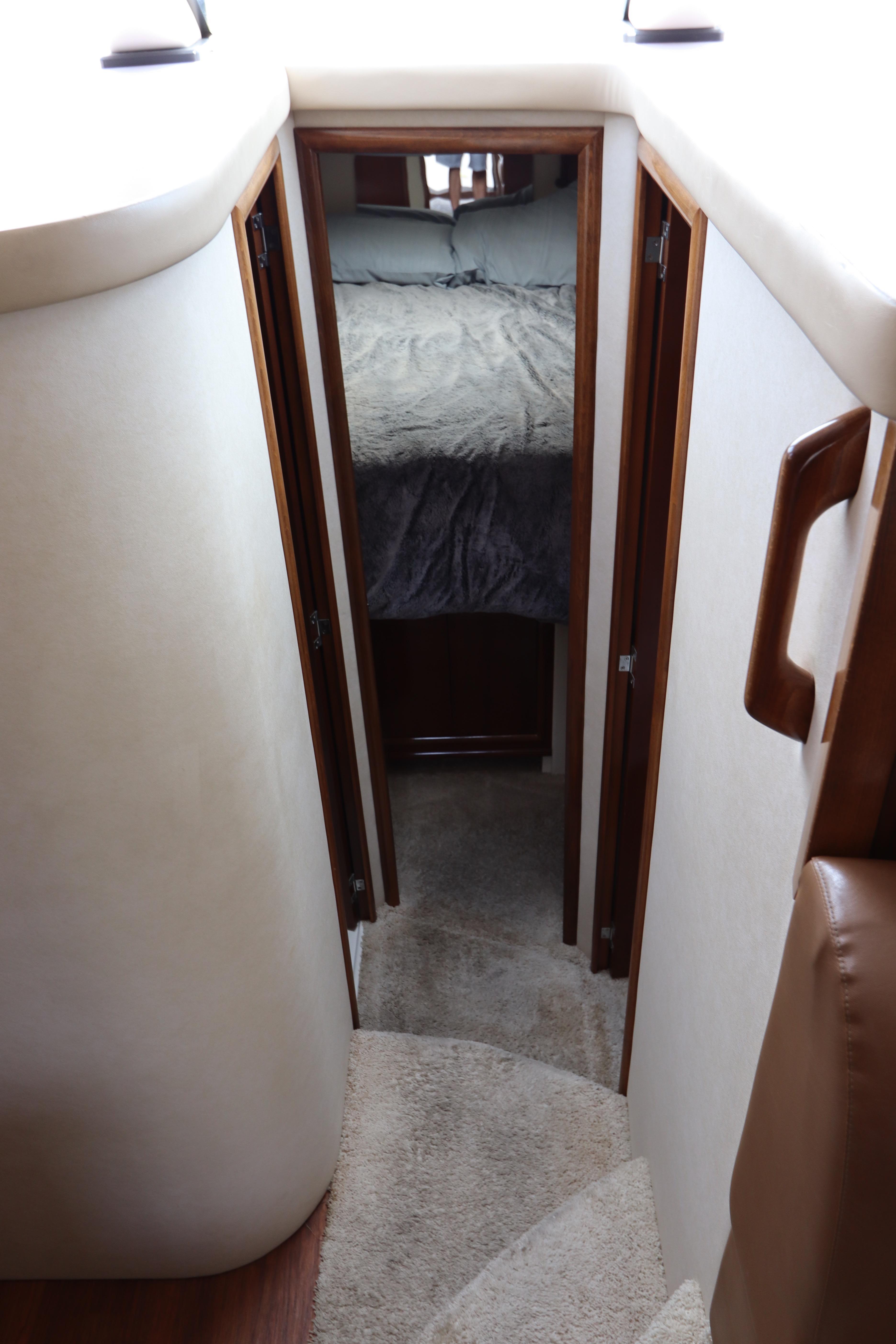 With abundant amenities and supreme appointments, the 35 Super Sport is proof positive that big surprises can indeed come in smaller packages. With generous exterior and interior spaces, the 35 provides an extraordinary escape from the ordinary express-cruiser experience. The true departure begins on the roomy command bridge. Its comfortable lounge with seating for four, stationed just forward of the helm, invites passengers to sit back and enjoy the ultimate vantage point. An integrated staircase leads to an expansive cockpit and a fun-lover's swim platform where activities are only limited by the imagination. Step inside the full-beam salon to find ultimate space made for living. Updated decor includes designer fabrics and beautiful cherry wood cabinetry providing ample storage. Sure to be a favorite relaxation spot, the sofa offers double recliners, as well as a sleeper option or additional storage beneath. No need to fantasize about having a fully-appointed galley. This one comes complete - Ceran glass-top electric range, built-in microwave/convection oven, upright refrigerator/freezer, coffeemaker, and gorgeous yet practical, Corian solid-surface countertops. And at every turn, every inch of space is cleverly maximized to provide an extraordinary amount of welcome storage. The face-to-face dinette with bench seats does double duty, providing the perfect mealtime setting while also converting to a double berth for overnight guests or family. When you're ready for that dreamlike state, an ideal master stateroom awaits. Behind the solid cherry wood door lies a queen island berth with innerspring mattress, perfect for an afternoon snooze or all-night slumber. The head, with companionway access, includes a fully enclosed shower stall with integral bench seat and a stylish vanity.
