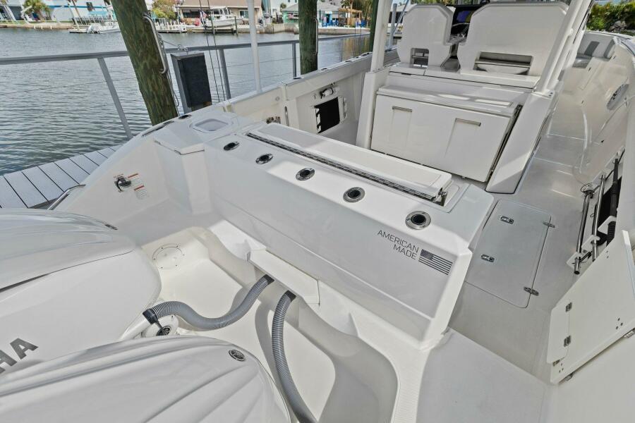 Fishing FeaturesRod Holders (4), Stainless Steel, in Gunwale Lighted Oceana Blue 24 Gallon Recirculating Livewell with Fiberglass Lid and Acrylic Window Under Gunwale Rod Storage (Starboard) Fish Boxes, Insulated and Diaphragm Pumps with Overboard Discharge (Port and Starboard) Vertical Rod Holders (5), Stainless Steel, in Transom Rod Storage Under Hardtop (Port and Starboard)