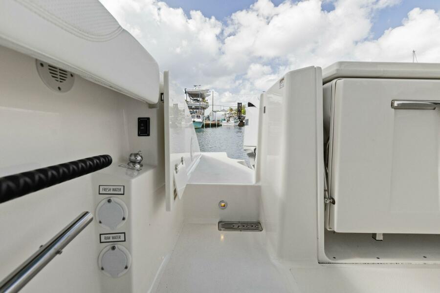 Mechanical SpaceMolded Interior White Gel Coat Molded Hatch with Gasket and Stainless Steel Gas Spring Molded Bilge Sump Area One Low Profile 900 GPH Bilge Pump with Integrated Float Switch, One 1500 GPH Bilge Pump with Electronic Switch, One 1500 GPH Bilge Pump with High Water Electronic Switch and Alarm with Stainless Steel Clad Composite Thru Hull Fittings Fresh Water Pump with Filter Raw Water Pump with Sea Strainer, Seacock and Thru Hull Fitting Dedicated Fish Box Diaphragm Evacuation Pumps Teleflex Hydraulic Power Steering Pump