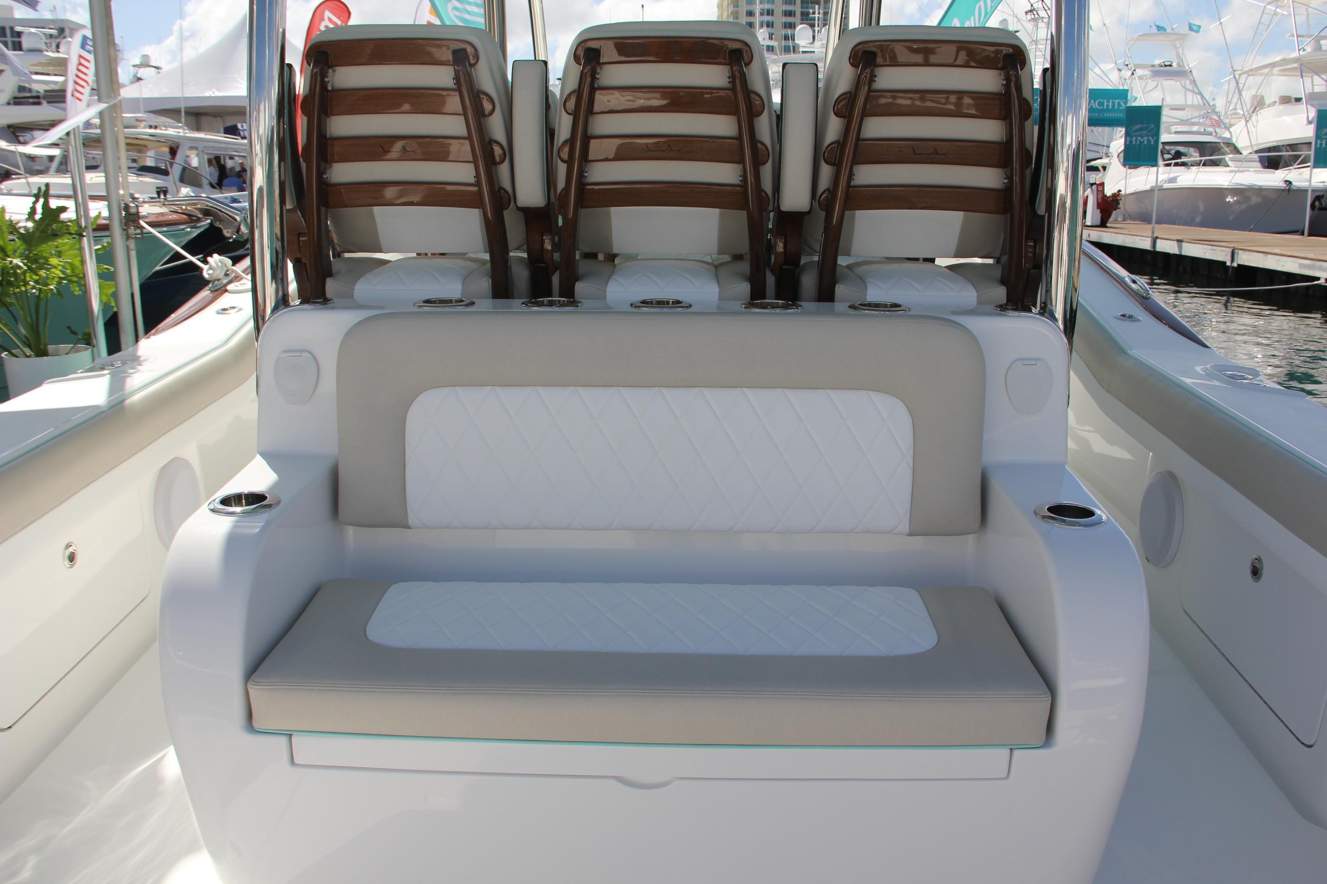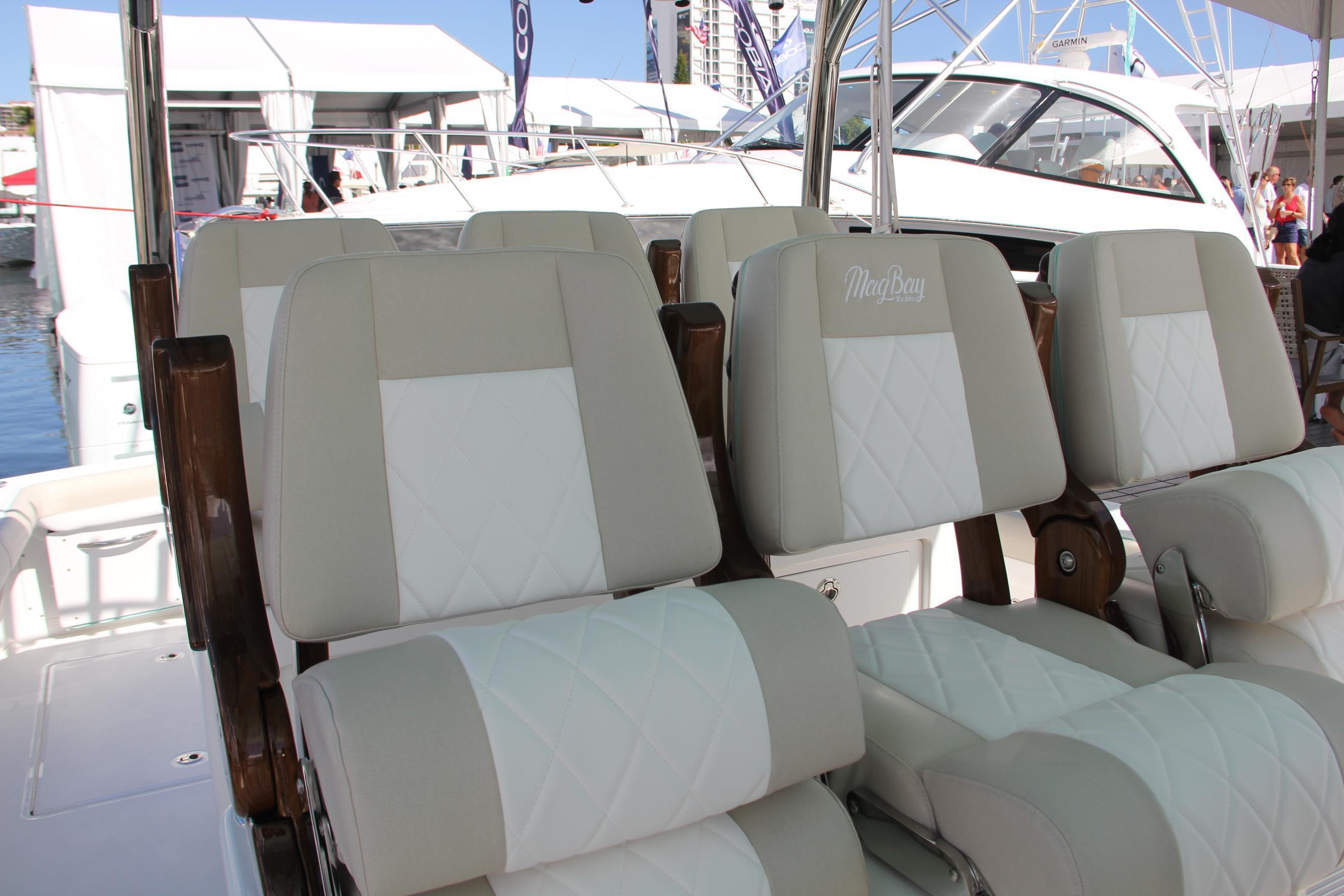 If you all looking for a center console that WOWS, the 43' Mag Bay is it! The patented cross-step hull from Steve Matthews Ocean Designs outperforms. Many components that come standard to Mag Bay are optional for others.