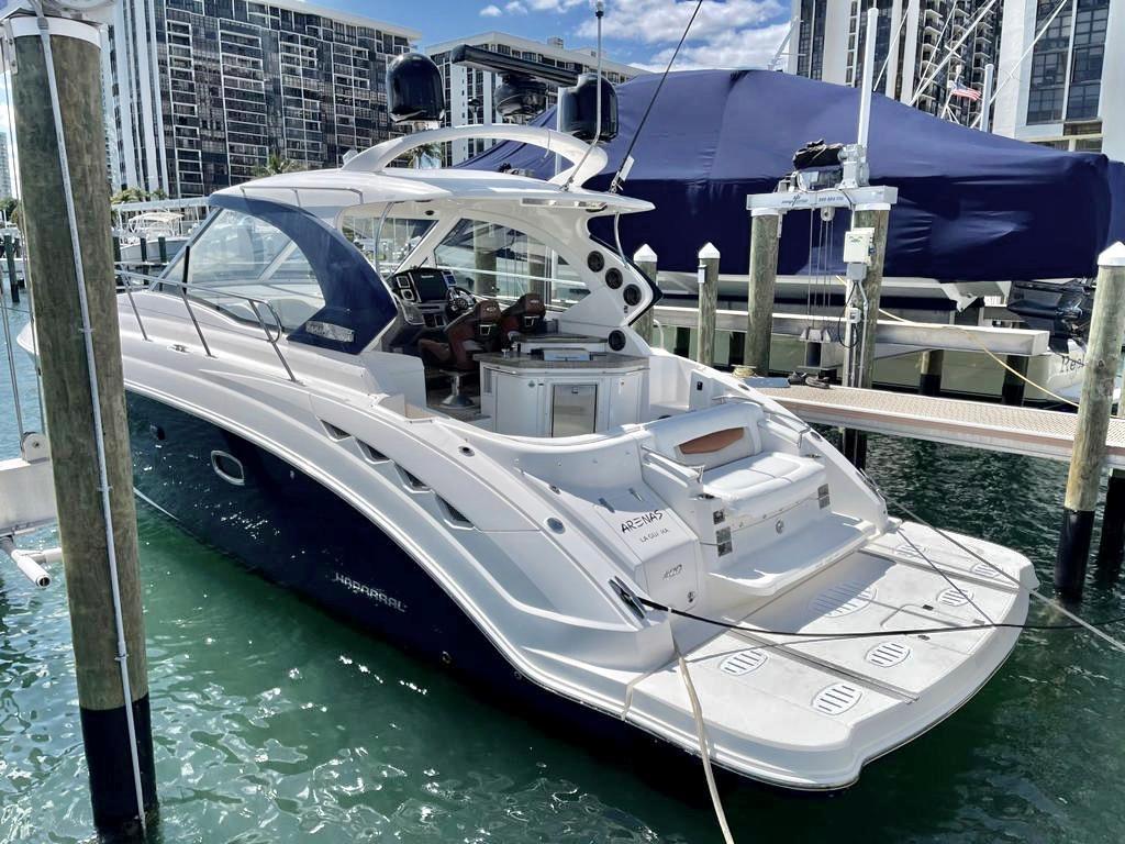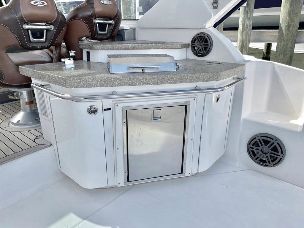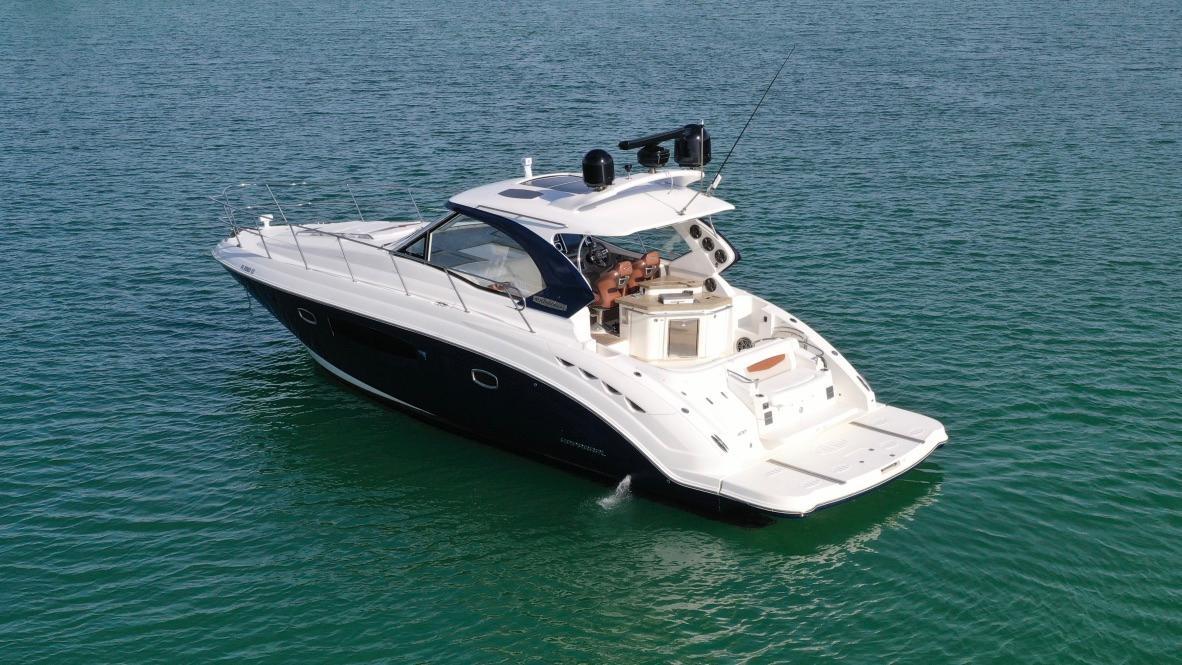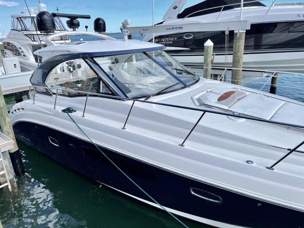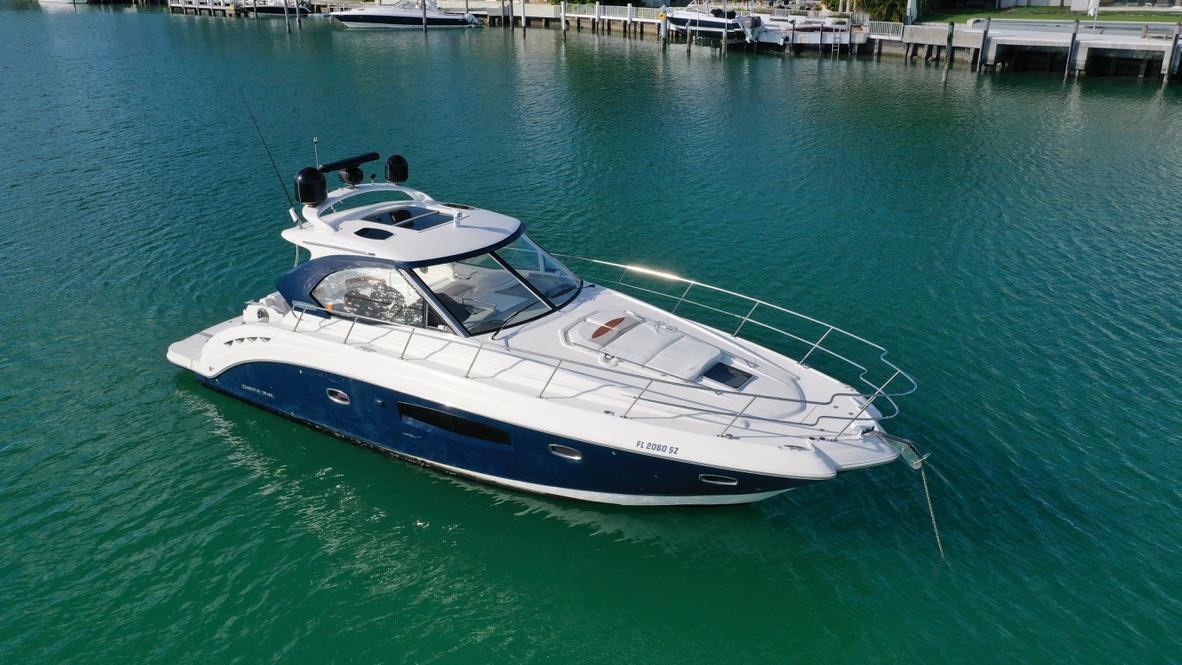 The heartbeat of the 400 is luxury. In every way. Just think of the things you can do at the mere flip of a switch: adjust the bucket seats, fold out the transom seat or retract the island berth. Options that work with fingertip control include a waterproof flatscreen TV in the galley, the sunroof and the swim platform. The Premiere's coupe design gives you climate control in the cockpit and the cabin. You never have to contend with canvas as you enjoy the quietest, most quality ride on the water today. Stainless steel steps lead to the finest engine room in this class. Brilliant white finished gelcoat creates a clean environment. Gray water is routed through a sump in the engine compartment, not under the cabin, minimizing the need for thru-hull fittings on the hull side.