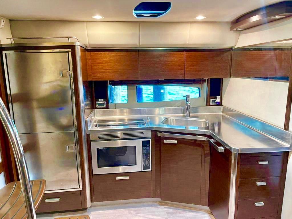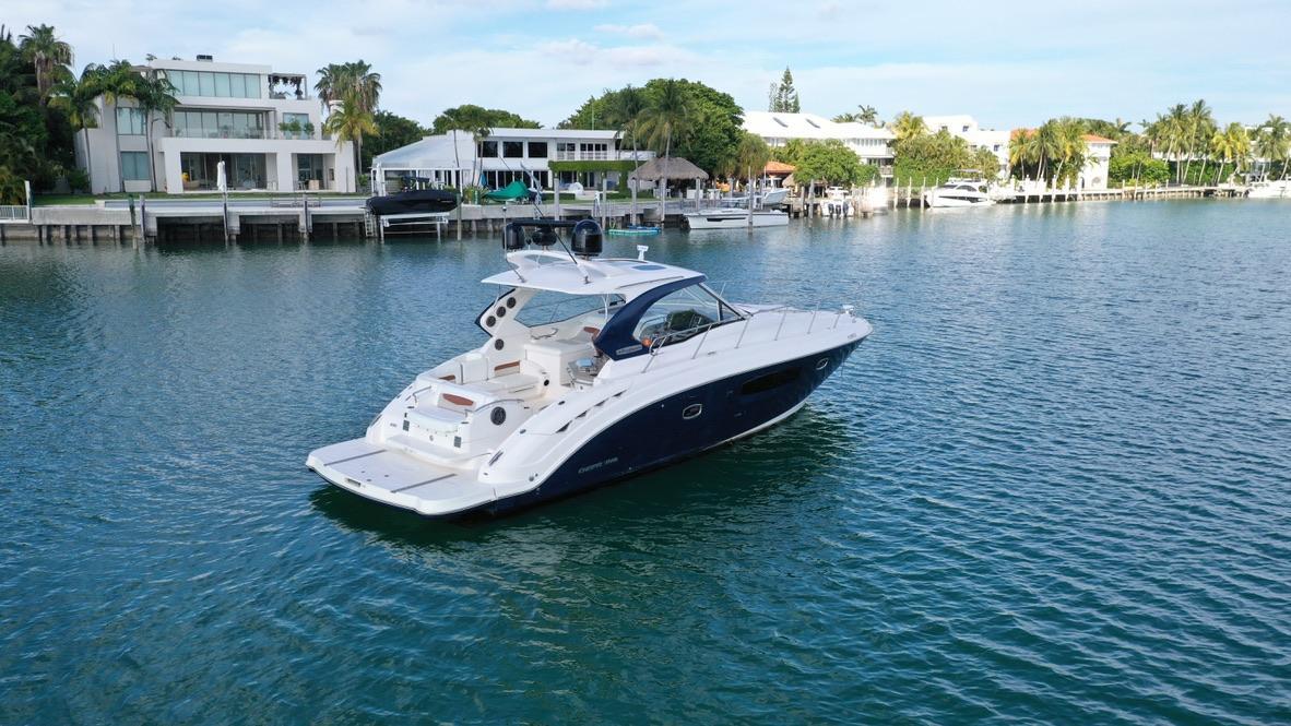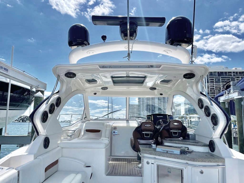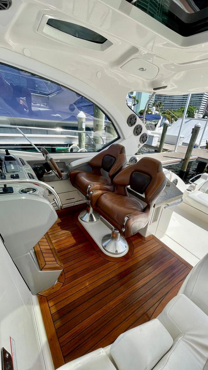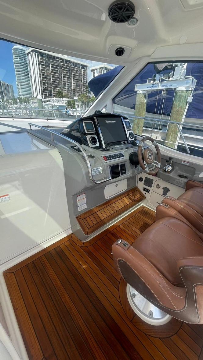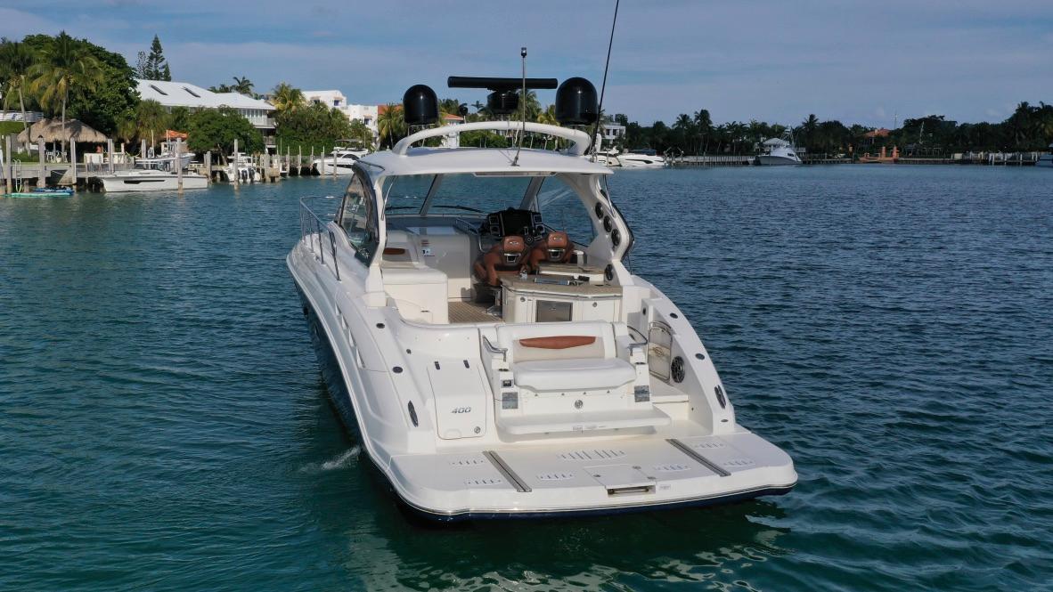 So innovative and luxurious, how do you categorize the 400? Express Cruiser won't do because no other 42-footer offers a coupe top, cockpit air conditioning or a hydraulic swim platform. Conversely, there isn't a yacht afloat that has the sporty style and incredible appointments accented throughout the 400 Premiere. Think of the 400 as old-world craftsmanship wrapped in its most modern form. From the incredible helm electronics, to the televisions, to the sound system, every component is beyond state-of-the-art. At the helm, prepare to discover the difference that makes the 400 Premiere like no other. Powered by a revolutionary IPS propulsion system, this wide beam Sport Yacht maneuvers as easily as our 20-foot bowriders. With it's intuitive Joystick control, even the most dicey docking situations are aim and go. When evening arrives, the excitement only increases with a full LED lighting system that sets the mood for dockside parties. In the cabin, we take full advantage of the possibilities our Wide Tech hull design unveils. Full length hull windows and overhead skylights provide a window to the world and allow natural light to come in.