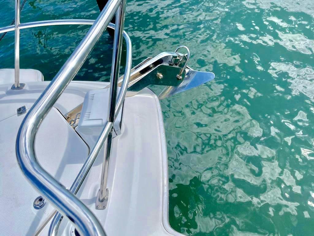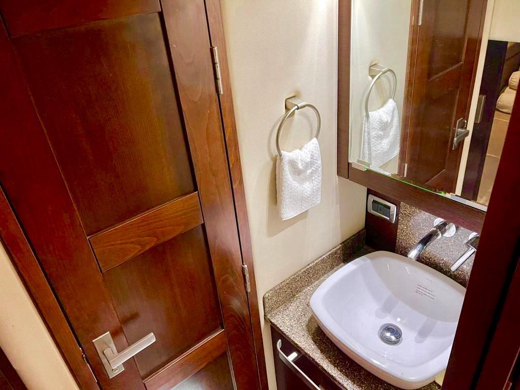 Handcrafted real wood cabinets and blinds are a cut above. All of the raised door panels and frames are walnut. Even the switch plates and outlets have a satin nickel finish. To keep you tuned in the cabin features an LG 1000 watt home theatre system. Cedar lined clothes closets can be found in both the forward and mid staterooms. Overhead LED lighting is controlled with a dimmer switch and even the floor storage areas are illuminated. A central vacuum system and a leather salon sofa are optional. Even the wooden cabin entry steps have stainless steel supports. Storage space never ends and the Premiere logo is etched into the beveled mirrored headboard. If your travels take you to faraway ports, high definition satellite television can be beamed in as optional equipment.