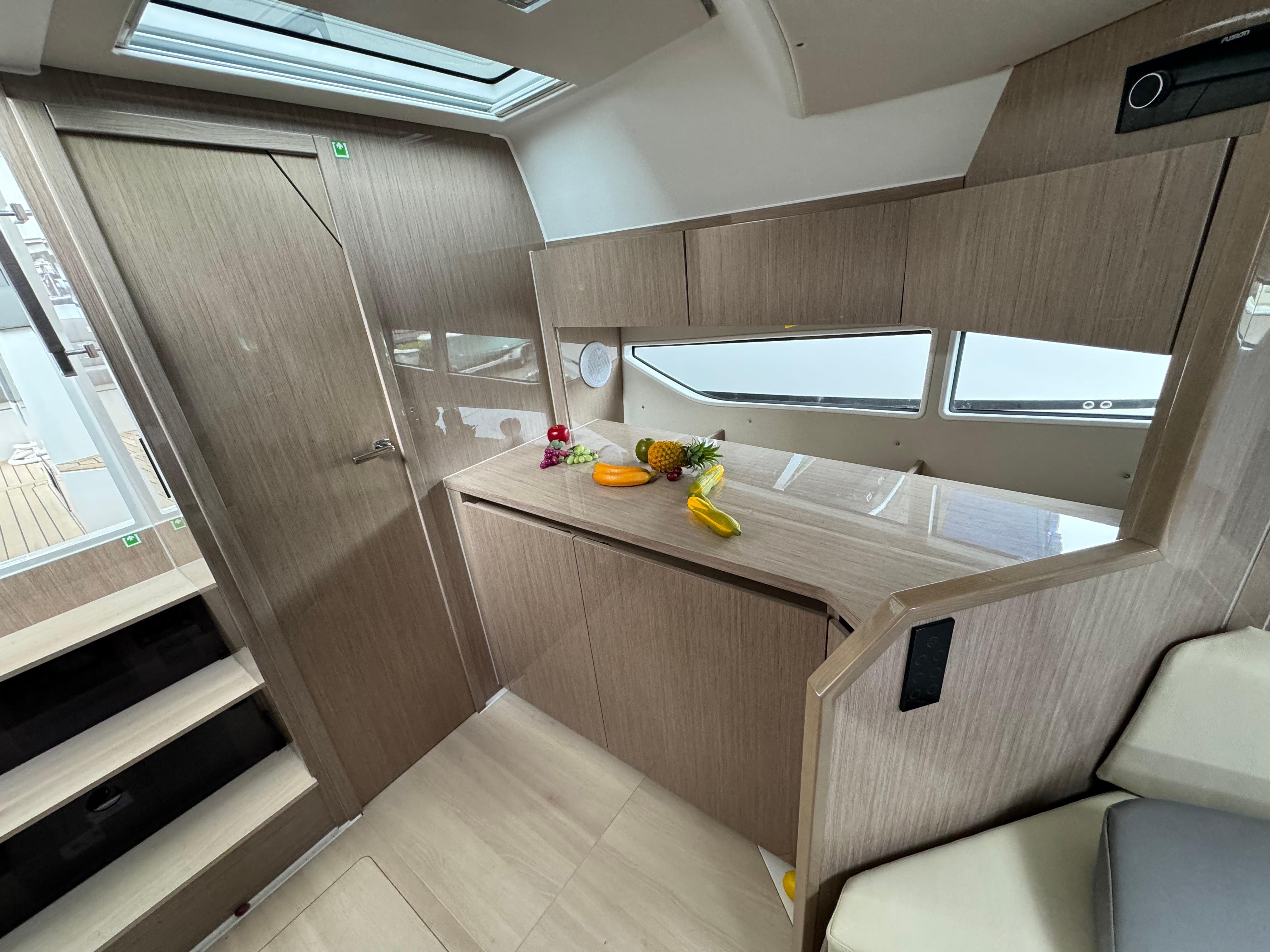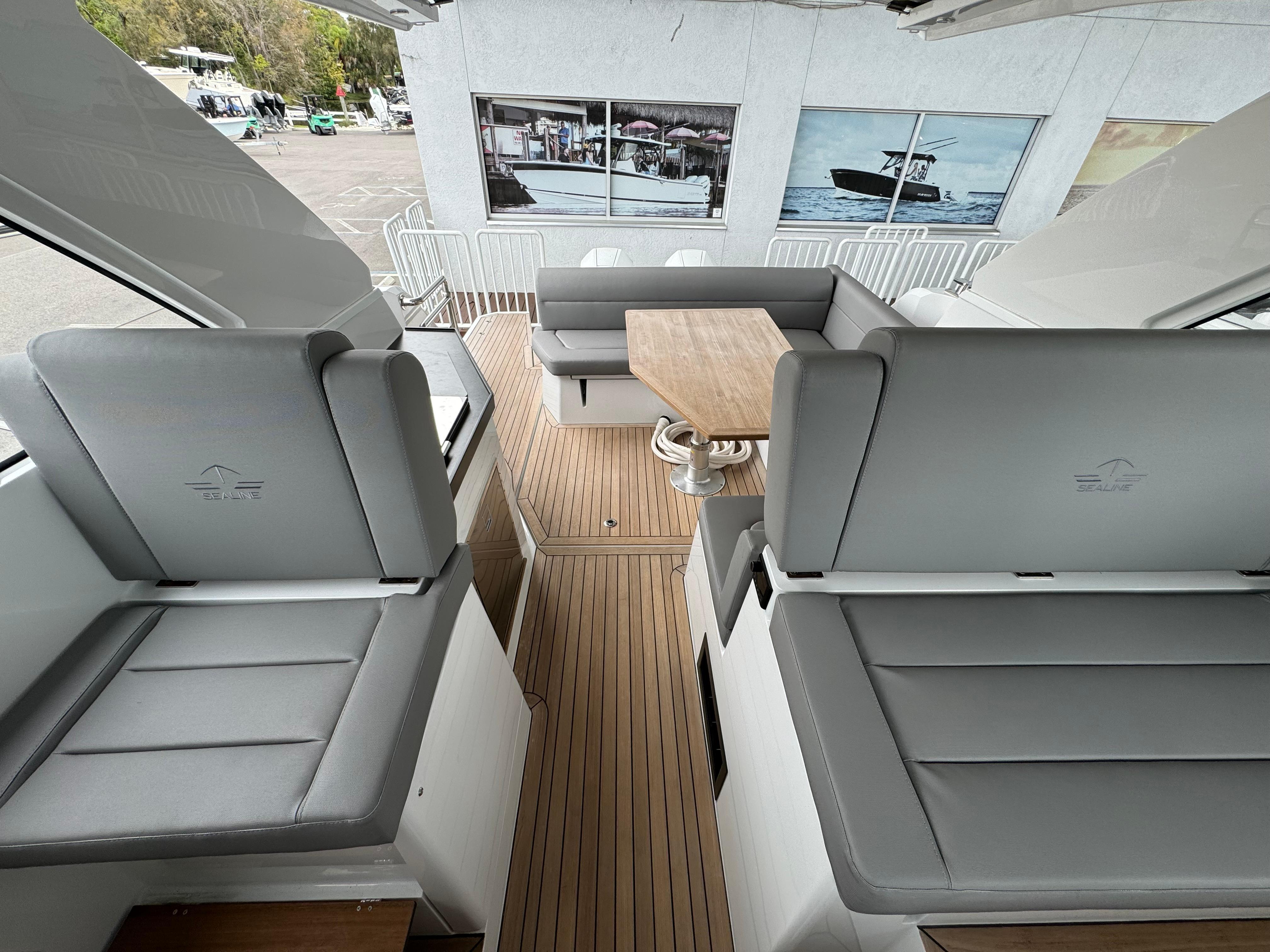 With a whopping 600hp, the outboards set the sleek design in motion. The open deck layout gives a taste of summer, enhanced by the two opening sunroofs. There are incomparable spaces to enjoy everywhere – from the bow seating to the U-shaped cockpit sofa. Class-leading storage space under the cockpit, water sports equipment awaits. When you want to retreat from the outside world, an individually designed interior awaits you below deck. Five different layouts are available. For instance, as an alternative to the classic bow cabin, SEALINE offers a newly designed living area consisting of lobby and owner's lounge, with a U-shaped sofa in the centre. Each layout boasts a unique use of space, including 1.95 m maximum headroom. A handcrafted finish perfectly rounds off the comfort.