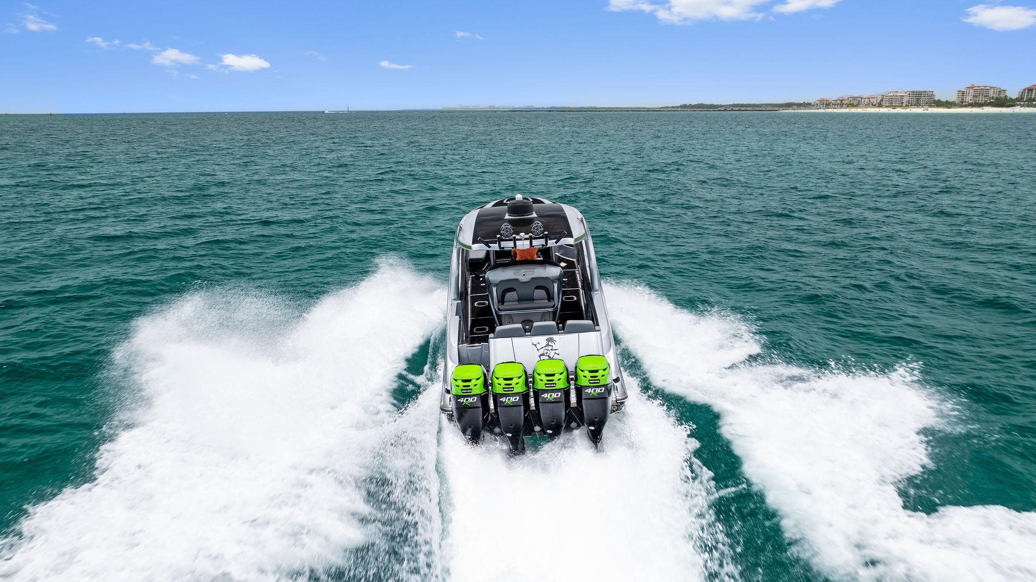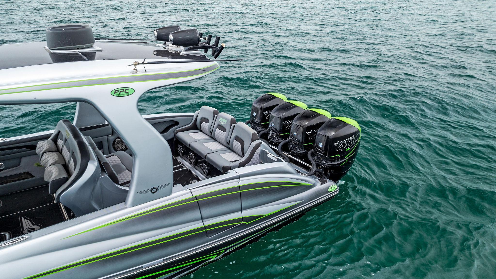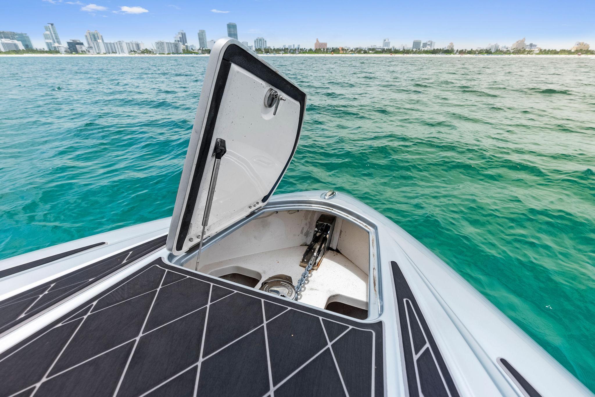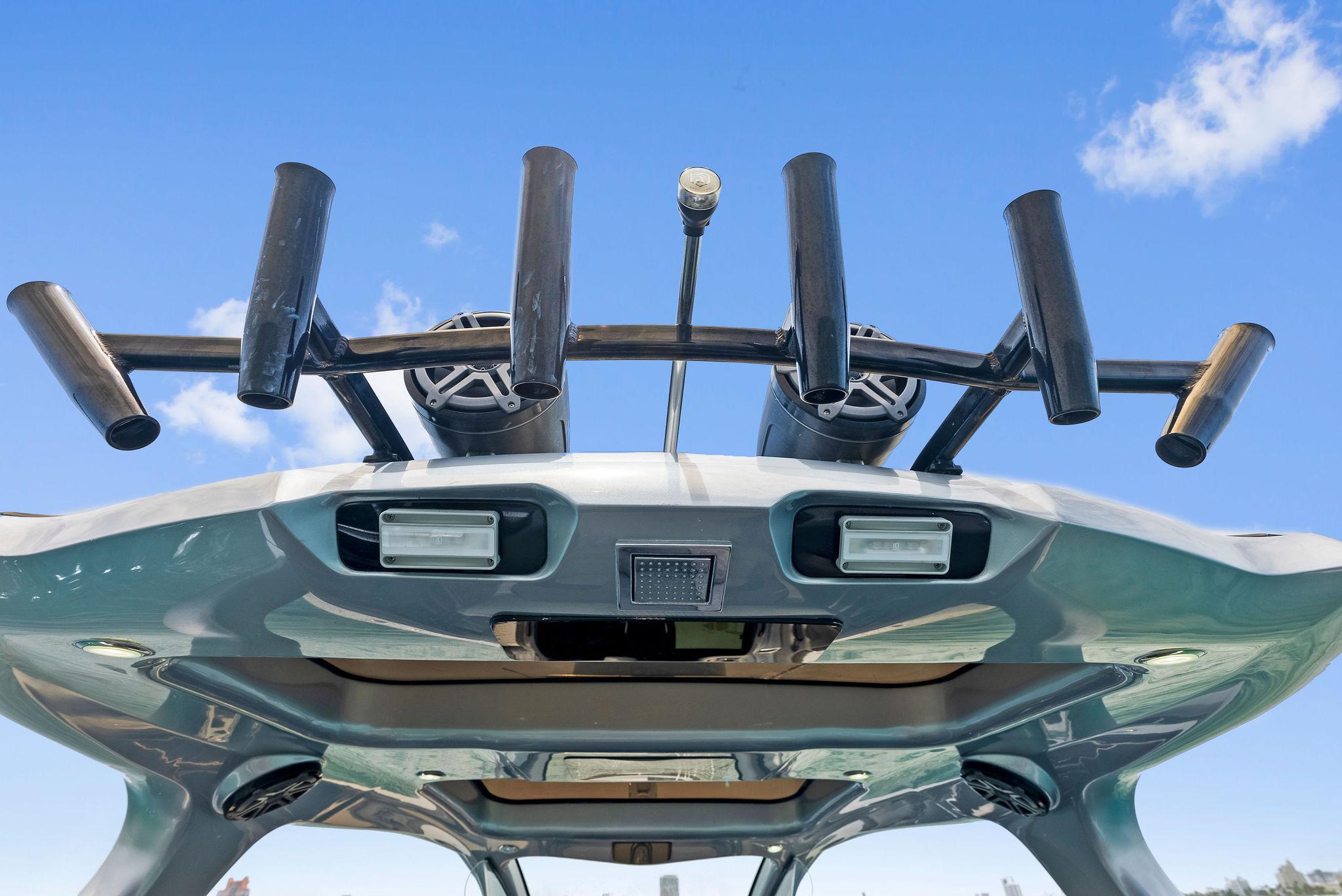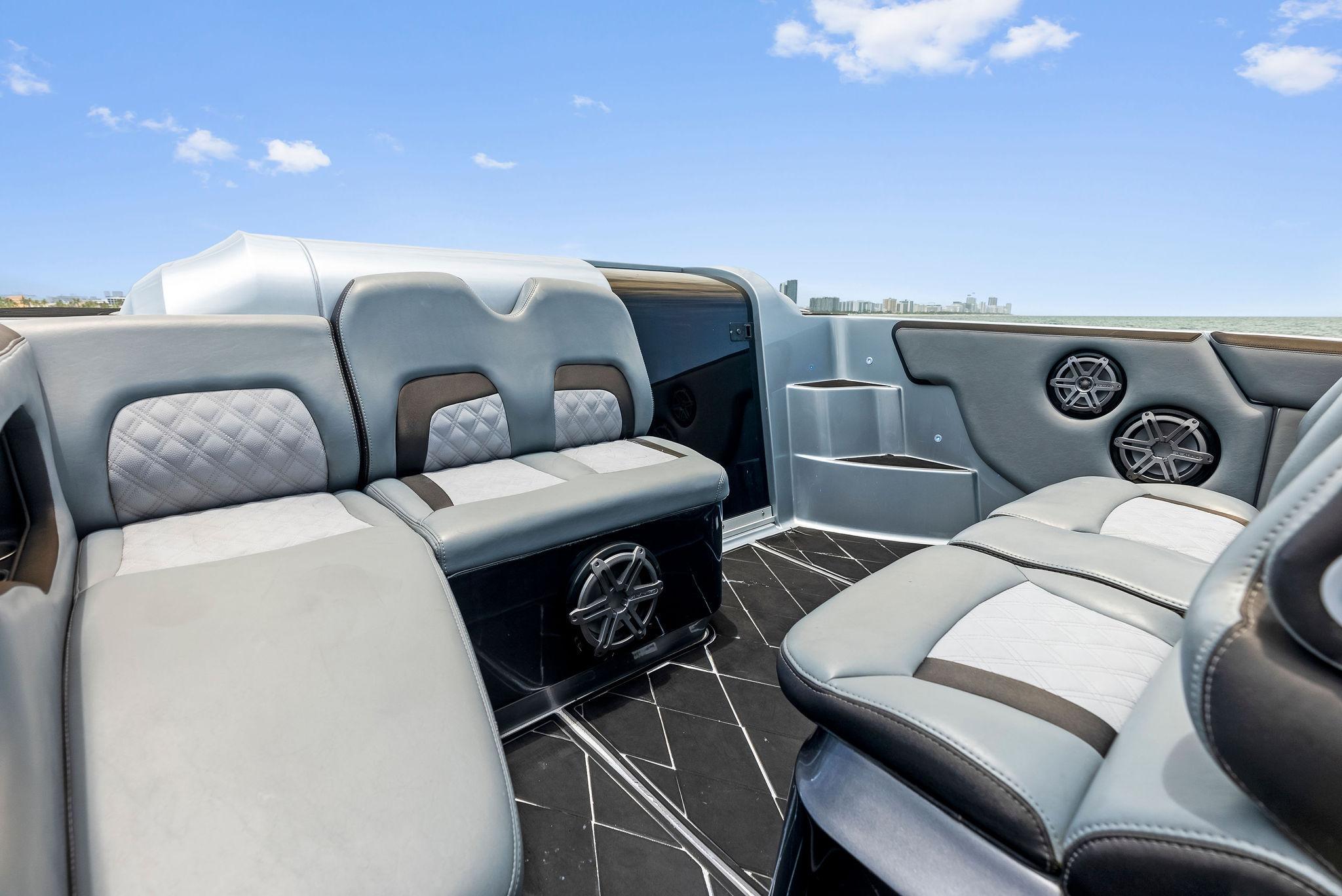 2018 Deep Impact 399 Cabin | BABYThe 399 Cabin is the best combination of an open center console that features a forward cabin for comfortable overnighting. A full V berth, hanging locker, galley and a bonus aft sleeping area come together in air-conditioned comfort. This boat also features a separate head under the console. What’s more is that all of this comes packaged in the look and ride of the new Deep Impact 399, a true offshore thoroughbred.FeaturesPowered by Quad Mercury Verado Racing 400HP Charcoal sea deck design Sky light hardtop Speakers & multicolor lightning Outstanding accommodations Features: Dual Garmin 17" GPS displays Premium JL audio stereo system with fusion head unit, 24 JL audio speakers, 8 amplifiers, 2 aft conesCustom modular helm bench/triple seat convertible center console w/ custom molded fiberglass frame & sealed tinted acrylic panel windshield. Rear starboard triple custom bench seating Luxury Cabin w/ TV, A/C, bed, kitchen with black Corian counter and backsplash cabinetry, a stainless sink, upright refrigerator, a microwave, & full hanging locker Port hinged dive door with custom marine stair Hardtop frame rod holders hardtop Freshwater washdown Bow thruster Underwater lightsLast maintenance was done at 300 hoursTrailer