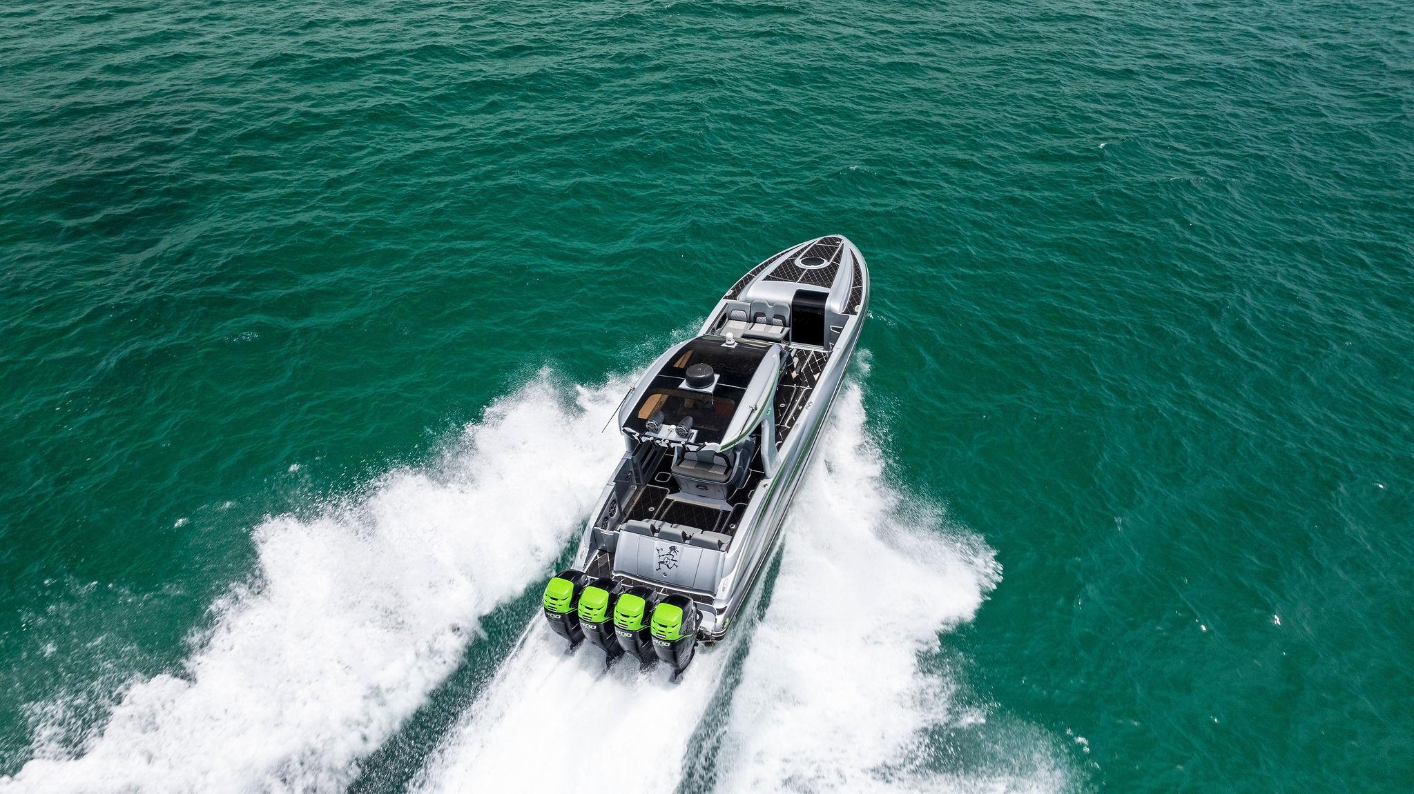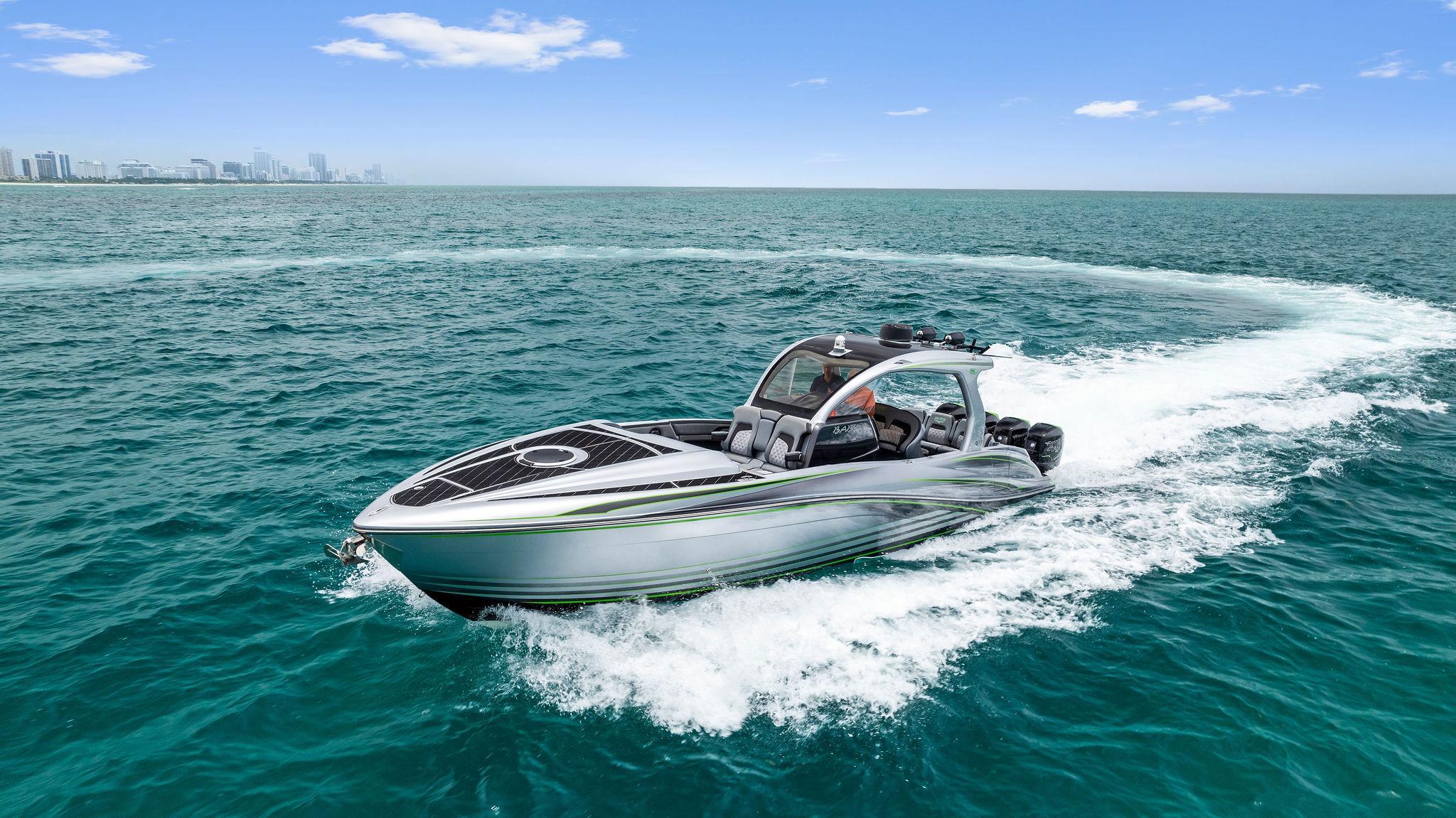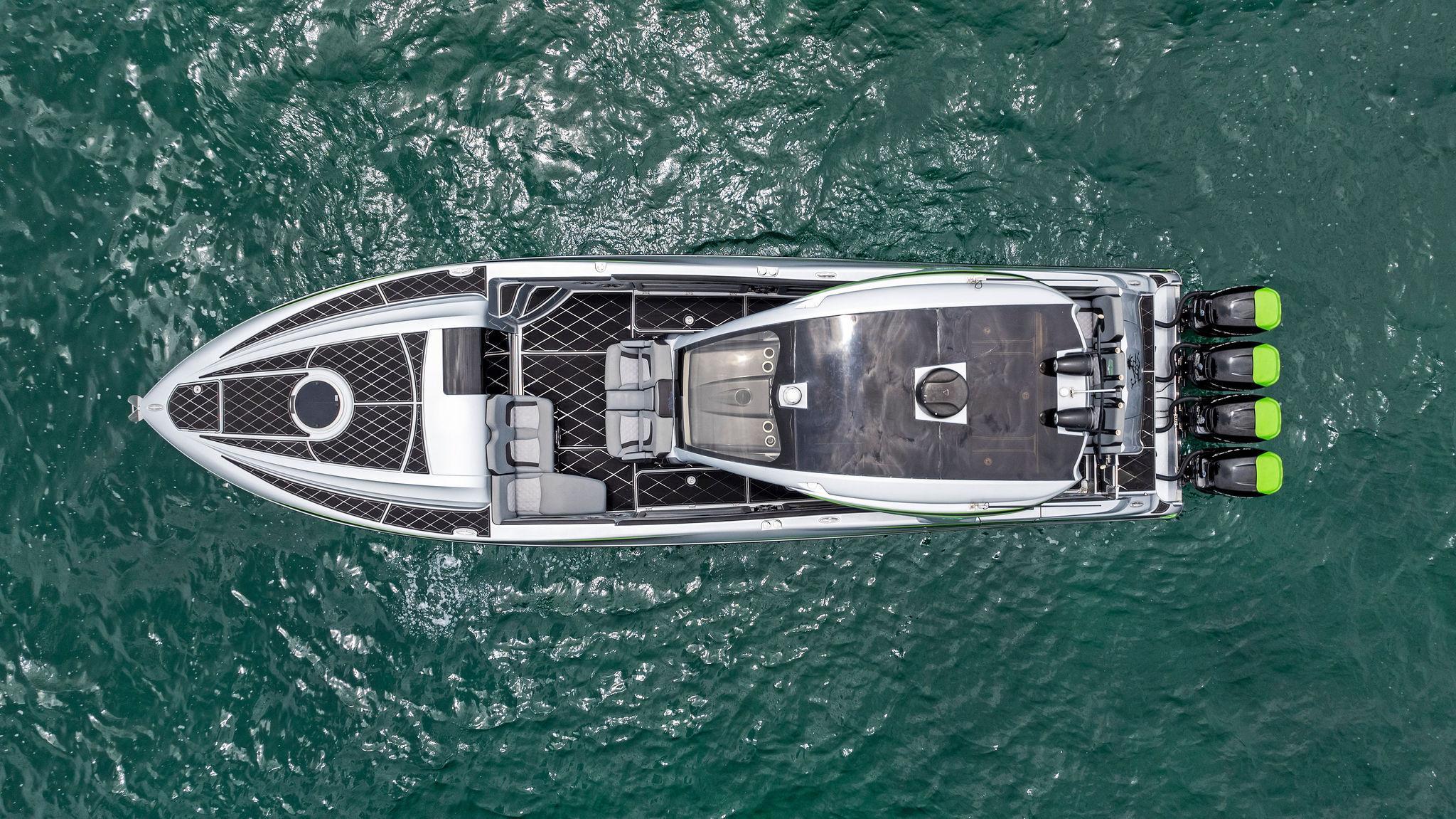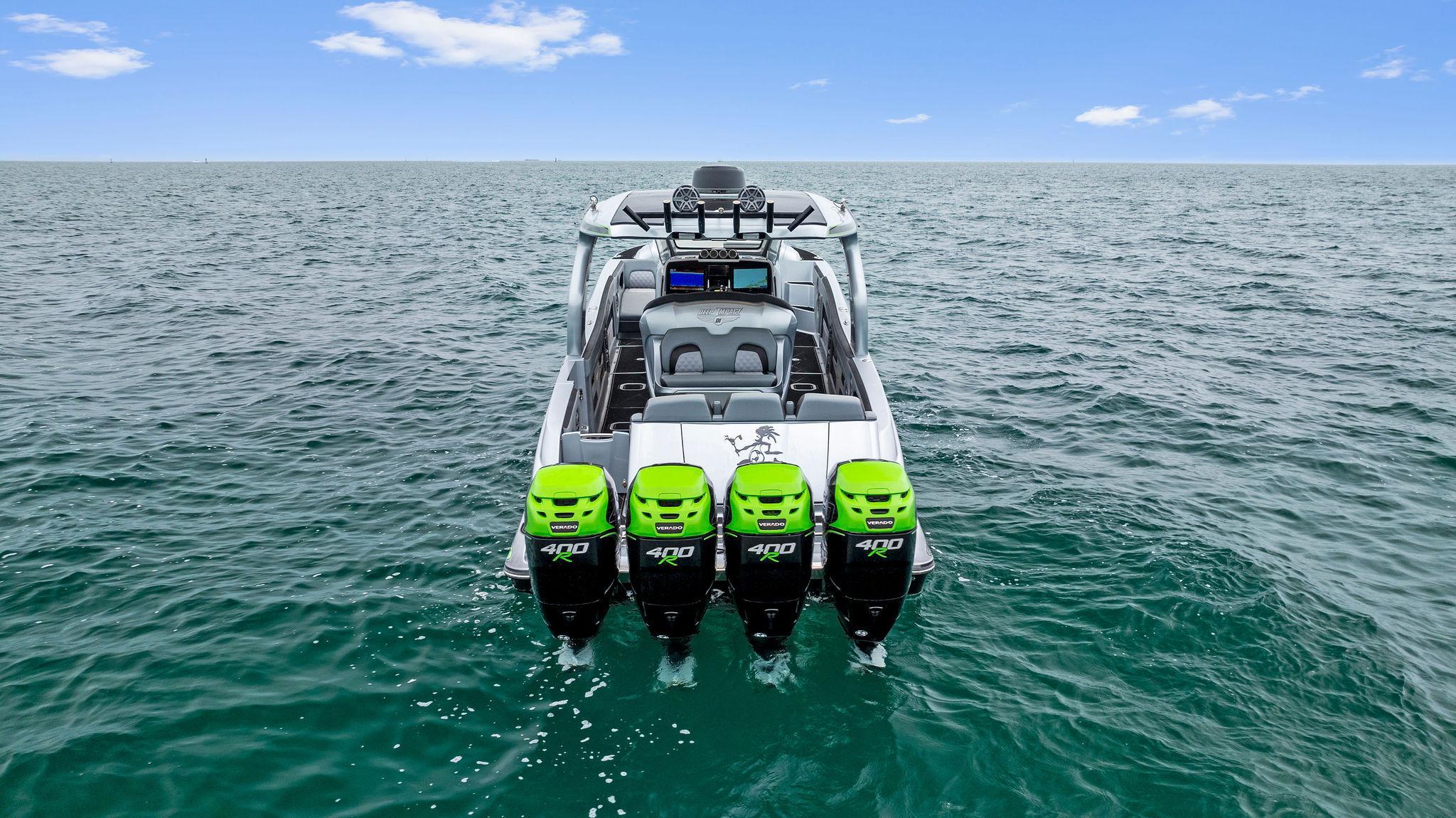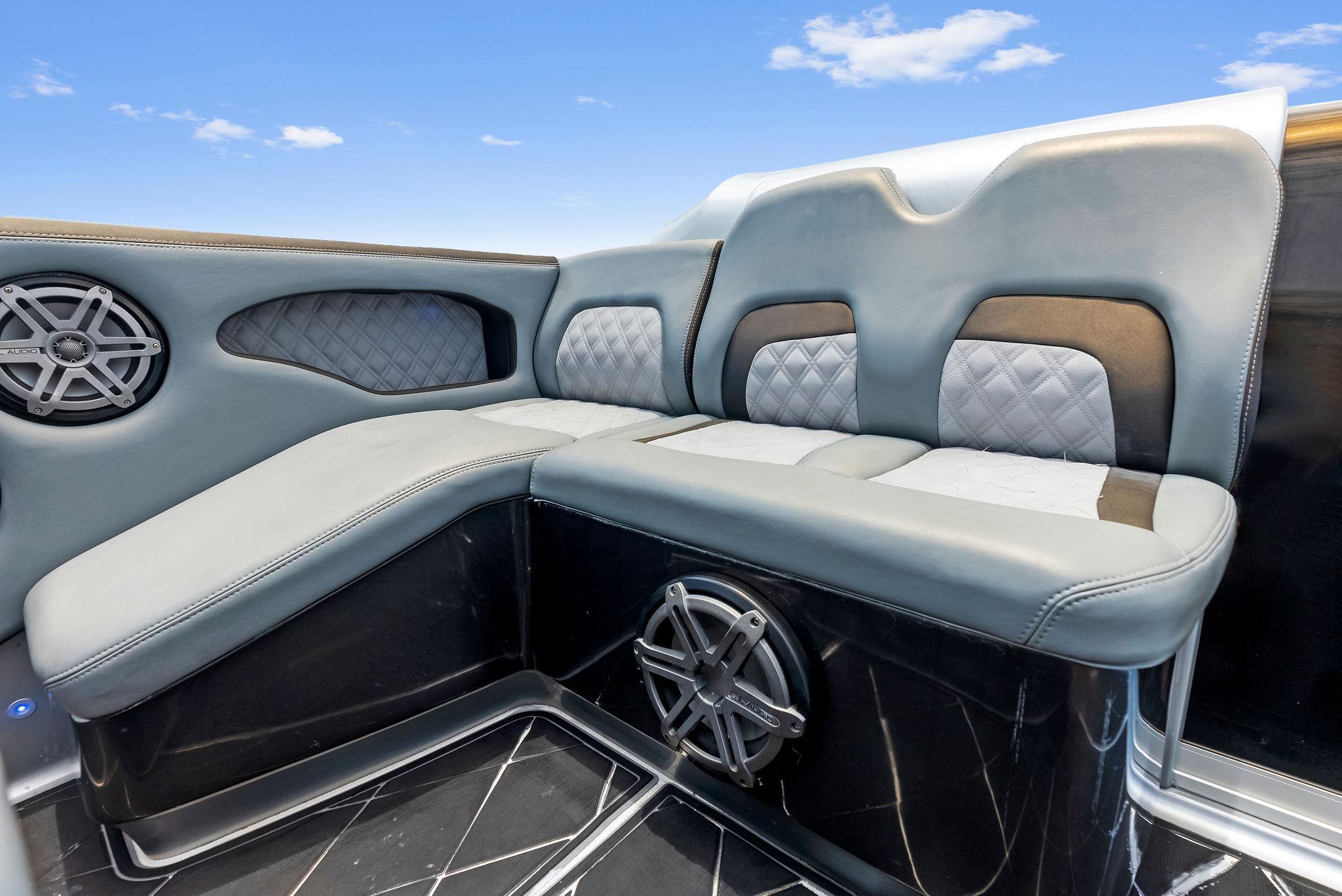 2018 Deep Impact 399 Cabin | BABYThe 399 Cabin is the best combination of an open center console that features a forward cabin for comfortable overnighting. A full V berth, hanging locker, galley and a bonus aft sleeping area come together in air-conditioned comfort. This boat also features a separate head under the console. What’s more is that all of this comes packaged in the look and ride of the new Deep Impact 399, a true offshore thoroughbred.FeaturesPowered by Quad Mercury Verado Racing 400HP Charcoal sea deck design Sky light hardtop Speakers & multicolor lightning Outstanding accommodations Features: Dual Garmin 17" GPS displays Premium JL audio stereo system with fusion head unit, 24 JL audio speakers, 8 amplifiers, 2 aft conesCustom modular helm bench/triple seat convertible center console w/ custom molded fiberglass frame & sealed tinted acrylic panel windshield. Rear starboard triple custom bench seating Luxury Cabin w/ TV, A/C, bed, kitchen with black Corian counter and backsplash cabinetry, a stainless sink, upright refrigerator, a microwave, & full hanging locker Port hinged dive door with custom marine stair Hardtop frame rod holders hardtop Freshwater washdown Bow thruster Underwater lightsLast maintenance was done at 300 hoursTrailer