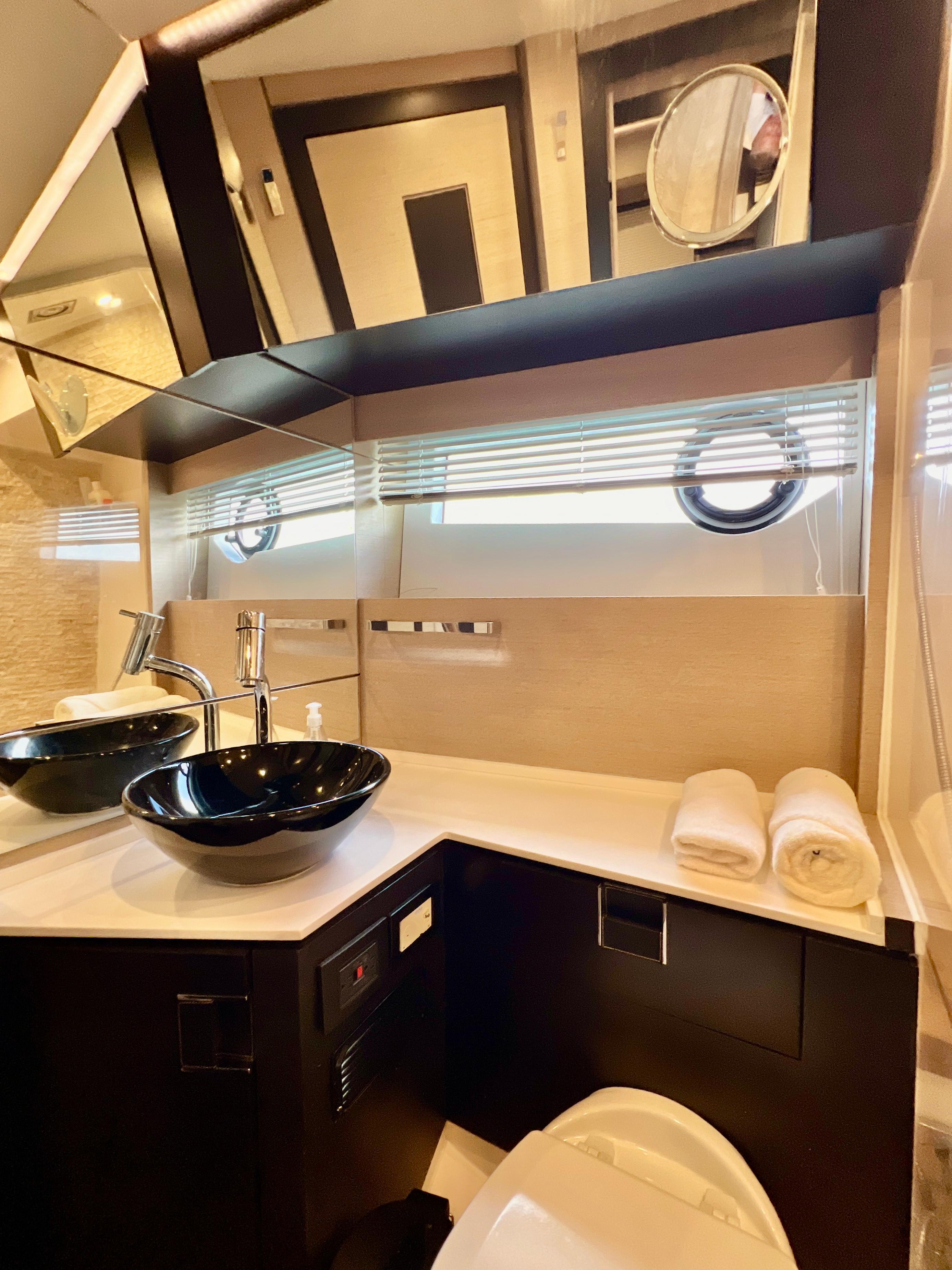 - In addition, sliding windows on the portside of the galley that opens to the side deck and balcony