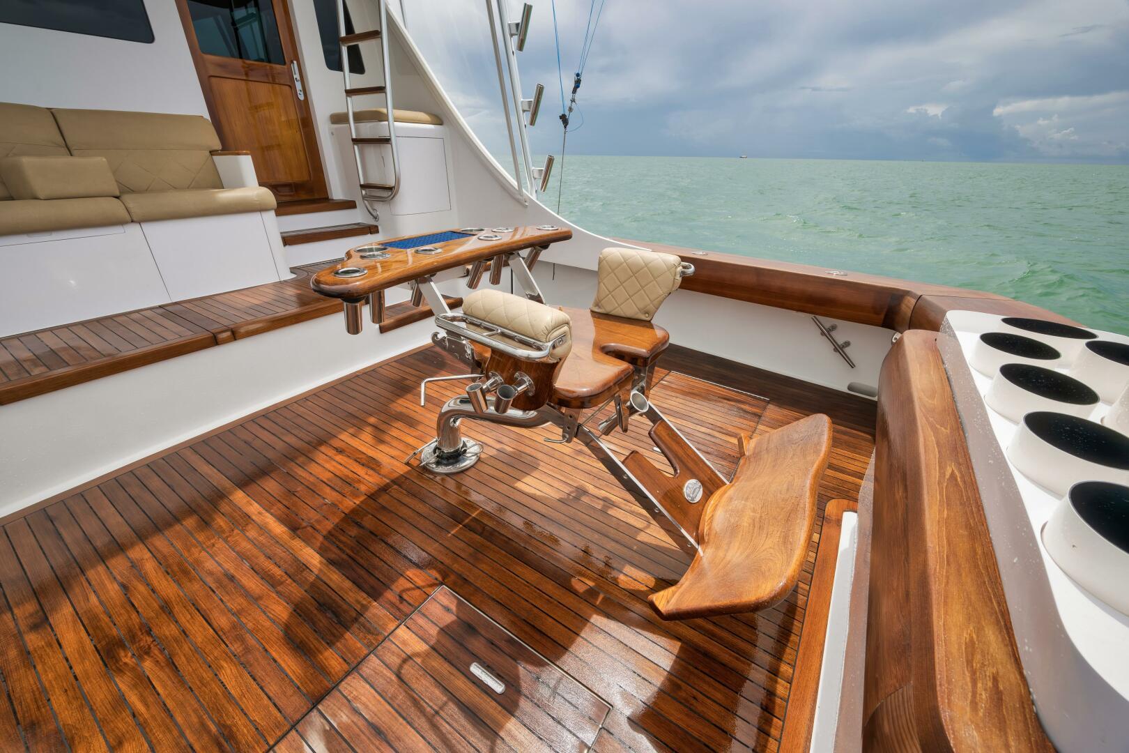 Cockpit and Fishing EquipmentNEW Marine Power Salon Door (2024) NEW Gemlux Rod Holders (2024) NEW Teak Covering Boards (2024) Bausch/American Ladder w/ 6 Teak Treads Air Conditioned Mezzanine Seating w/ Teak Accent All Mezzanine Boxes and Fish Box Stainless Steel Lined Large Bait Freezer Under Mezzanine Seating Mezzanine Deck Hatches Live-Well Refrigerated Bait Box Refrigerated Drink Box Box with Ice Dump for Eskimo Ice Chipper Large In Deck Fish Box Dedicated Eskimo Ice Chipper NEW Cockpit Freezer (2024) NEW Livewell Lid (2024) Transom Door w/ Folding Lift Gate NEW Custom Fiberglass (10) Tuna Tube Removable in Livewell NEW Fiberglass Tuna Tube Tank Fresh Water Wash Down Air Connection For Utility Compressor Air Connection For Brownie 3rd Lung Compressor Dock Connection for Water Maker Feed Dock Connection for Washing Machine Supply Dock Connection for Water Tank Fill (2) 12V Outlets for Electric Reels (2) 110V Outlets Under Gunnels (6) LED Tri Color Lights in Overhang Teak Cover Boards & Cockpit Coaming Acrylic Wing Curtains (6) Heavy Duty Swivel Rod Holders (6) Rod Holders in Tower Legs Bluewater Teak Fighting Chair & Custom Rocket Launcher w/ Offset and Pedestal Cockpit Cover w/ Recessed Track (4) LED SeaBlaze Underwater Lights (2023) NEW Bilge Pumps Throughout