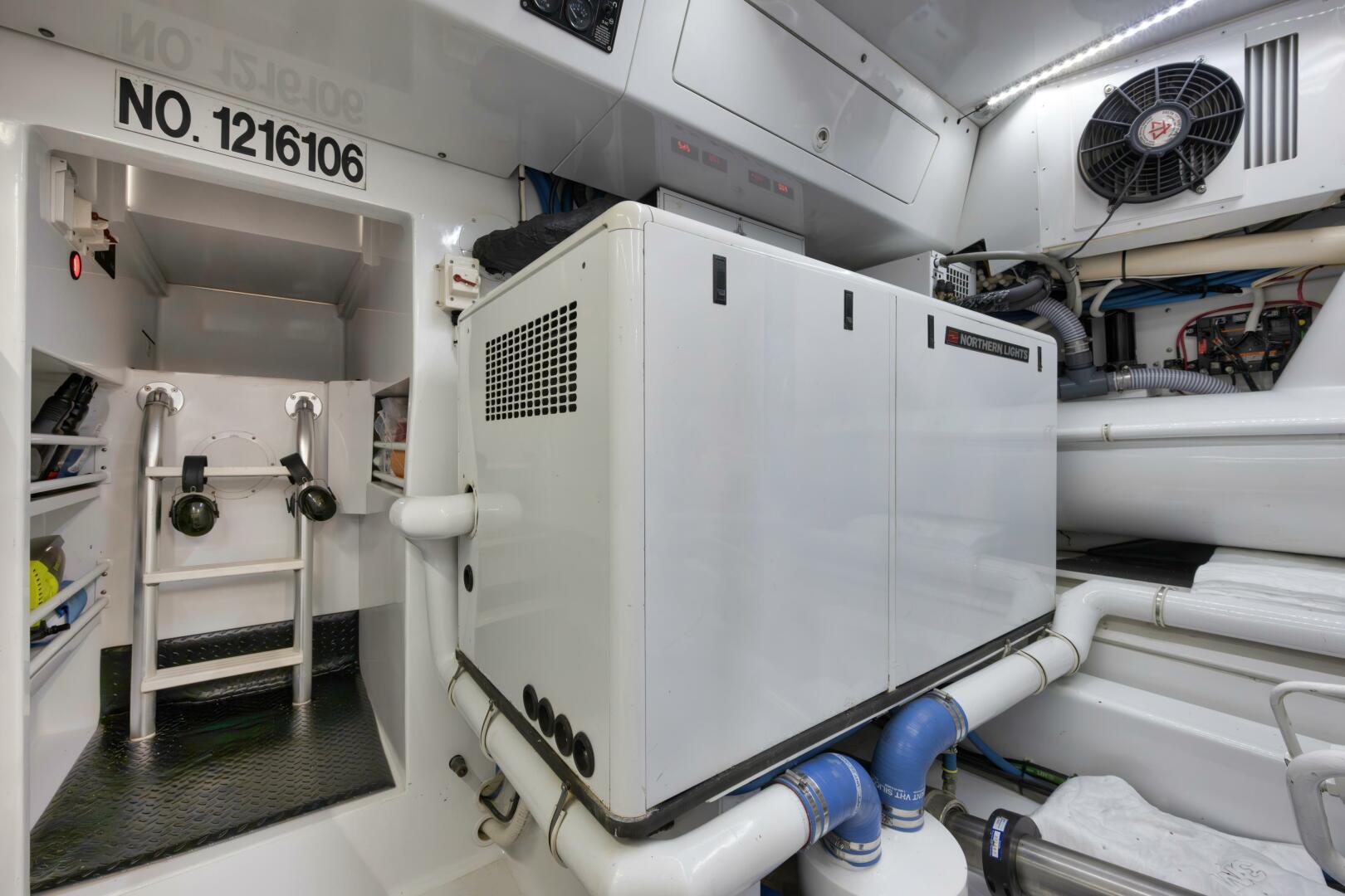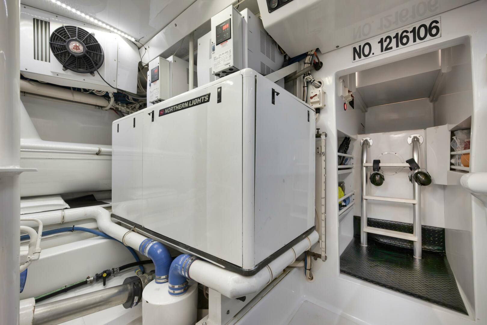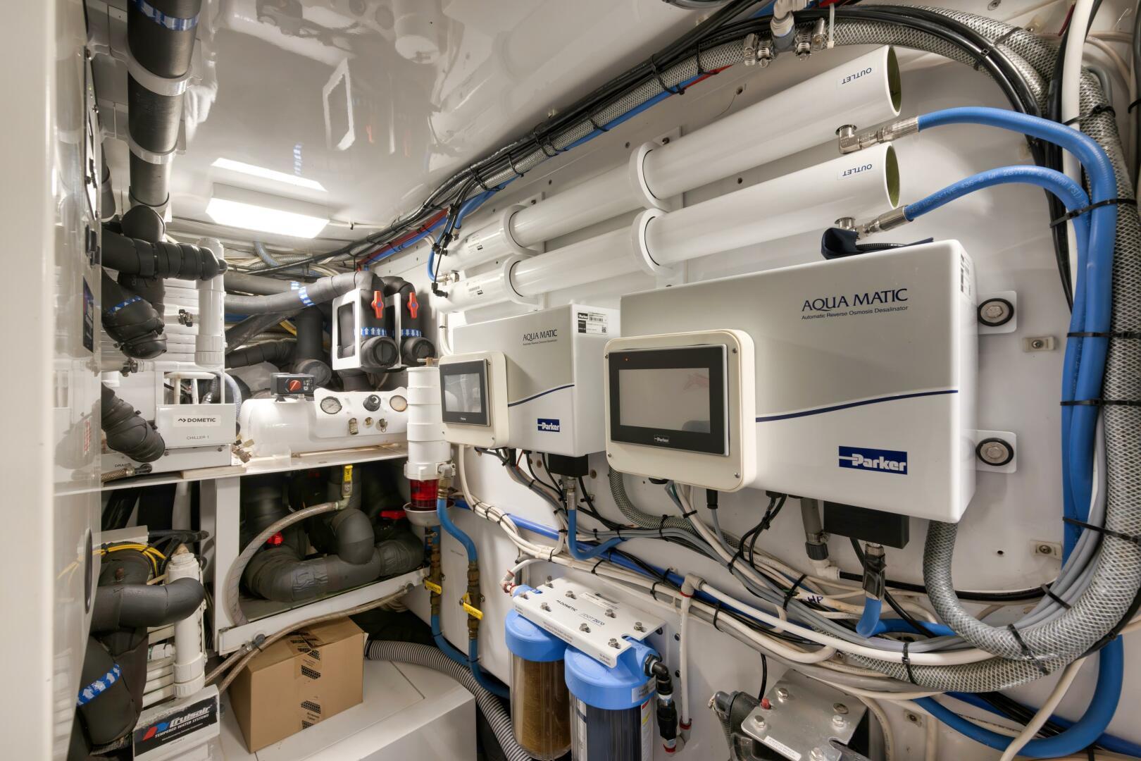 Pump Room(2) Cruise Air 48,000 BTU Tempered Water Chiller NEW (1) Chiller Replaced 2024 NEW (2) Sea Recovery Aquamatic 900 Gal/Day Water Makers (2024) (2) Head Hunter Mach 5 Fresh Water Pumps (2) Fuel Transfer Pumps UV Sterilizer (Fresh Water System) Rigid Air Compressor NEW S.S. Hot Water Heater (2024) 36" Craftsman Professional Tool Box w/ Tools Pool Pump for Live-Well/On Deck Tubes or Well LED Lighting Throughout All Mechanical Spaces NEW ElectroSea NEW Spotzero (2024) NEW 3 HP Variable Speed Pentair Pump
