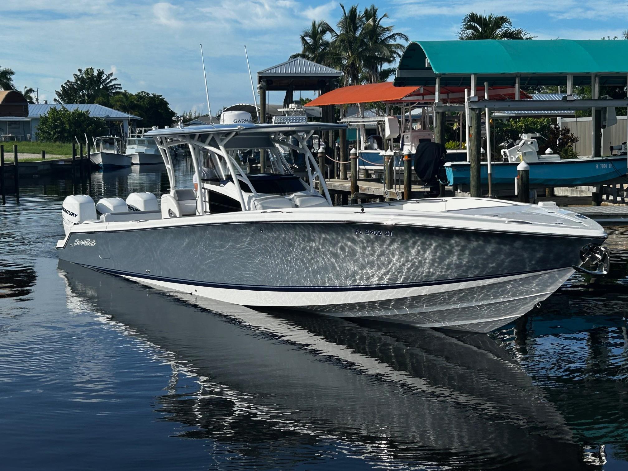 Price Reduced! The best of all worlds. 2021 390 Sport, Super Clean and Loaded for Fishing. Triple Mercury Racing 400 R's with only 163 Hours. 8616 Garmins, GSD 26 CHIRP Sonar, Auto Pilot, 18" Radar, VHF, Sirius XM, Tackle Center Helm Seat, Live well, Outrigger Mounts, Trolling Motor Mount, (Rodan not included but available) Electric Reel Outlets, 85 Gallon Additional Fuel Tank.