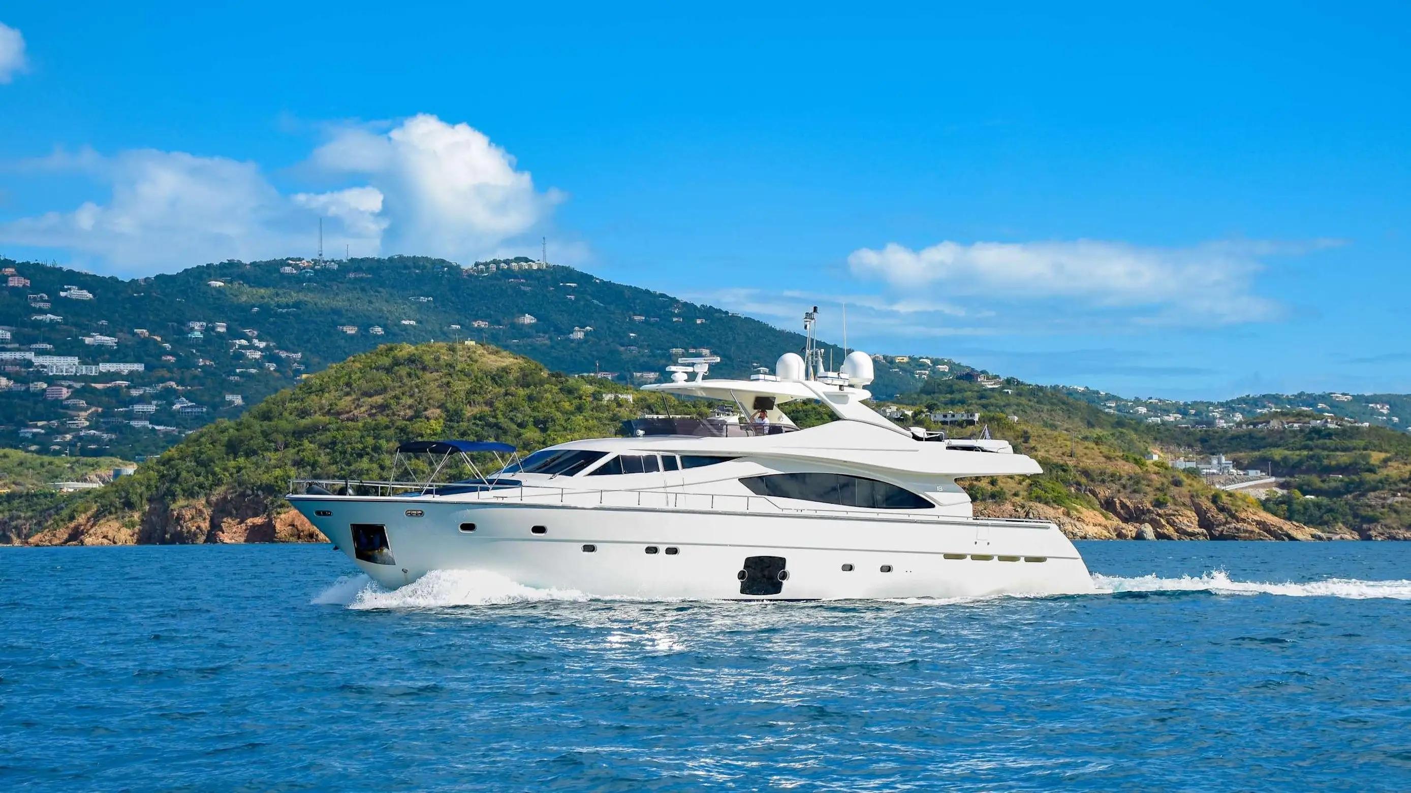 EXTENSIVE REFIT COMPLETED AND BRAND NEW ENGINES INSTALLED IN 2023 This 88’ pleasure yacht has been meticulously maintained by both the owner and a full time crew. She has undergone a complete refit with all systems being addressed, including both main engines replace new in 2023 and currently have less than 200 hours on them. With 4 staterooms and 4 full baths with one half bath, this yacht can easily accommodate 10 guests comfortably. This is a rare opportunity to walk onto a yacht that is ready for your cruising pleasure. The Ferretti 881 presents design solutions made to optimize the spaces and the brightness of the different cabins. The layout of the master cabin presents two large open-view windows on both sides making it an incomparable suite in terms of space and light. Located wide in the central part of the hull, the master-cabin faces the direction opposite to the navigation, and allows the shipowner to enjoy a unique view of the sea lying down on the bed or in the shower. Externally a very large flybridge equipped with a Jacuzzi, bimini top, and plenty of seating, makes this area the ideal place for sharing unforgettable moments with the guests. A large garage located aft with a hydraulic opening, becomes a wide swim platform. The interior spaces and finishes make this yacht a real villa on the sea.As a bonus, this yacht is already receiving charter income, which directly offsets or at times, completely eliminates the owners monthly cost.
