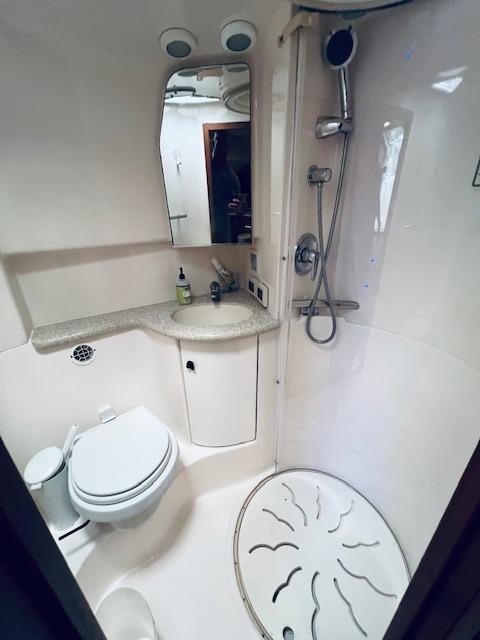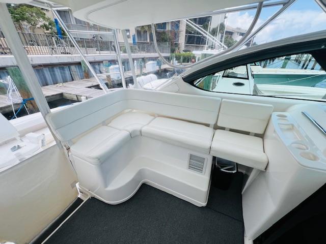With over six feet, seven inches of headroom, three opening foredeck hatches and six hullside portlights (with screens), the Tiara 3800 Open interior is large and well-lit. The starboard U-shaped lounge converts to an over-sized dinette with a hi-lo pedestal table or to a double berth. The lounge backrest flips up to make a pullman-style single berth. The AM / FM stereo is standard. The fully-equipped galley features a double bowl stainless sink, microwave oven, two-burner electric cooktop, AC / DC refrigerator / freezer, Corian countertop, lazy susan under the counter shelf unit, and plenty of over / under storage. The completely private owner's stateroom features a pedestal queen berth with storage below, accessed with the aid of a gas-assist lift. A large hanging locker, hullside convenience shelves, and private access to the head complete this retreat. The head has dual access from both the salon and owner's stateroom and offers a separate stall shower and molded Corian countertop and sink with vanity, mirror and storage above, and under-storage below. On deck, standard cockpit seating features an extra-wide back-to-back helm seat with wetbar and storage, and a curved companion lounge with cooler storage and aft-facing seat. An optional fold down transom lounge and ice maker are also available. The stepped cockpit features 147 square feet of entertaining or fishing space. Under the cockpit sole are large compartments for either cruising or fishing stowage, or both. Engines access is through an upper cockpit drop-down hatch, or through a lower cockpit electric hatch lift. Borrowing from the 5200 Express, the 3800 Open has a new custom electrical system, and also offers an optional generator, which includes a sound shield. The tilt-away helm features over 3.5 square feet of additional space for electronics. In anticipation of larger horsepower engines, the 3800 has extra engine room space and a structure envelope built in. This 2003 Tiara 3800 is an exemplar of precision maintenance and modern updates, tailored for both fishing and cruising adventures. Powered by twin Cummins 480hp 6CTA 8.3L engines with 1,400 hours, it promises robust performance and reliability. Significant upgrades were made in 2022, enhancing its navigation capabilities with dual 16-inch Garmin touchscreen displays, an open array radar, and an autopilot system elegantly set within a custom acrylic panel. The same year, the vessel received a new Isinglass enclosure, fresh helm upholstery, and a comprehensive service that included hull detailing, a prop speed application, and a bottom job. Additionally, a new air conditioning unit was installed to ensure comfort during your maritime journeys. Lightly used and available at an attractive price, this midsize sport fisher offers an excellent opportunity for enthusiasts seeking a quality vessel with minimal wear. Contact the Central Listing Agent today for detailed information and to arrange a viewing.
