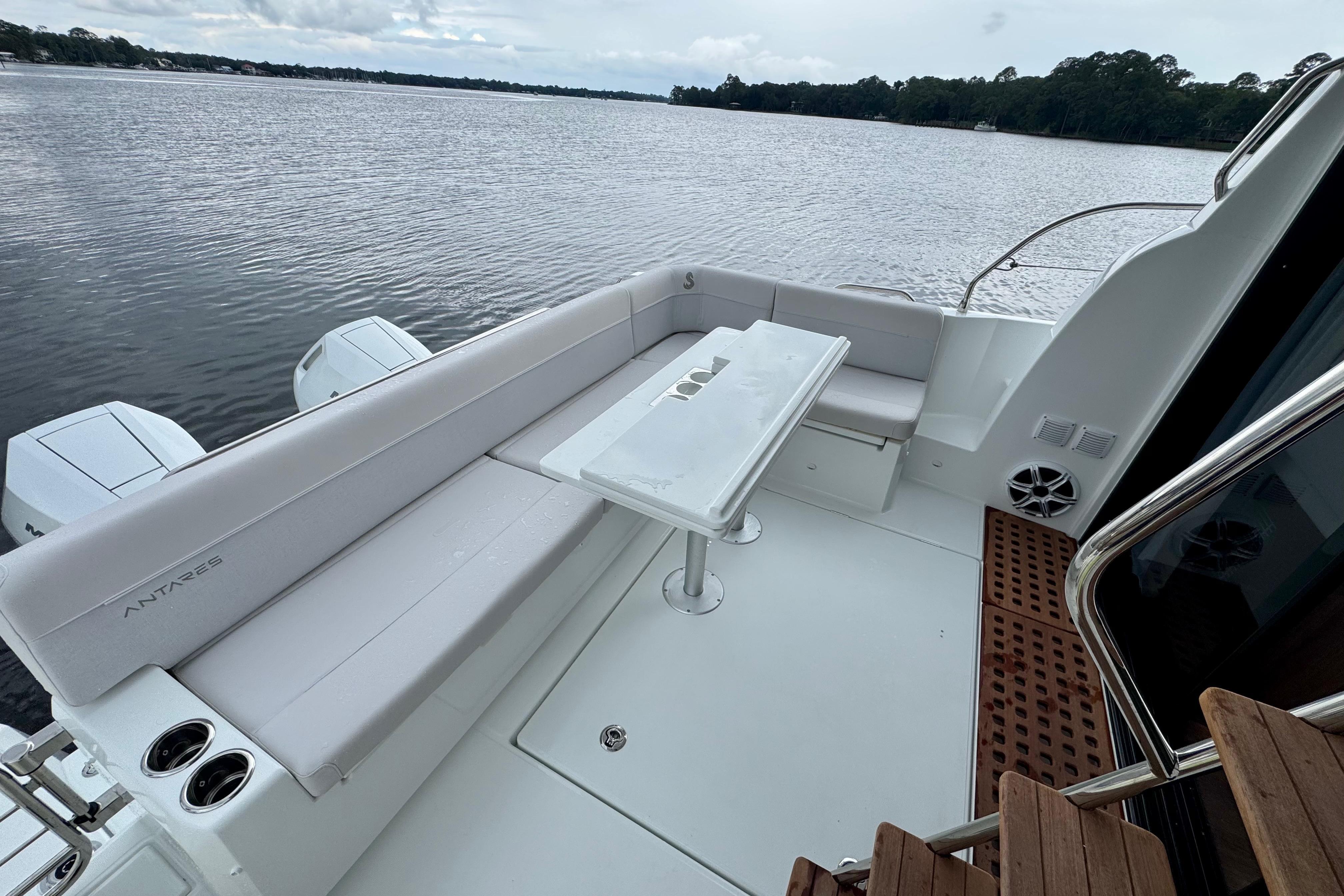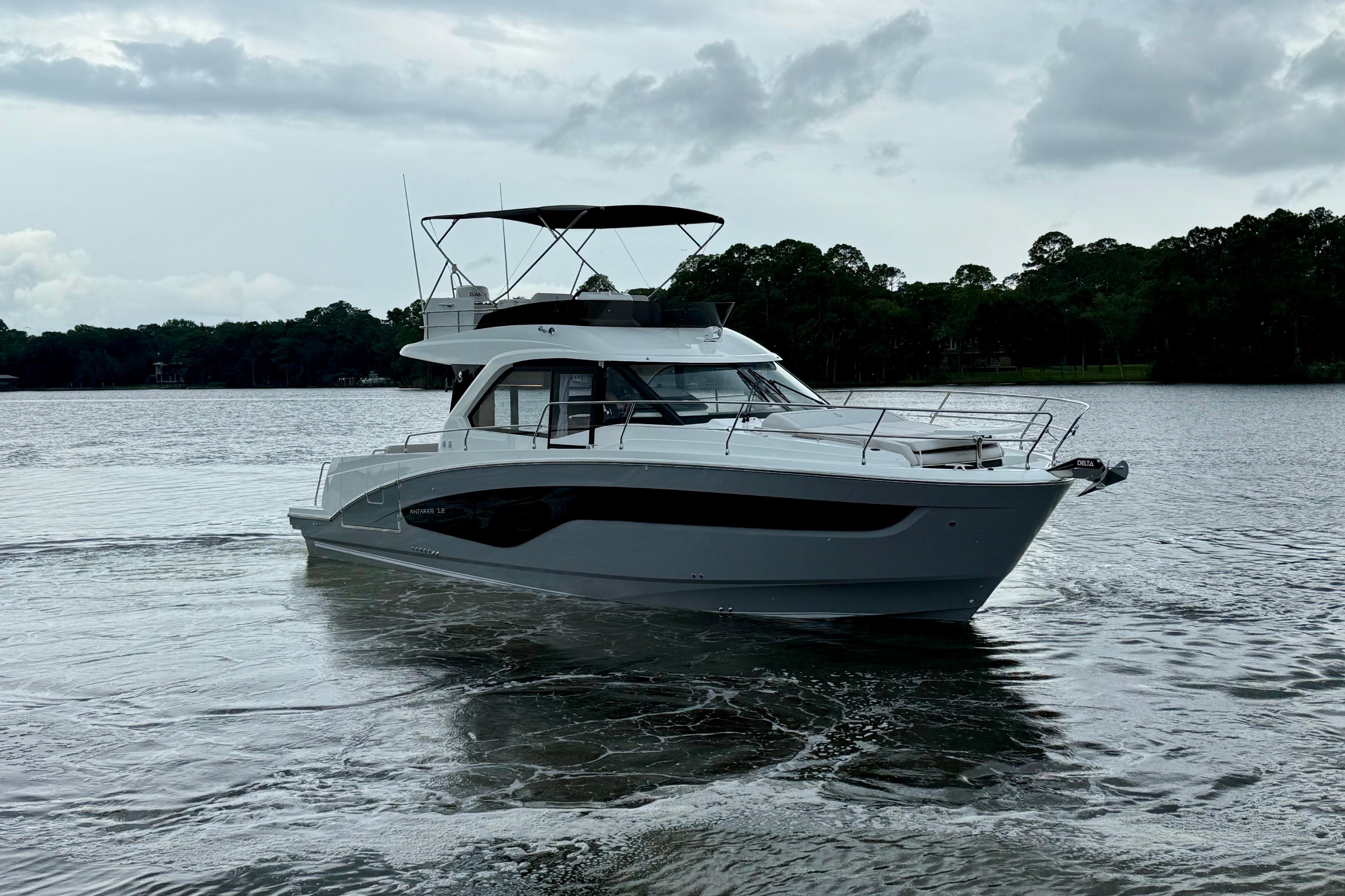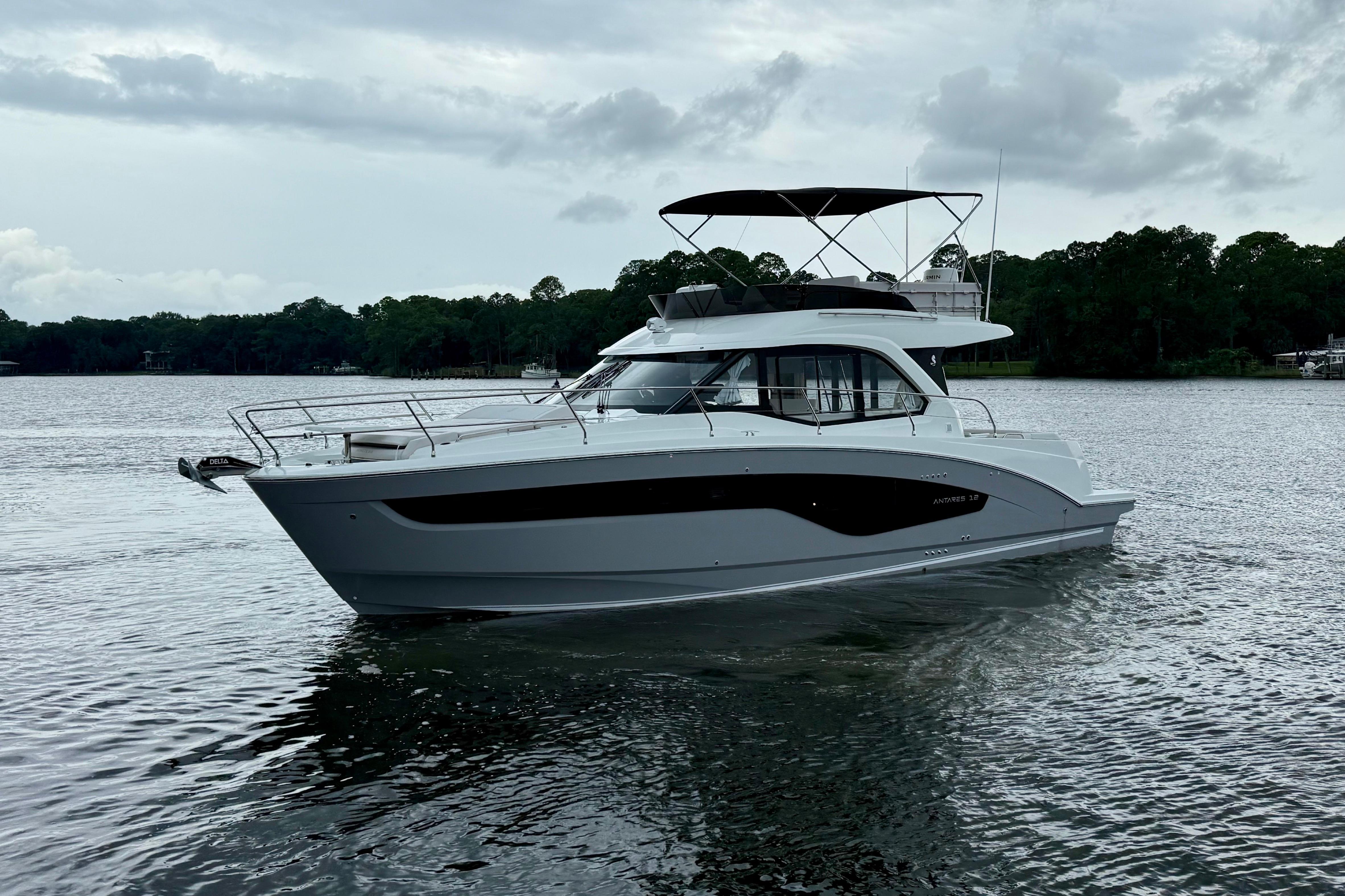 Well equipped and ready to cruise or complete America's Great Loop. We are the Beneteau outfitting professionals, we can add Starlink, Solar, Dingy Rack, Ceramic Coating, Water Maker, Window Tint and many other accessories to your new Antares 12. Our upfront pricing includes full tank of fuel, all required USCG safety equipment, basic boating gear and on-water orientation with no hidden fees. We accept trades and have competitive financing available. Give us a call today to reserve this incoming Antares 12 and beat the upcoming price increases!Options on Vessel:Twin Mercury 400hp Outboards w. Joystick PilotingUS PackageUpgraded Electronics PackageUpgraded Sound PackageMooring/Anchoring KitFiberglass Cockpit TableFiberglass Foredeck TableBow ThrusterSeaKeeperAdditional Refrigerator in 3rd Cabin (3 Refrigerators Total Onboard)MicrowaveChina Set, 6 SettingZipwake SystemPearl Grey Hull ColorTV AntennaRear Facing Garmin CameraGarmin Radar The new Antares flagship is loyal to the identity and history developed by its predecessors. The Antares 12 is a remarkable step forward in terms of equipment, comfort on board, spaciousness and elegance. Wherever you go, your family will love its versatility and widely recognized style.