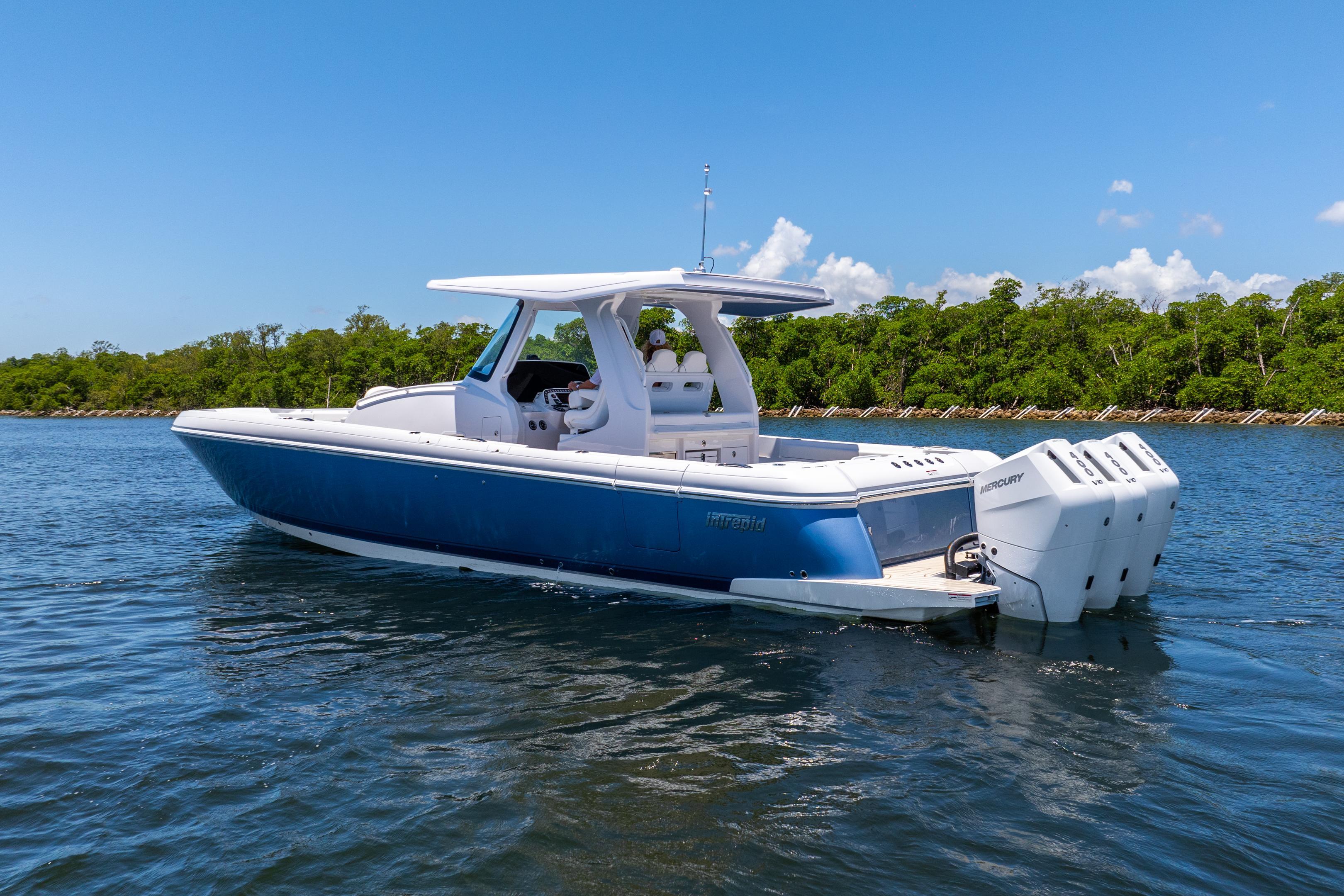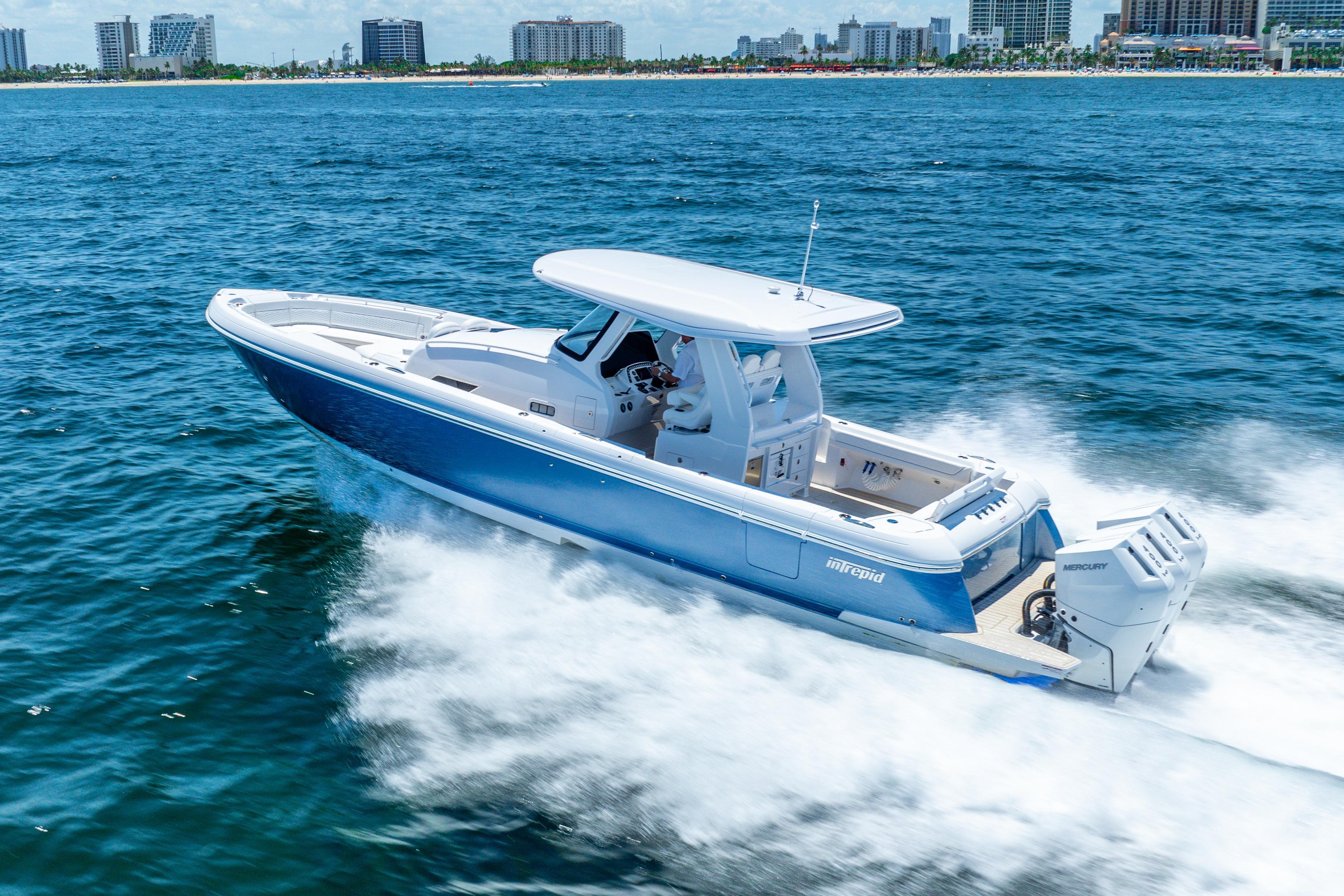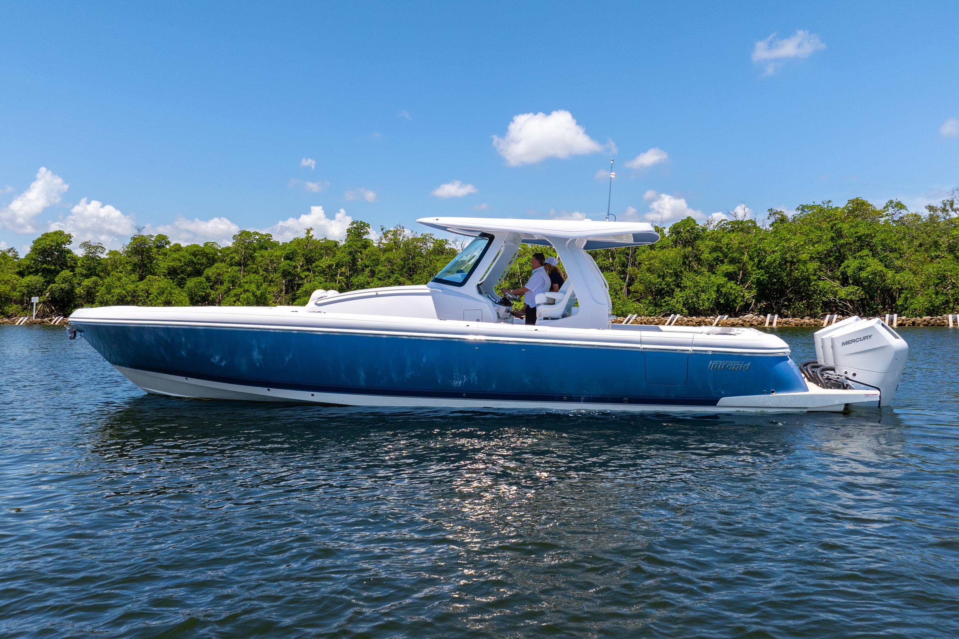 Expanding on the design of our wildly successful 407 Panacea, a new hull and wider beam make room for today’s larger engines, a roomier helm, transom walkway, and the elevated amenities of a more spacious cabin – all with the one-of-a-kind customization offered only on an Intrepid.