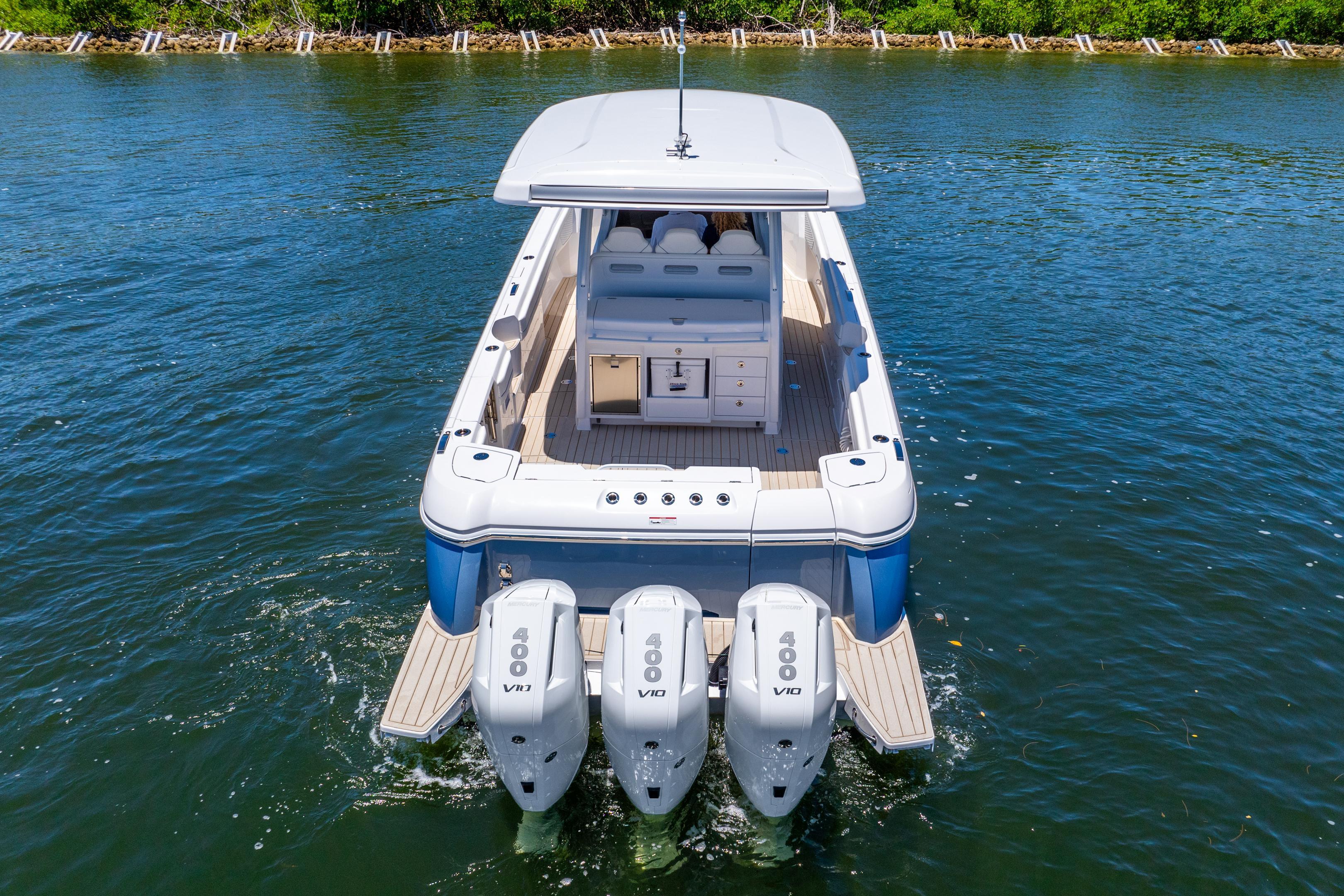 The ALL NEW 41 Panacea is a MUST SEE!!Triple Mercury 400 V10sJoystick Piloting w/ Skyhook & Integrated AutopilotMasPower 8.5 kw Diesel GeneratorSea Keeper 4.5 Gyro StabilizerVetus Bow ThrusterHelm & Cabin Air ConditioningCustom Summer Kitchen with Grill, Refrigerator, Sink, Pull-Out Cooler & StorageSwing in Dive Door w/ Heavy Duty Fold Out LadderTransom Fold Down Bench SeatWalk Through Transom DoorCockpit Electric Sun Shade SystemPort/Starboard Transom Baitwells w/ WindowsUpgraded Cabin Wood Veneers and Harwood FlooringCustom Exterior DeckingCustom Diamond Blue Hull Side PaintElectroincs:FULL GARMIN ELECTRONICS PACKAGE