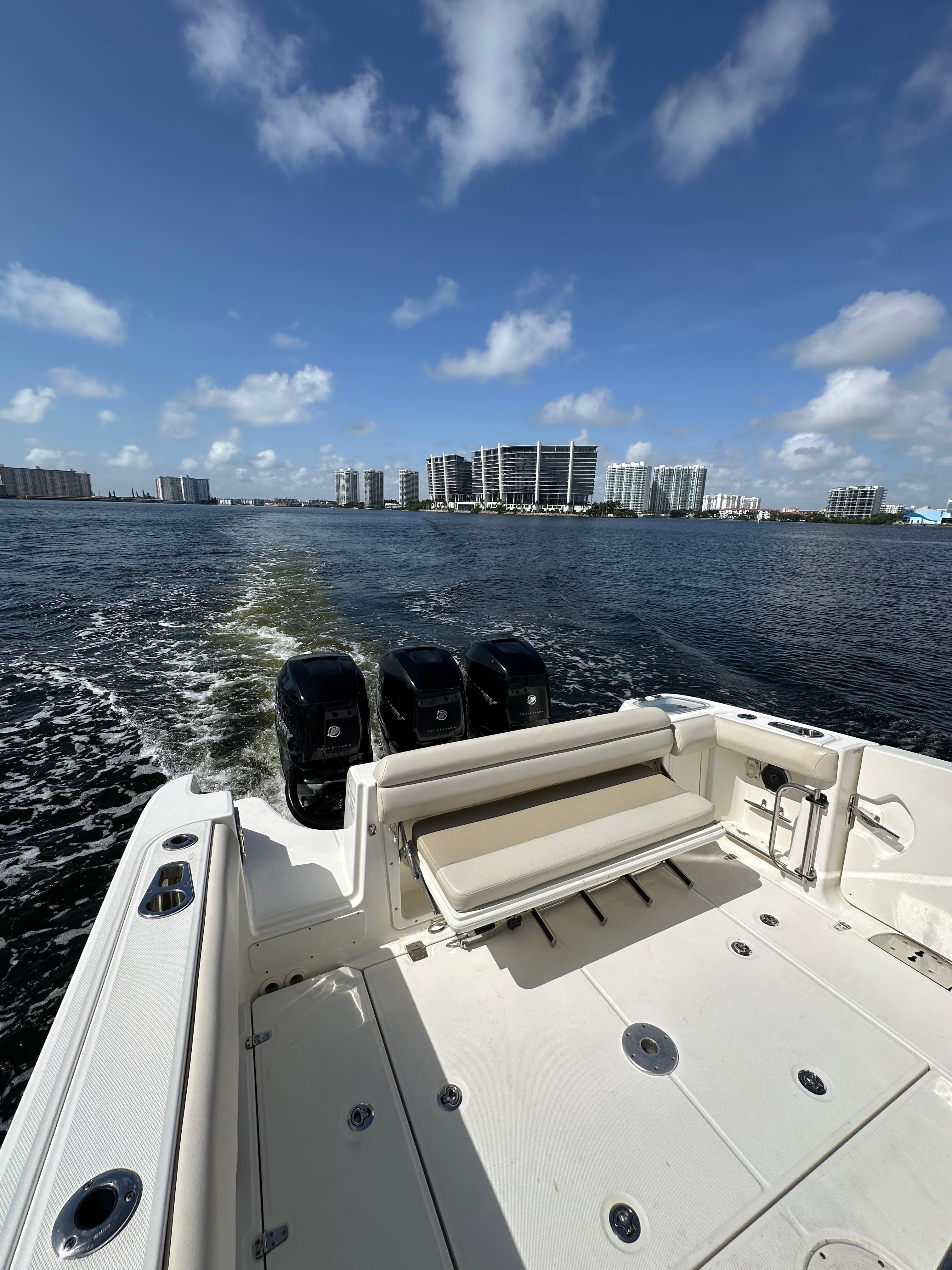 2017 Boston Whaler 350 OutrageBoston Whaler 350 powered by 3x Mercury Verado engines. Perfect for day cruising, fishing or tender to big yacht. Tow eye installed. Equipped with joystick makes docking the vessel super easy. Blue hull and all the services up to date. Vessel maintained by professional yacht crew. Manufacturer Provided DescriptionRemarkable capability beautifully matches thoughtful amenities and cutting-edge technology in the 350 Outrage®. Whaler’s boat-building quality and attention to design is clearly evident from bow to stern, with features and options to make your 350 uniquely yours. On the 350 Outrage, every element combines to produce an exceptional experience no matter what the day brings. On a Whaler, you are safe, secure and always ready for more with confidence that never wavers.Ample rod storage throughout keeps your arsenal within easy reach.Deluxe leaning post includes multiple drawers and abundant storage to keep gear organized.Bow table/sun lounge converts easily with a gas-assisted base.Convenient portside dive/boarding door with removable ladder means better snorkeling and easier boarding.Convenient enclosed head with VacuFlush™ toilet, vanity and shower lets you stay out longer in comfort.Premium features include a SiriusXM®–ready Fusion® stereo system, triple Mercury® FourStroke Verado® engines with available Joystick Piloting for effortless docking.