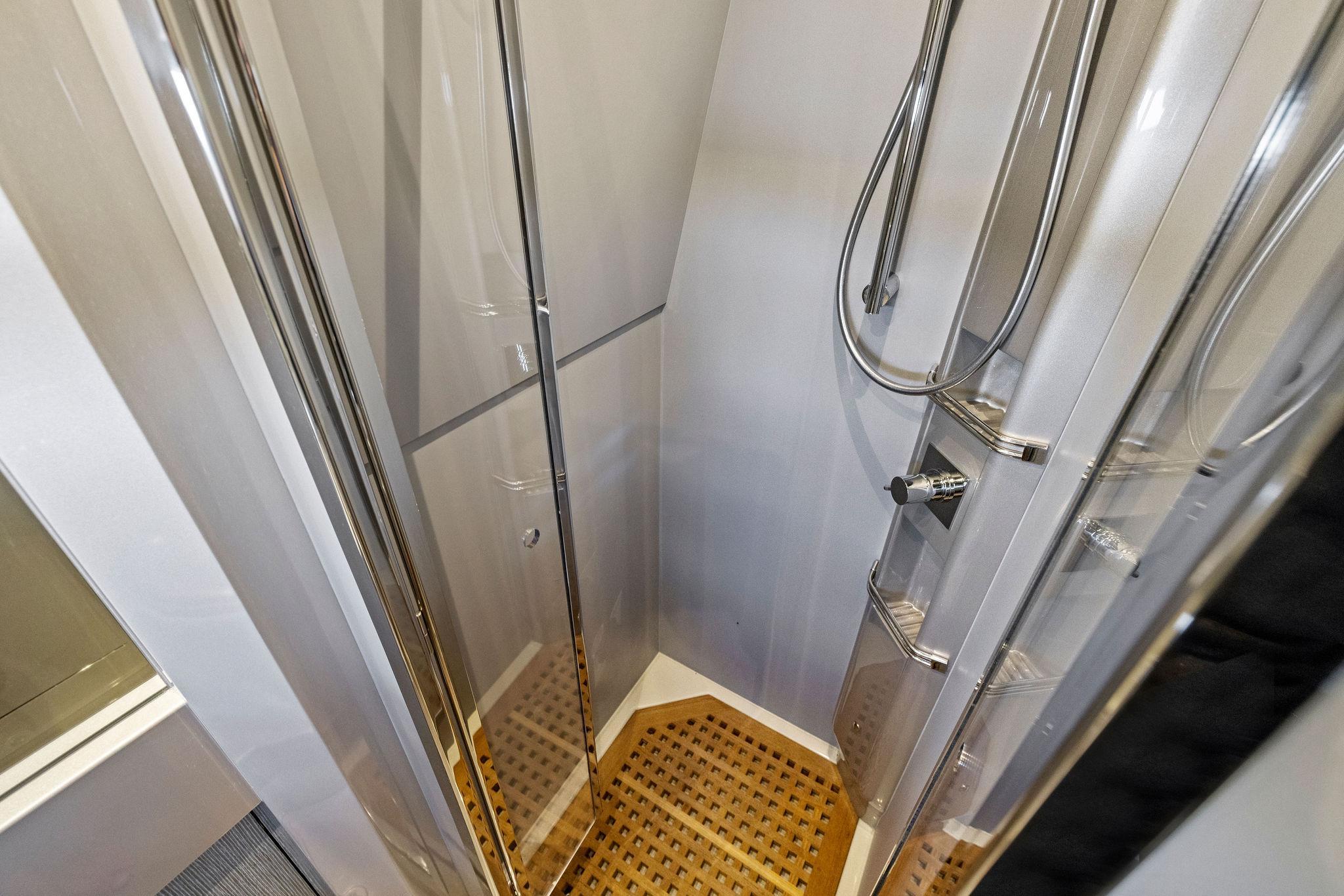 - Freshwater hot/cold shower recessed in aft deck area