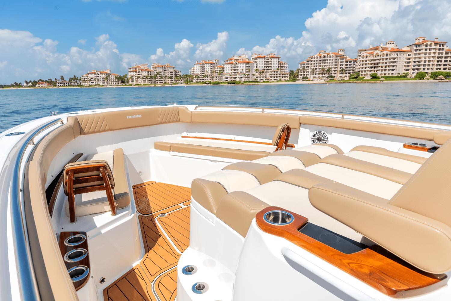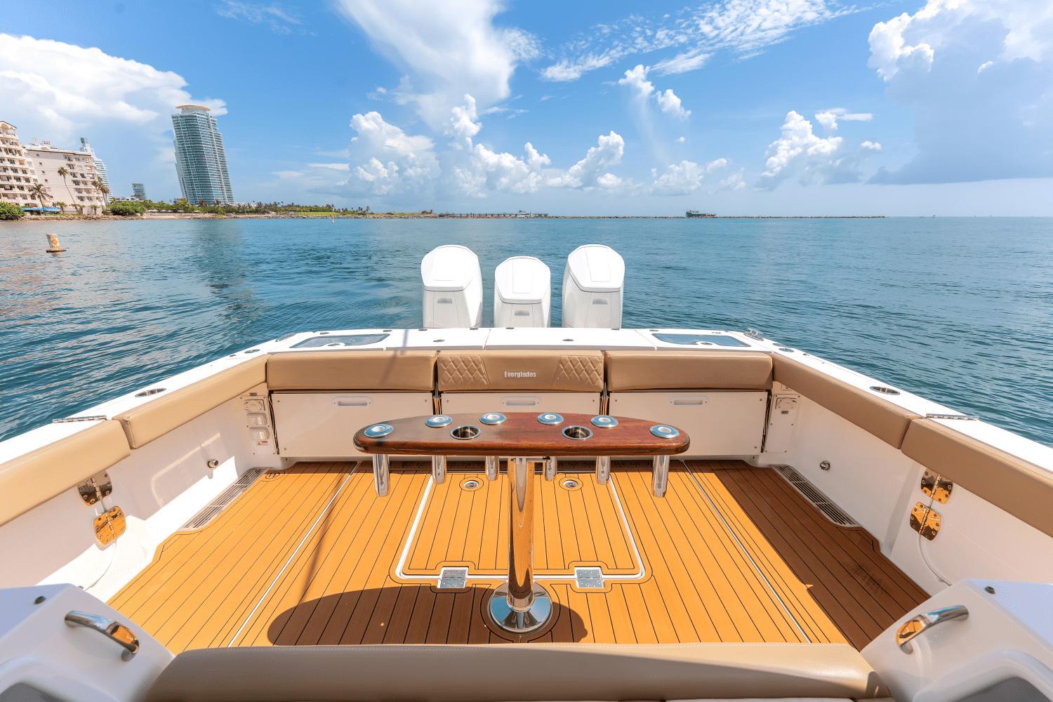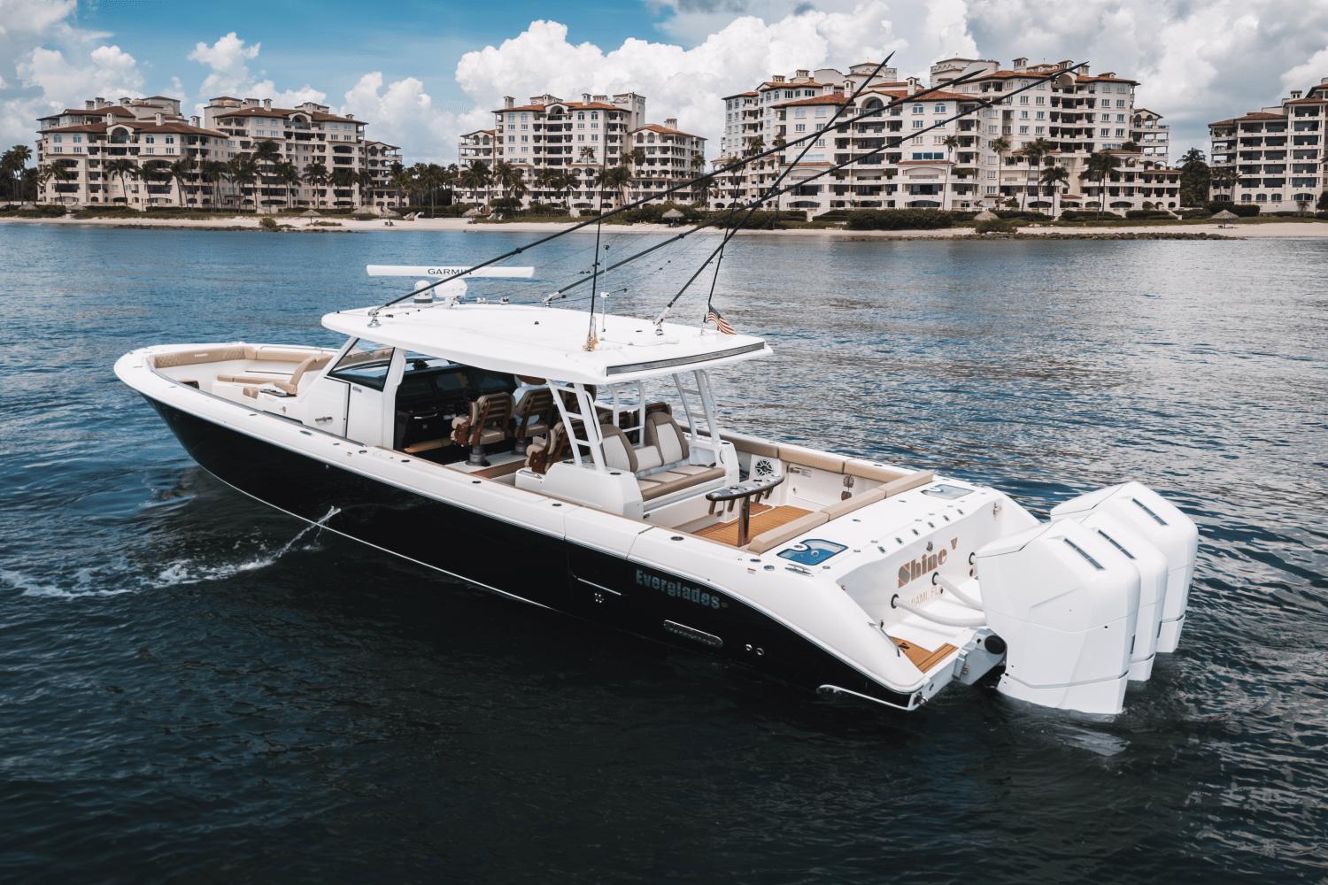 The Everglades 455cc has a deck plan to get you on top of prey quickly and fish hard. From strategically placed gear drawers and rod holders, the 455cc is an offshore fishing machine. Powered by Triple Mercury Verado Outboard engines with 600 HP each and a Seakeeper 6. Boasting a massive cockpit with fish-fighting space, livewells, fold down transom seats and a rocket launcher centered and all viewable by the aft mezzanine seating with AC vents and footrests. Fish boxes are located starboard and aft of the mezzanine. The helm has enough seating for everyone to enjoy the ride with two rows of Teak Release Marine ladder back helm seats. The helm is equipped with premium Garmin electronics and Mercury’s joystick piloting with Skyhook. The 455cc has all the necessities you need to stay over night with an air conditioned cabin that includes a galley, convertible berth, enclosed head and a 32” TV. The bow is the place to relax with a large three person lounger with armrests and two bow seats forward with Teak Release Marine ladder back cushion seats on both port and starboard sides.YouTube Walkthrough: https://youtu.be/oDseW6d72FE?si=mG0DWKW7jIDbVW2d
