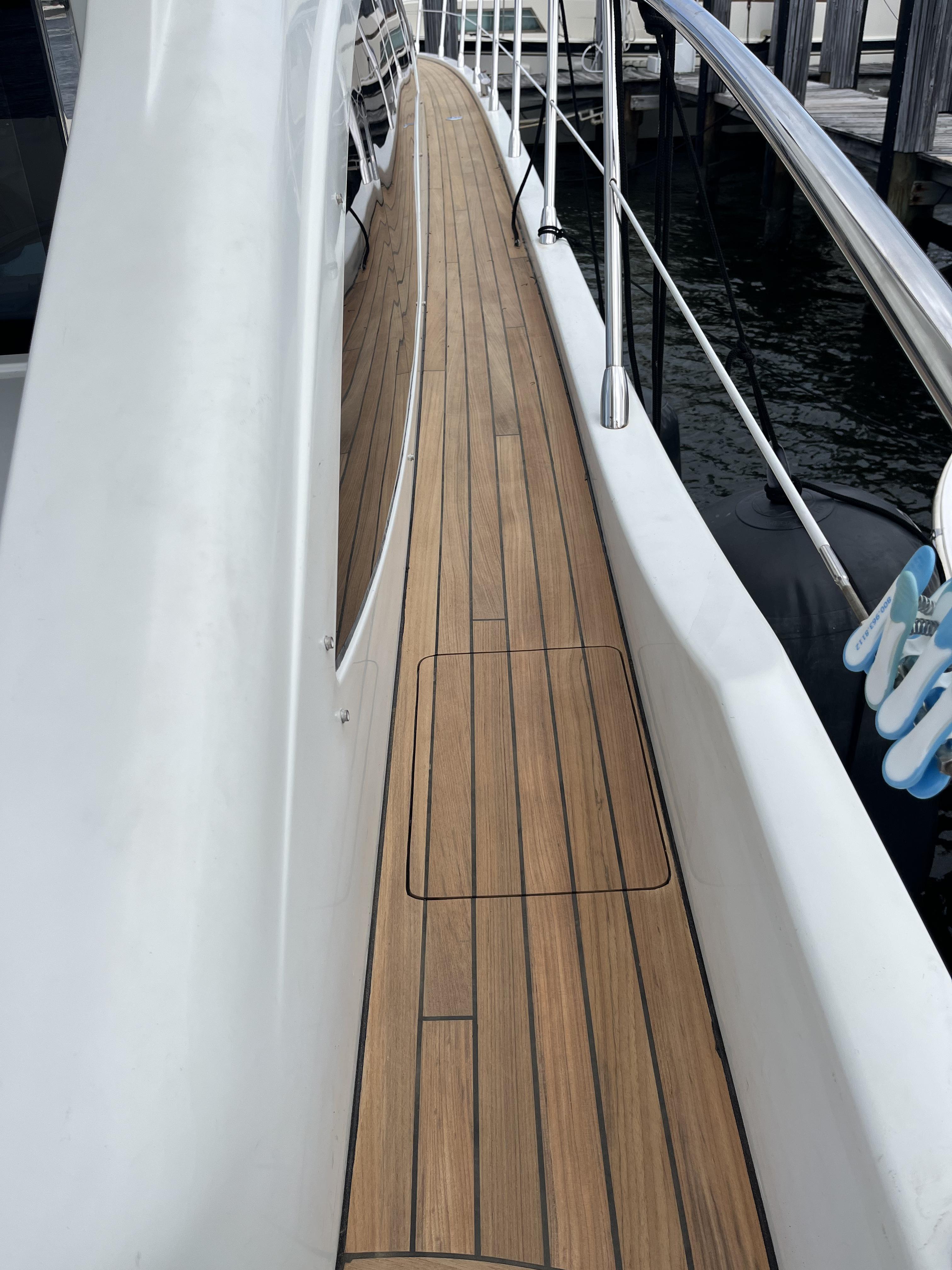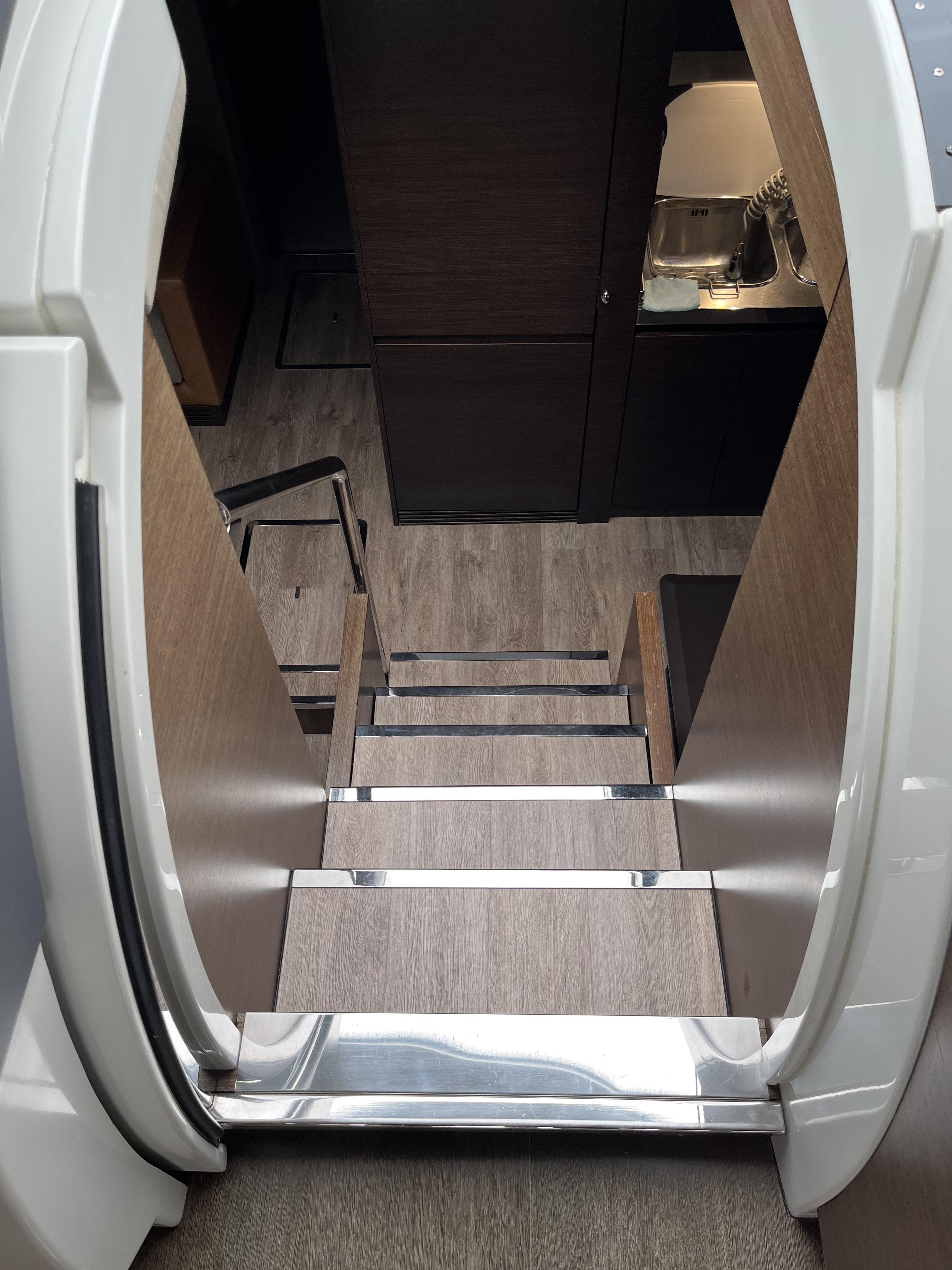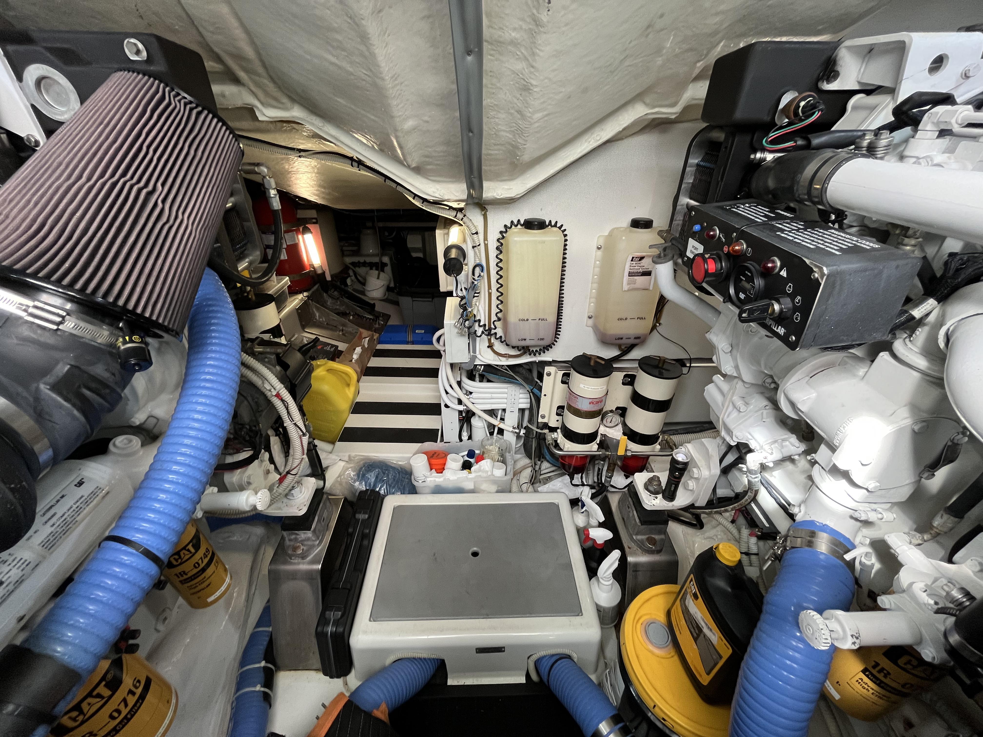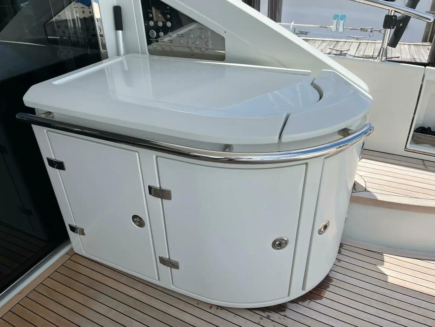 "Powered by twin CAT C18 engines and equipped with both bow and stern thrusters, docking is effortless with a YachtControllerRemote or intuitive joystick control, making it perfect for owner operation.