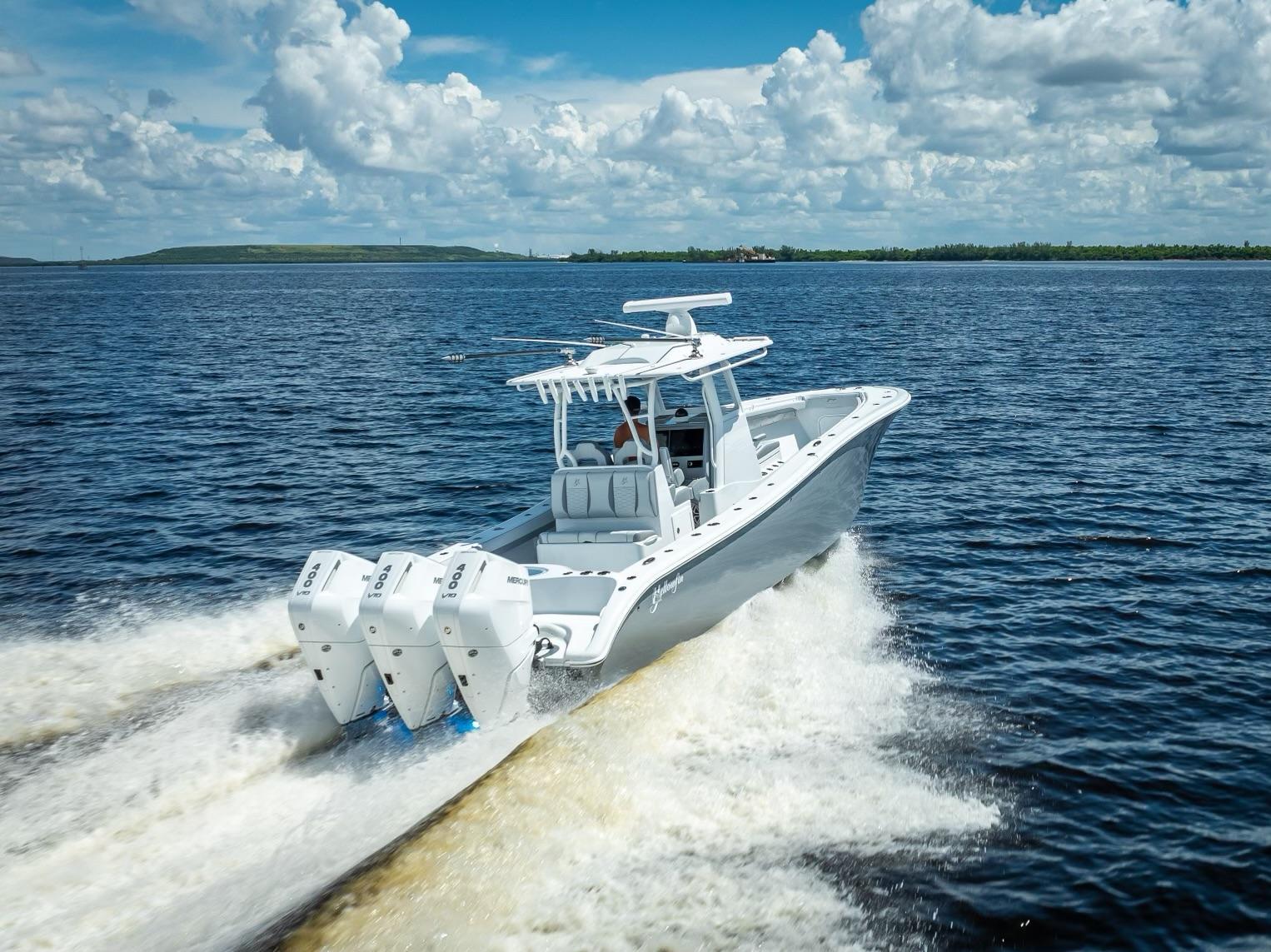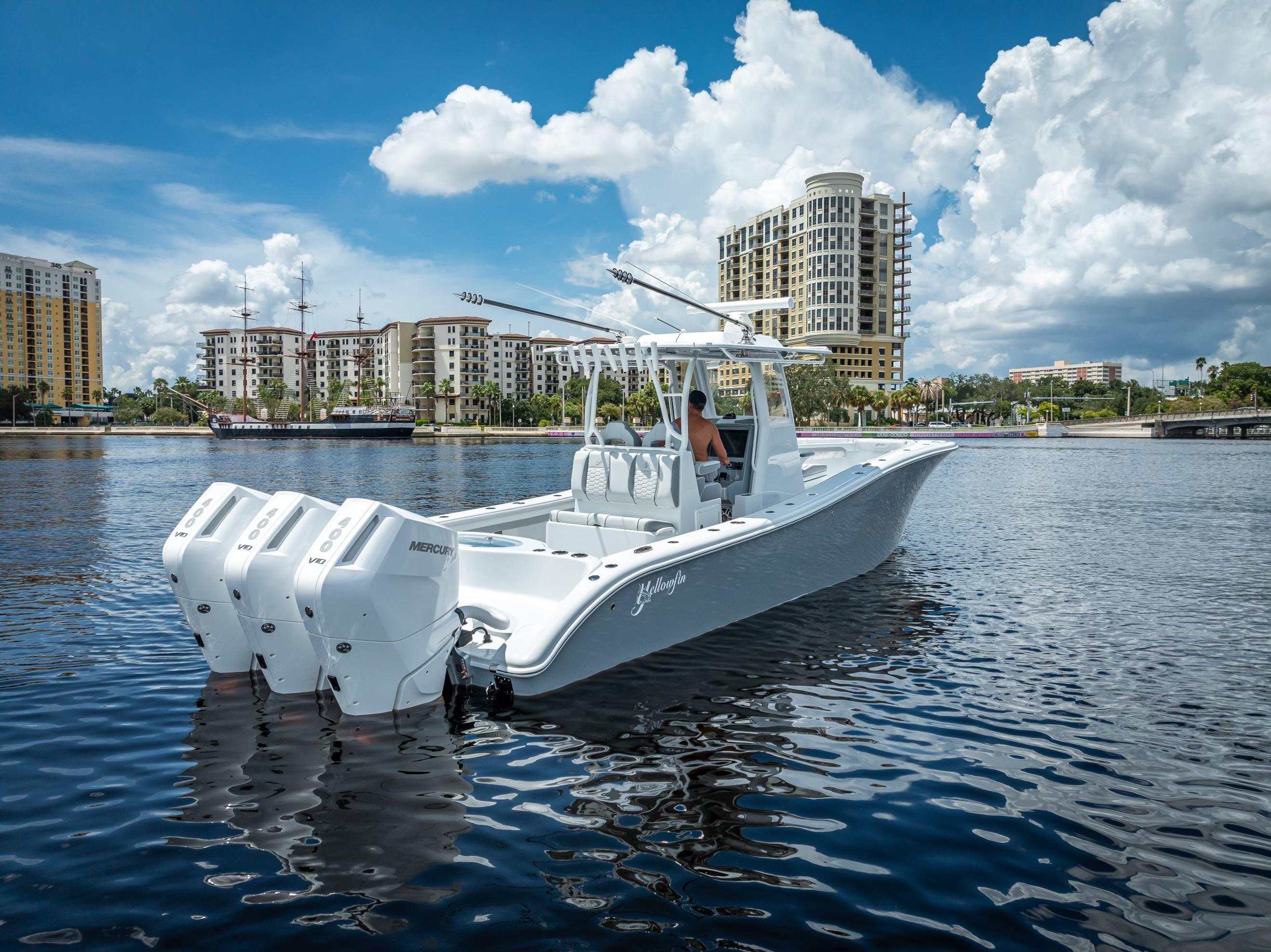 THE NEWEST 36' YELLOWFIN TO HIT THE MARKET!! THIS IS THE MOST LOADED 36' YF YOU WILL EVER FIND GUARANTEED!! AN ABSOLUTE BEAUTY!! 400 V10S!!- Triple 400 V10 Mercurys (White)- Haze Gray hull and hard top- (2) Garmin 8617 screens- Garmin open array radar- Garmin ram mic VHF- Mercury joystick with electric steering and autopilot - Massive JL Audio system 10 Speakers, 4 subwoofers, and 3 amplifiers with extra battery.- Fushion bluetooth stereo- Windlass- Bow Thruster- Custom Hexagon Stitch Upholstery (light gray and medium gray)- Multi-color hard top lights- Multi-color underwater lights- Multi-color under gunwale lights- Textured white Powder-coated hard top with rear support legs and extra rod holders- Electric plugs- Freshwater wash-down- Saltwater wash down - Forward Lounger Seat - Gemlux outrigger bases- Gemlux Carbon fiber outriggers- Hardtop running lights- Yellowfin helm seating- 2 live wells with backup pump- Rear-facing tackle box- Tackle draws- Battery charger- Boarding ladder - Additional rod holders and cup rod holders- Ameratrail trailer- Polycarbonate enclosure - Black edison steering wheel - Head inside the console - Switch pannelTOO MANY OPTIONS TO LIST!!WE CAN ASSIST WITH FINANCING AND WILL CONSIDER ALL TRADES!!