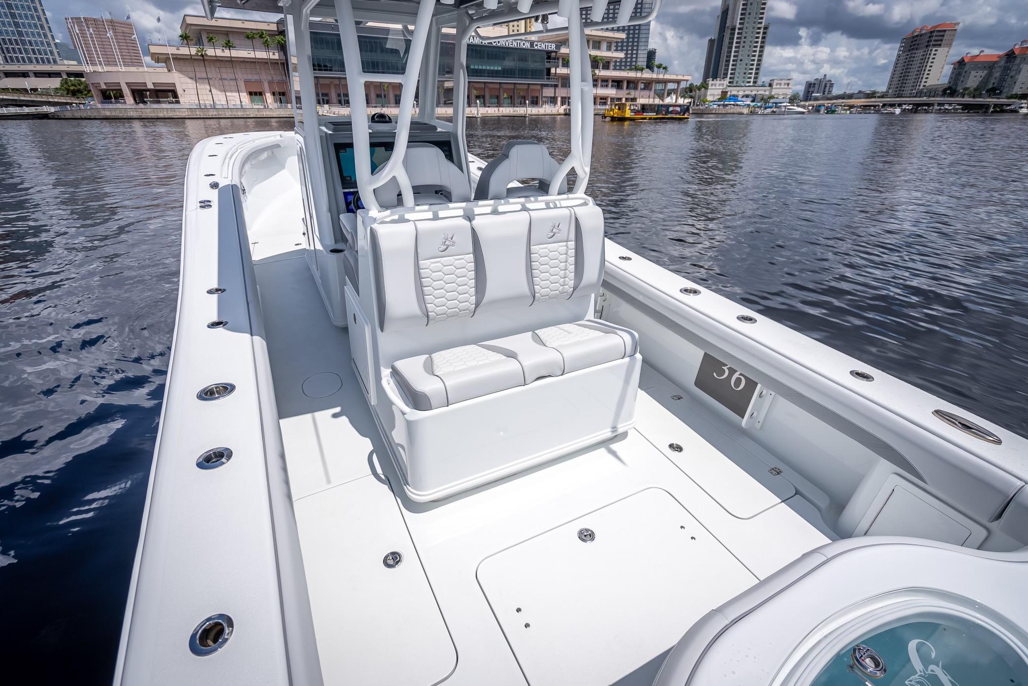 The 36 is frequently found in the winner’s circle across the country to this day. The combination of speed, an unmatched dry ride and legendary rugged construction make the 36 Yellowfin the boat to beat no matter where you are fishing. The 36 can be powered by twin or triple outboards and either option will yield speeds that no other boat in its class can match. Numerous console, leaning post and top options, let you customize the 36 to perfectly complement the way you fish. Standard Equipment