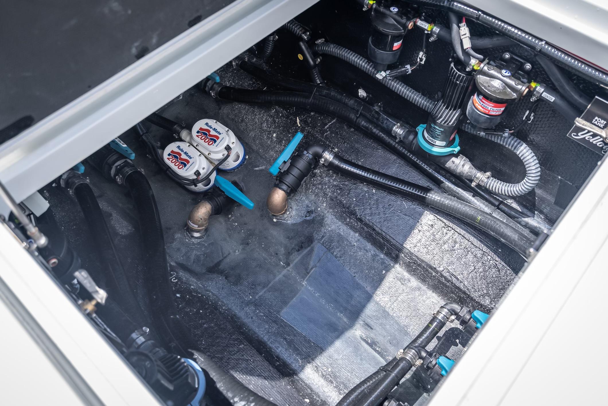 Gemlux flush Mount Cleats SS Pop Up Bow Light Under Gunwale Courtesy Lights Hydraulic Steering Console and Combing Cushions Rule Pumps 1100 GPH Baitwell 1200 GPH Bilge SS D-Rings Gemlux 2'' Gas Fills 4 Gunwale Rod Holders High Performance Trim Tabs Lighted Switch Panel Gemlux Ball Valves T-top with 4 Rod Holders Saltwater Wash Down 50 Gallon Livewell Aft 9' Rod Boxes 530 Qt Macerated Fish Box Your Choice of Leaning Post Tinned Copper Wiring Deutsch Connectors O-Ring Gutter System Gemlux SS Thru-Hull Fittings Default