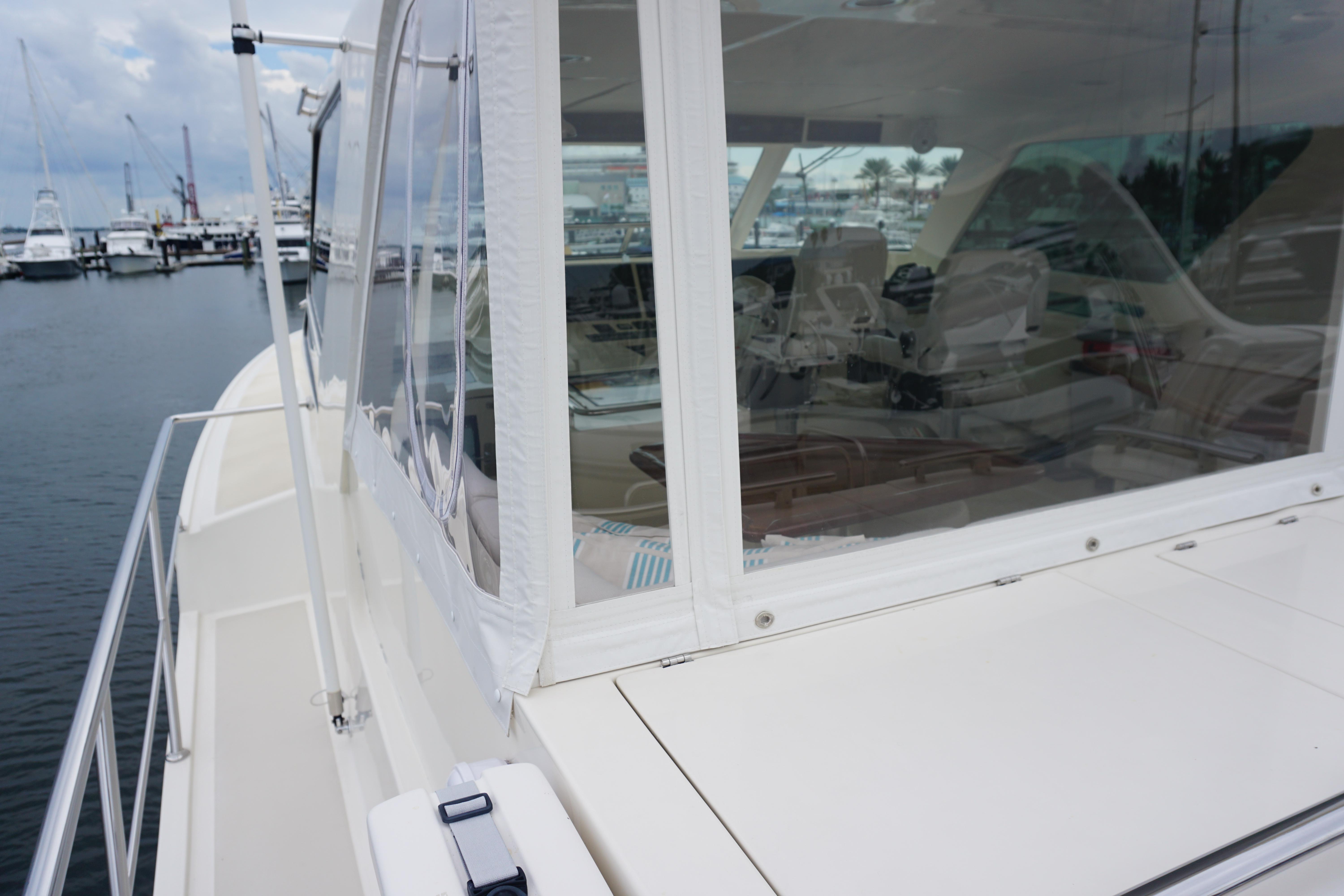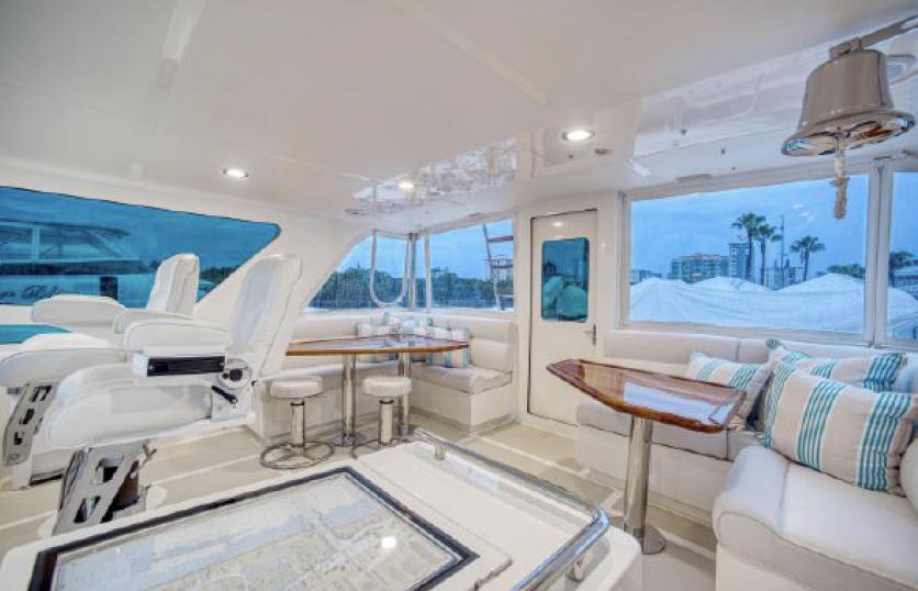 Semi Enclosed FlybridgeCustom designed by Marlow with glass forward for better visibility in inclement weather and comfortable Stidd Helm chairs that are fully adjustable.