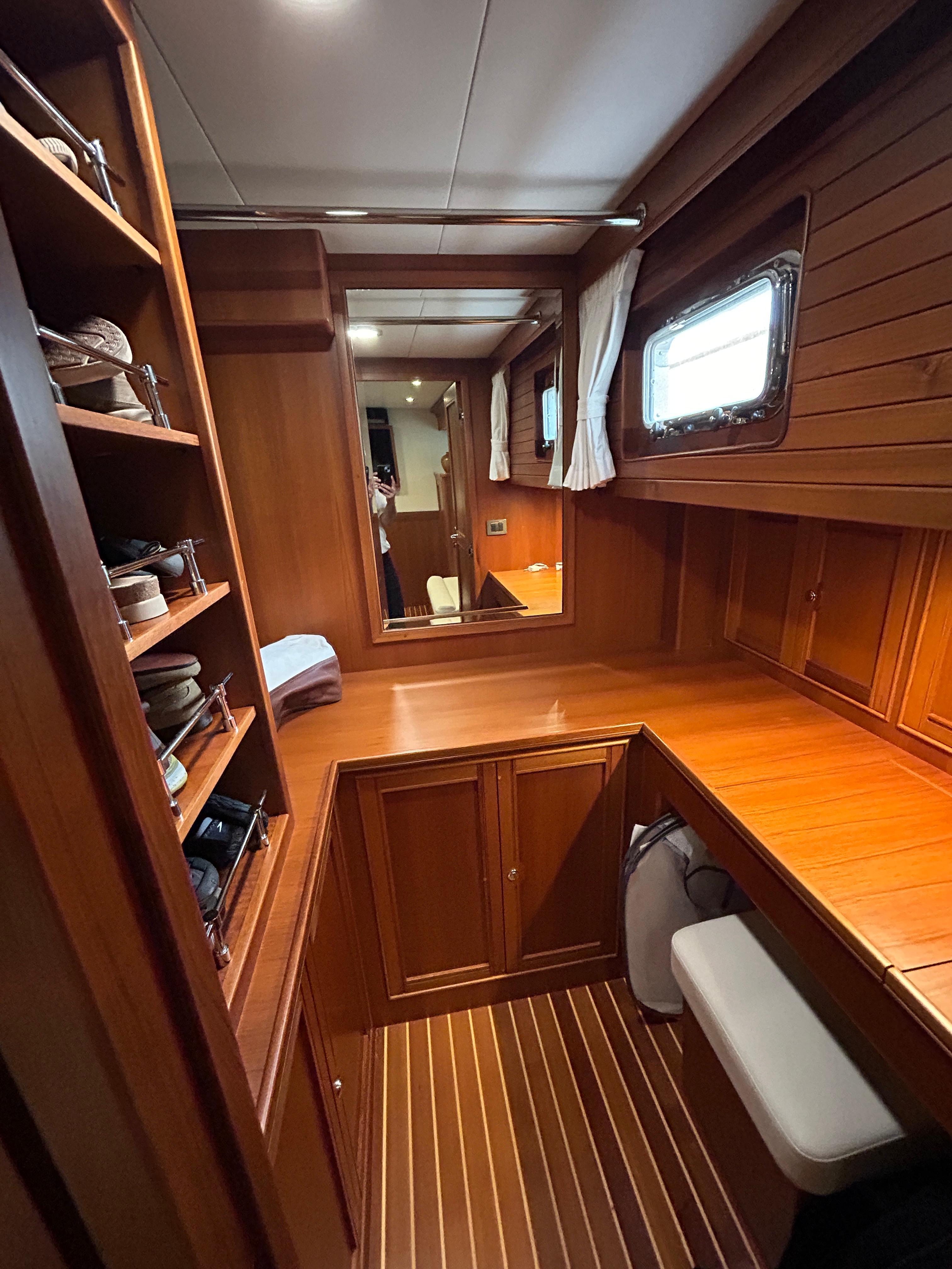 In addition to the walk-in closet she offers 4 more hanging lockers for ample storage, 2 on port and 2 on Starboard with multiple storage drawers under the bed. All closets are cedar lined.