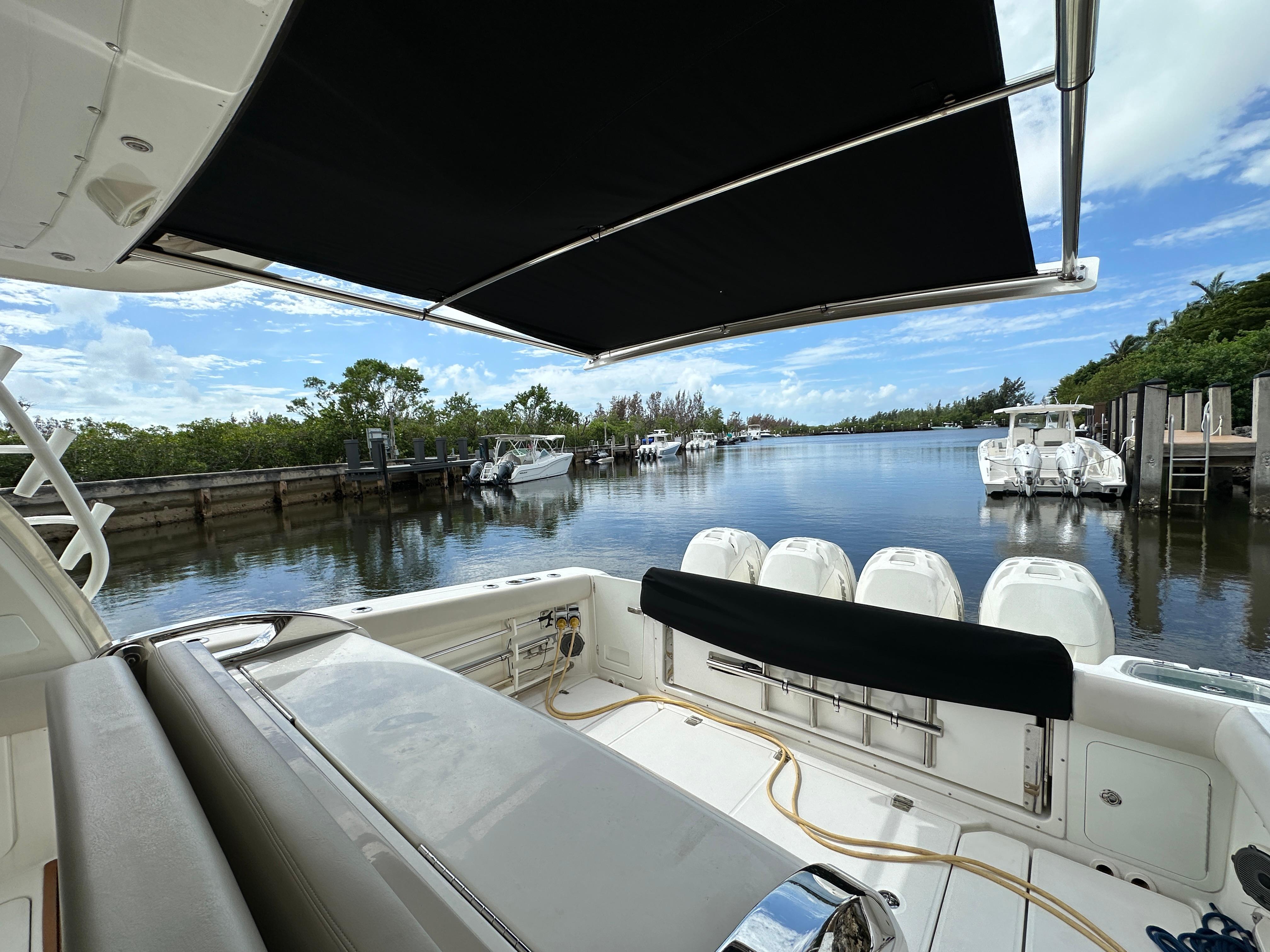 - Cockpit sunshade deploys electronically and features black Sunbrella® canvas.