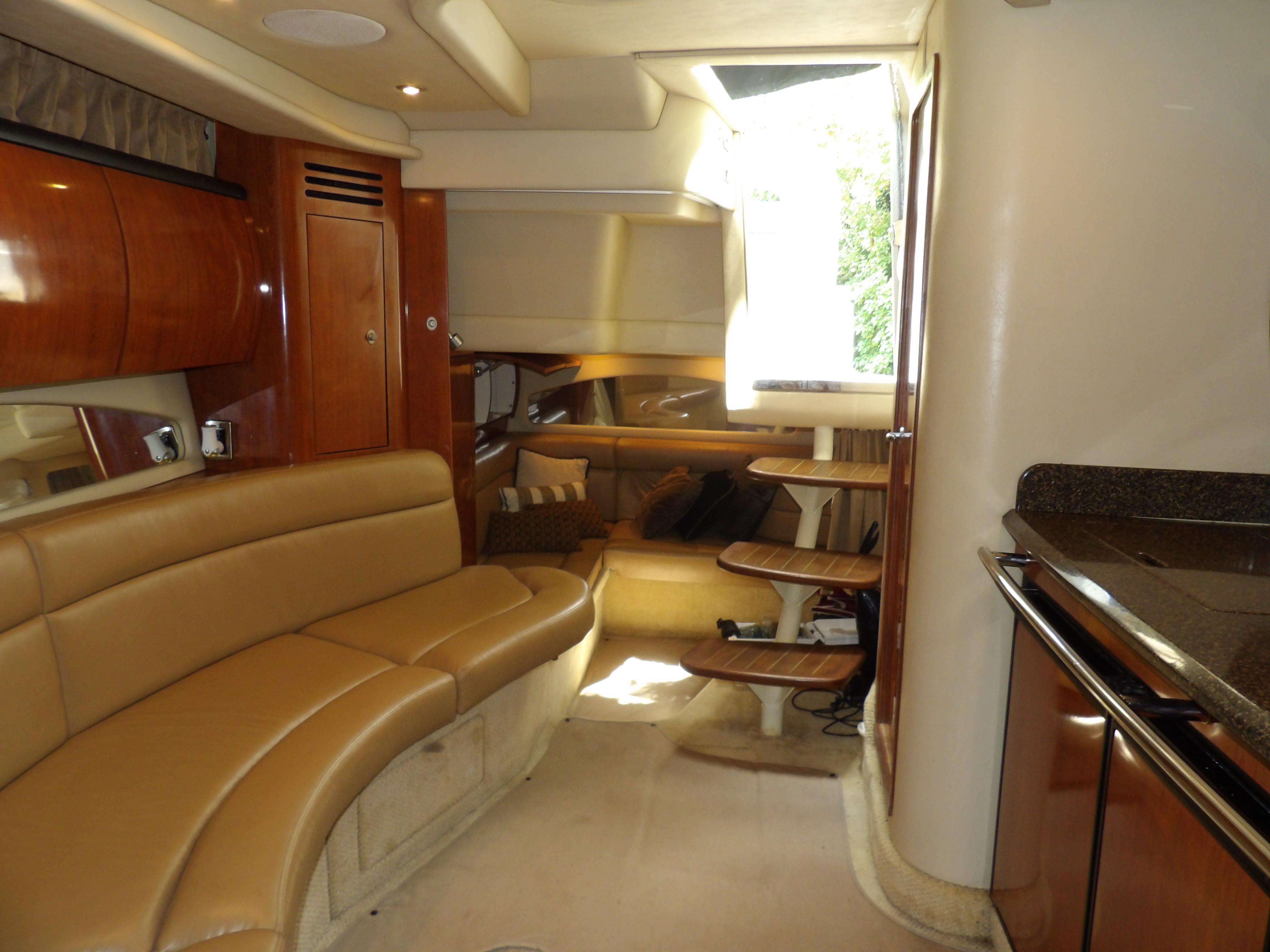 For those who have always dreamed of owning a Sea Ray Sport Yacht, the dream is now within reach. The 360 Sundancer offers plenty of seating for your friends. Her cabin sleeps six. She has a full galley, a flat screen LCD TV w/DVD in the cabin, TV/DVD combo in the forward stateroom, a wet bar and a quiet step-down conversation area. And her twin VD-8.1 S Horizon MerCruiser gasoline V-drives give you the power to go as far as your dream will take you.
