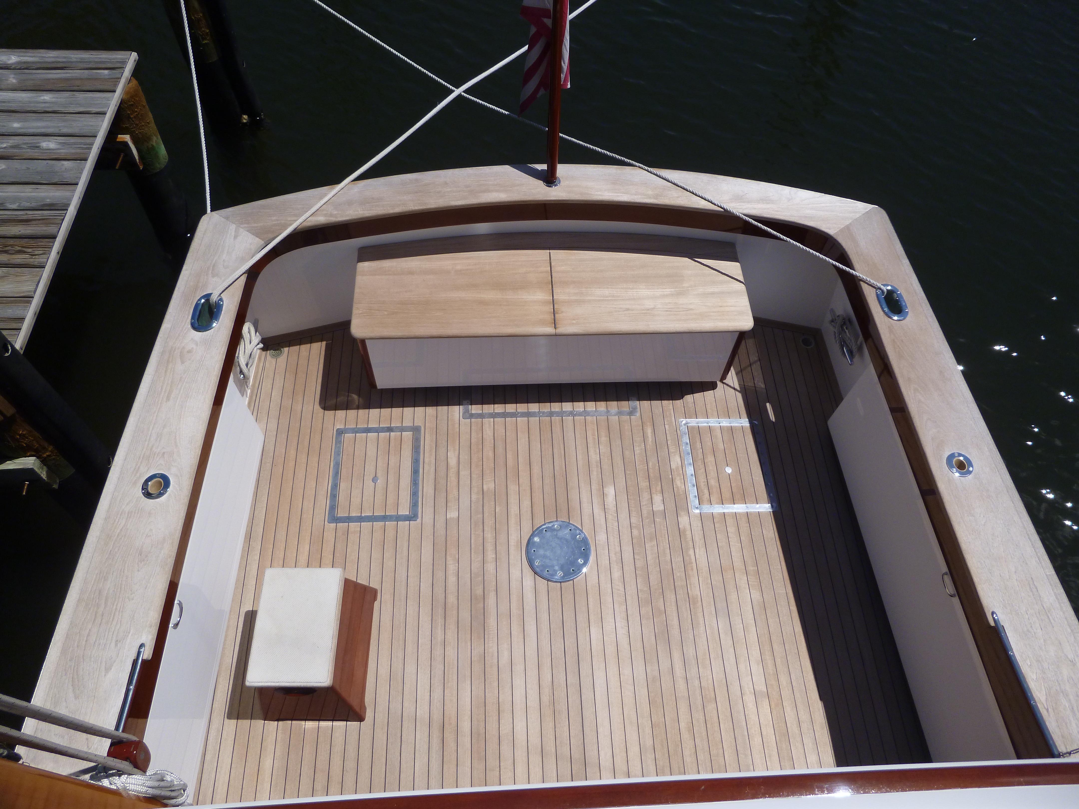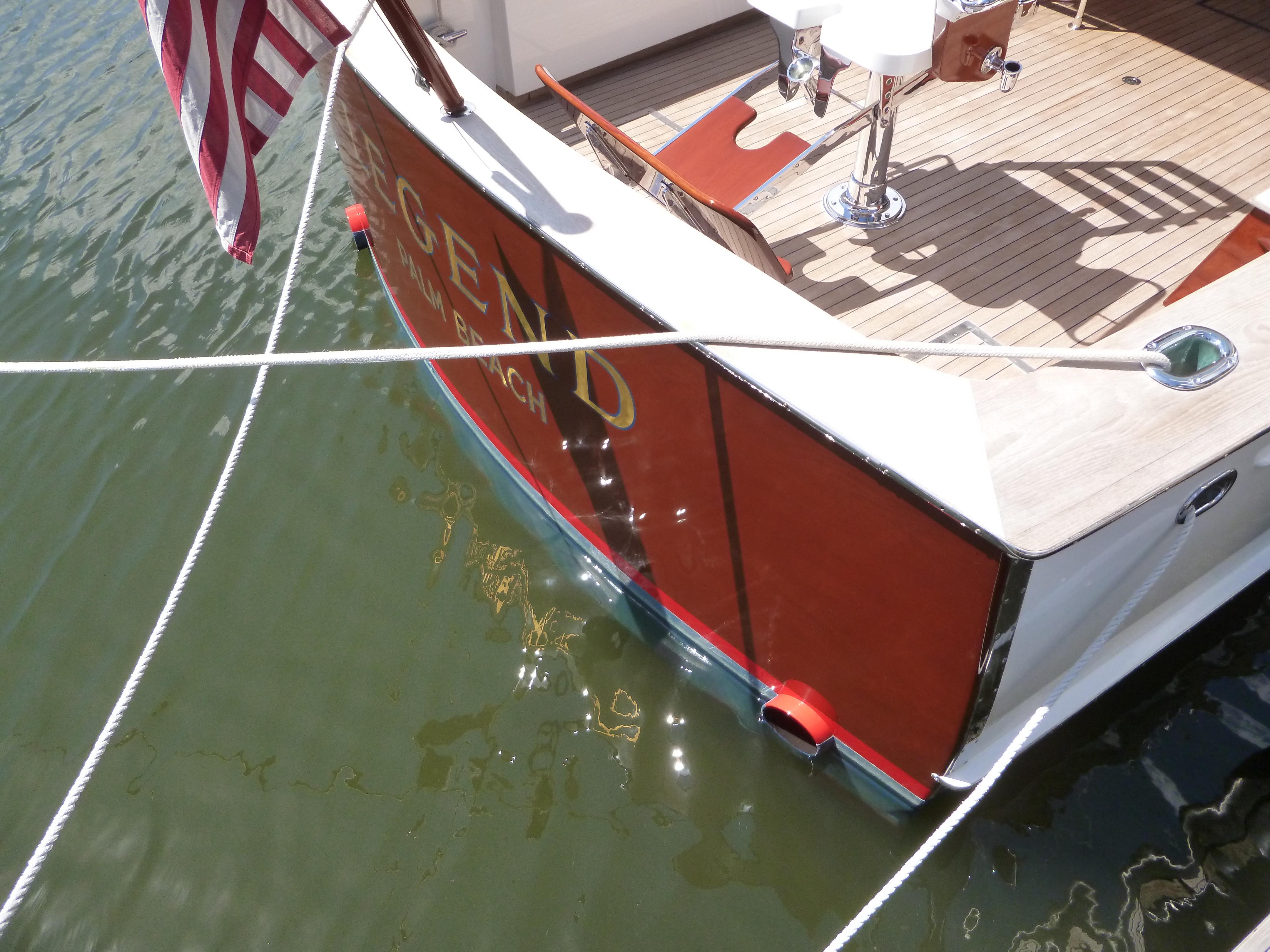 This vessel underwent a keel up restoration in 1989/1990 by Emil and Michael Rybovich during which time the exterior of the hull was sheathed in fiberglass and resin.