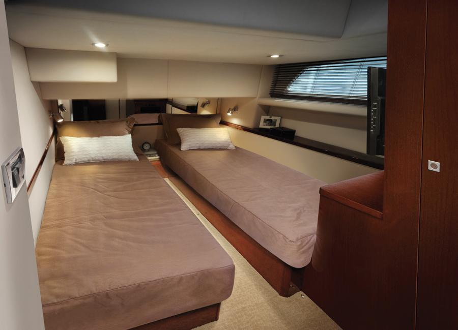 Experience life at the top aboard our 450 Sedan Bridge, a vessel of uncompromising design and purpose. SmartCraft diagnostic instruments and a joystick control for the standard Zeus pod drives anchor the high-visibility helm, while two exclusive sleeping quarters and an extra-wide salon with panoramic windows make living easy, impressive and rewarding.Key Features32,000 BTU zone-controlled air conditioning system.Custom Sea Ray® thru-bolted stainless steel cleatsKohler® 10.0 kW generator.Standard innerspring mattress in master stateroom.Solid surface breakfast bar.Standard 32" Flatscreen LCD HDTV with remote DVD player in salonStandard Twin Cummins® QSB 480 Diesel Zeus Drives w/Joystick ControlSirius® satellite receiver with antenna (N/A outside N. America)