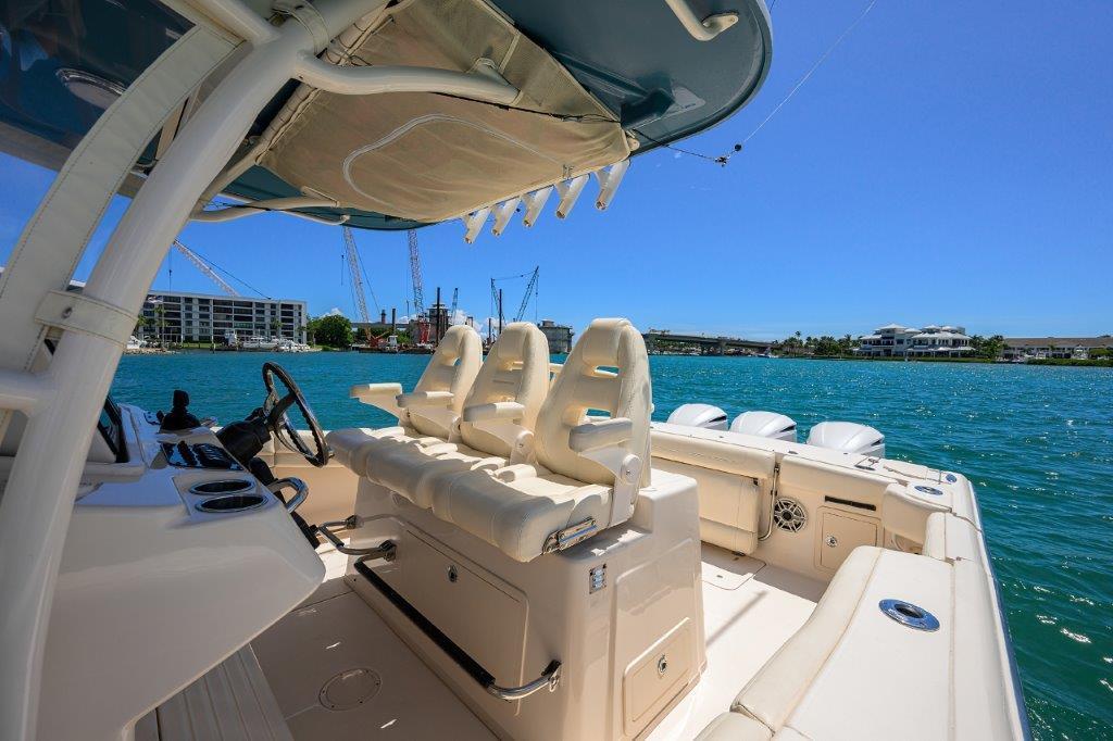 VESSEL DESCRIPTION This 2020 Grady White 336 Canyon will make the perfect boat for all of your cruising or fishing needs. With a Garmin suite of electronics and Reliable Yamaha 300 power triple engines, it will make the jump up to a larger center console feel effortless. This boat has been lift kept and maintained by professionals to preserve the new boat feel and shine. Whether you are into fishing off the coast of South Floria or looking for a cruise to the sandbar with the family, this boat will give you all you need to make sure everyone enjoys the water. Don’t miss out on this great opportunity to own this great ride. Vessel Highlights Panda diesel generator 5kwTriple Yamaha 300 4 StrokeGarmin electronics with radarJoystick controlFusion audio system2 Livewells in leaning postLarge aft cooler with chill platesAutopilotAir conditioned console cabin with headAir conditioned helmLift keptPainted hull Seaport Blue(4) Underwater lights(5) Batteries