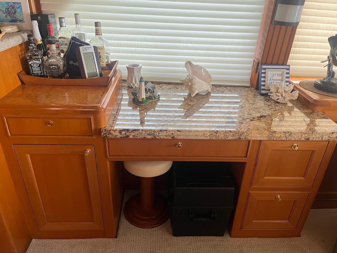 - Granite desk, starboard with computer, file drawer and storage