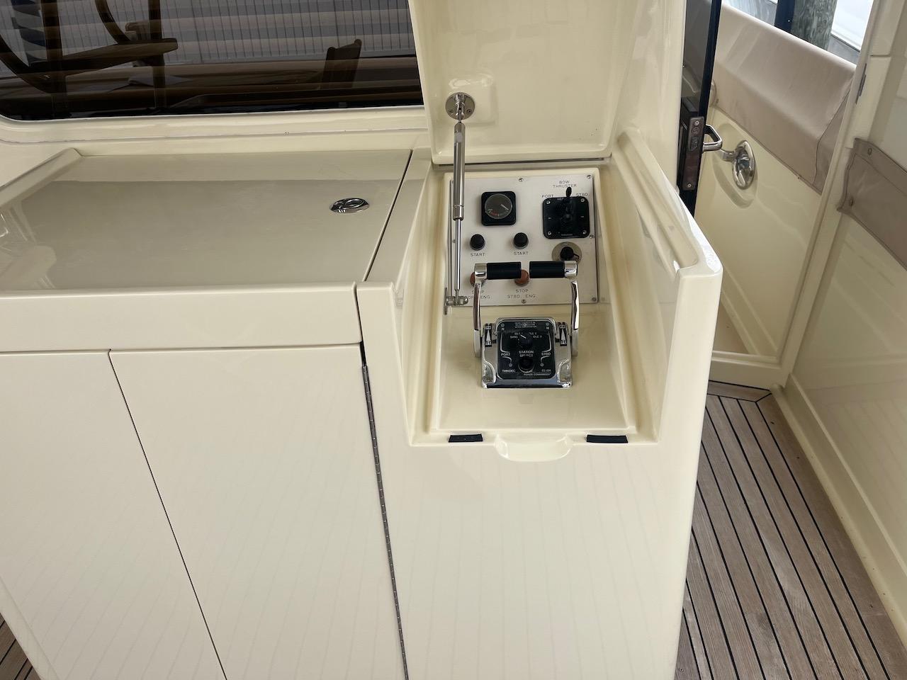 - Aft Deck engine and thruster controls, rudder angle indicator, and engine start/stop switches