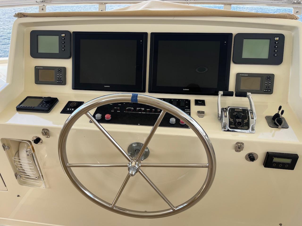 - Helm station with complete engine instrumentation, function alarms, and rudder angle indicator