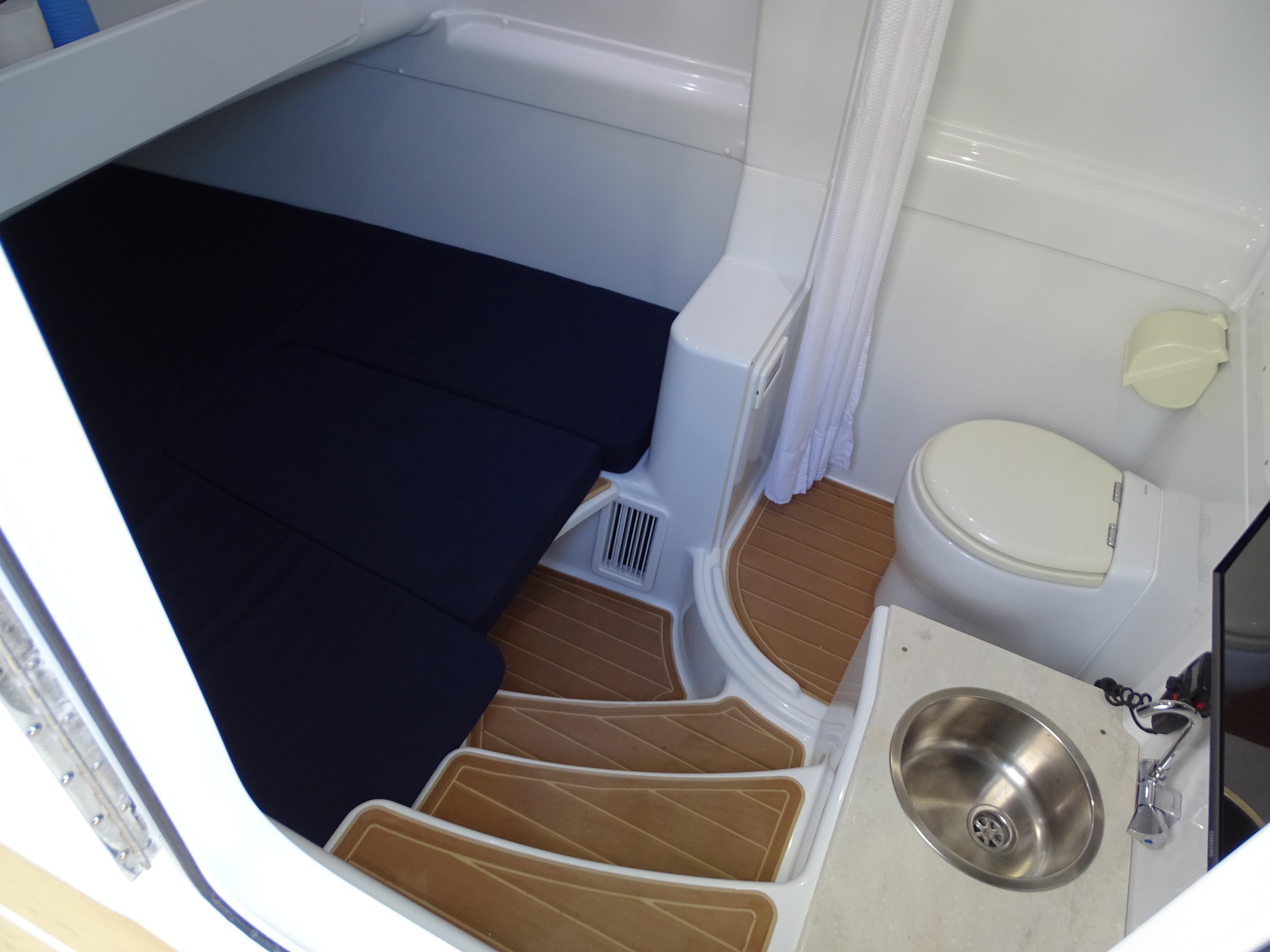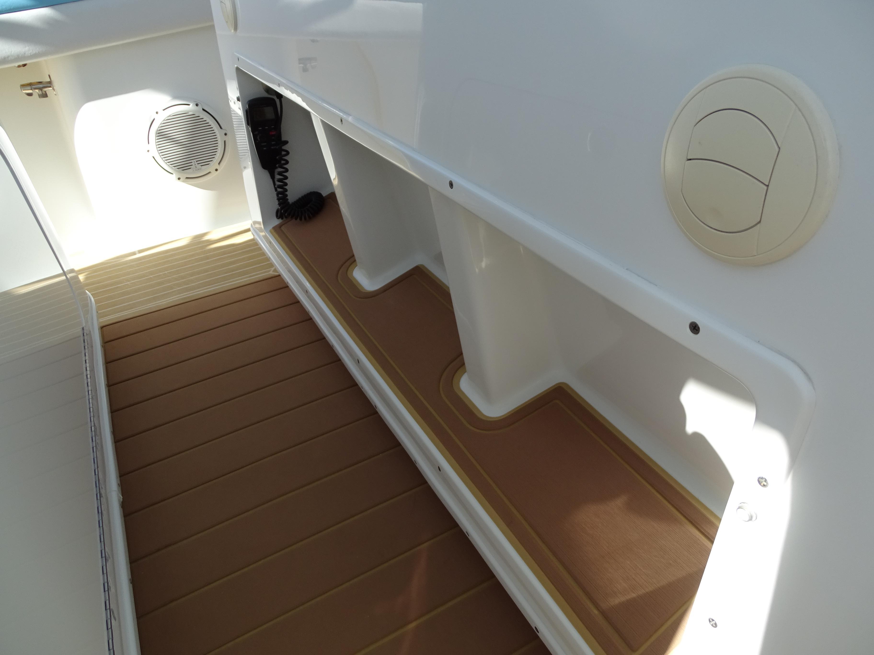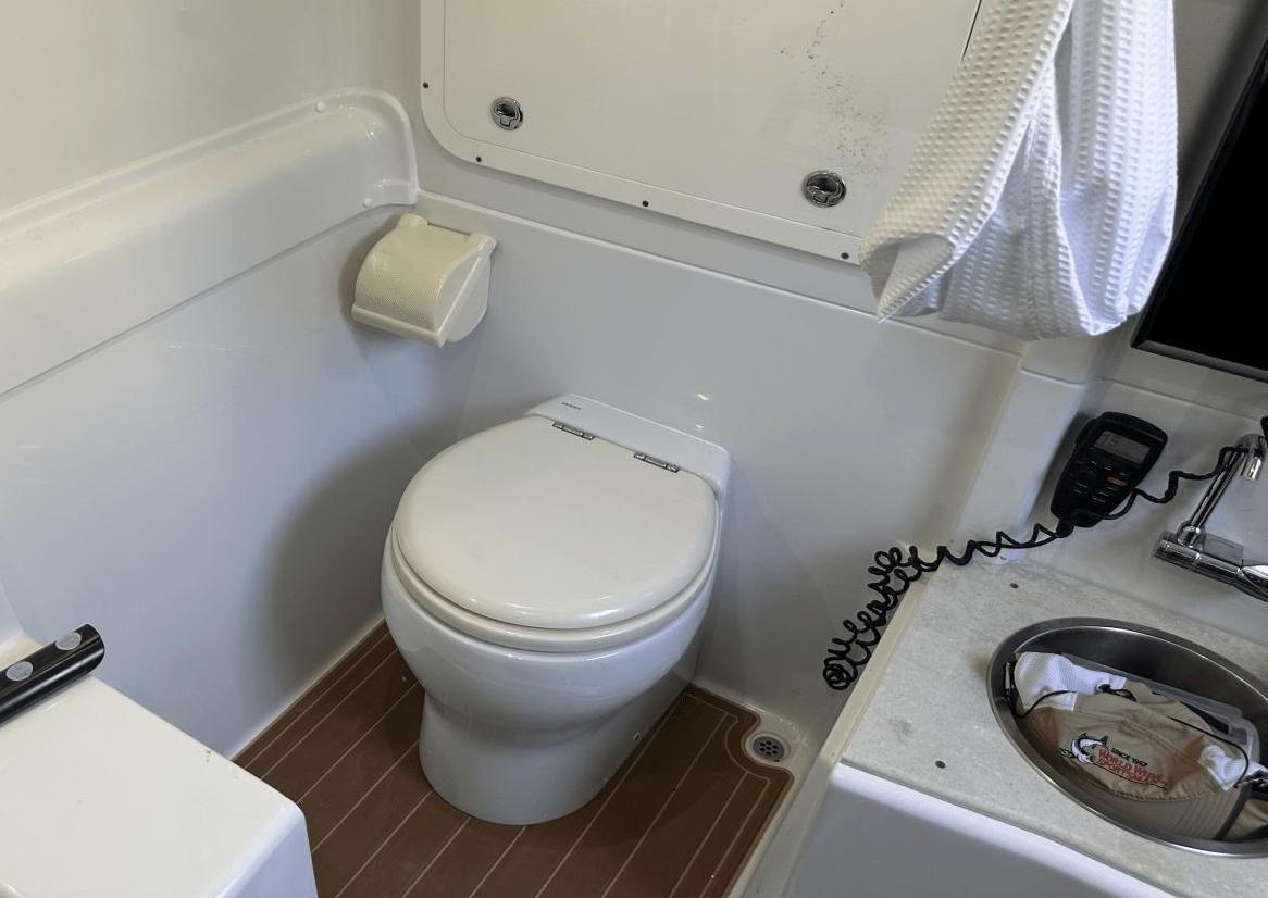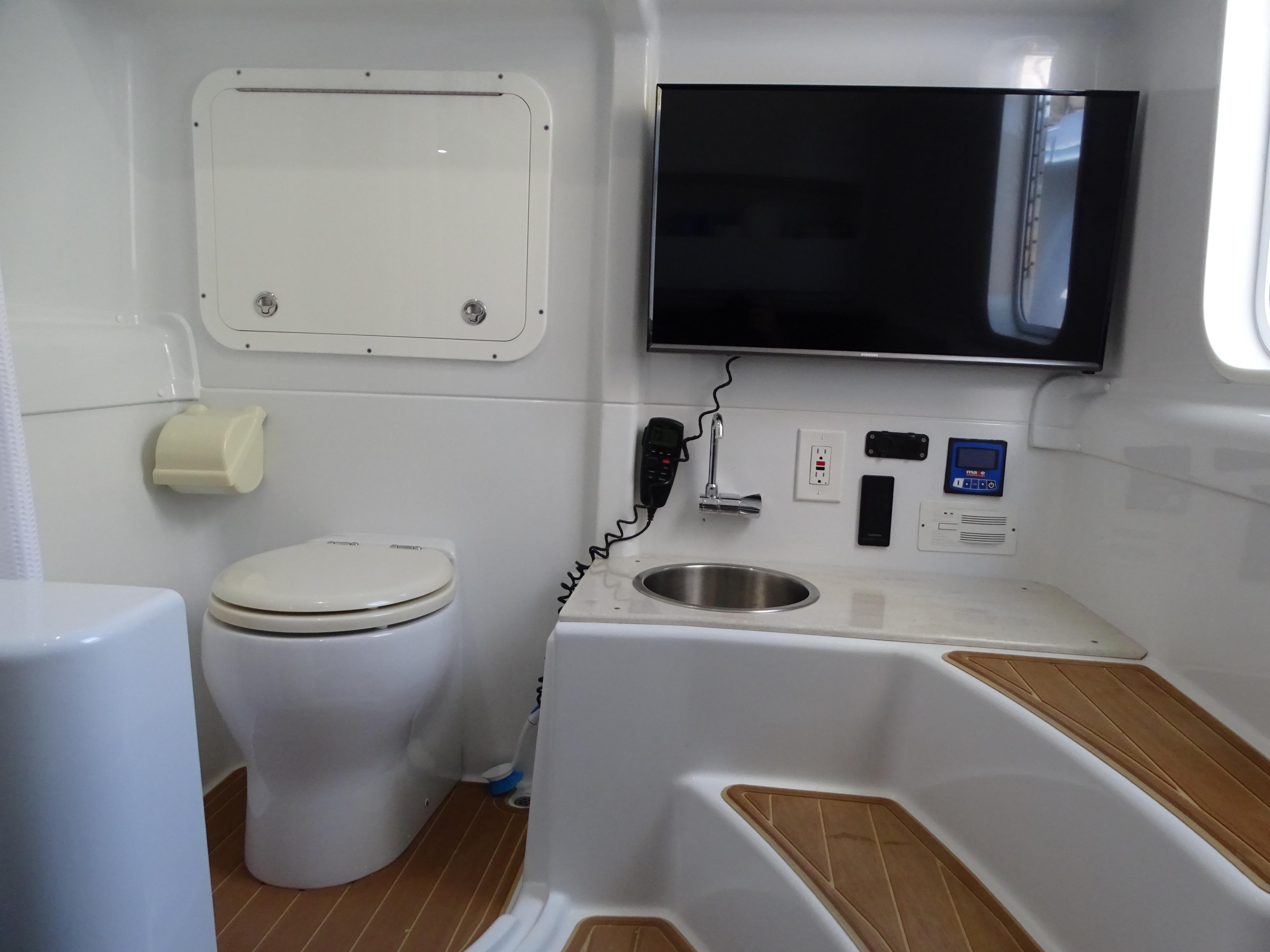 Standard EquipmentGemlux Flush Mount Cleats SS Pop Up Bow Light Under Gunwale Courtesy Lights Hydraulic Power Steering Console and Combing Cushions Rule 1100 GPH Baitwell Pumps 2 Rule 2000 Bilge Pumps SS D-Rings Gemlux 2'' Gas Fills 4 Gemlux Rod Holders High Performance K Plane Trim Tabs Lighted Digital Fly by Wire Switch Panel Tinned Copper Wiring Deutsch Connectors O-ring Gutter System Gemlux SS Thru-Hull Fittings Gemlux Ball Valves T-top with 7 Rod Holders Saltwater Wash Down 80 Gallon Livewell Aft 530 Qt macerated Fish Box 82 Gallons Fresh Water Toilet and Shower 2 6'6" sleeping bunks