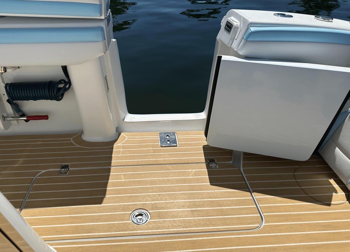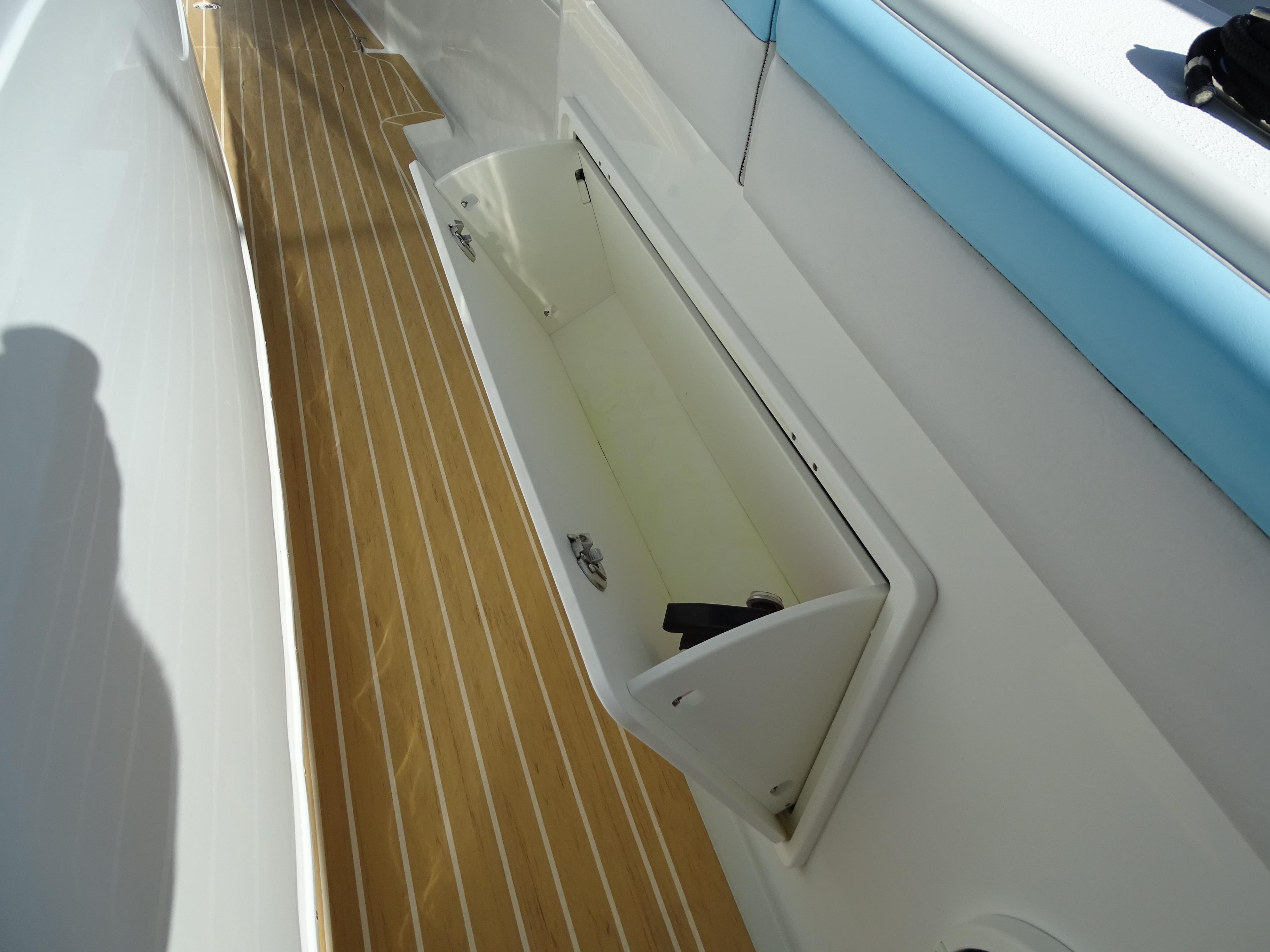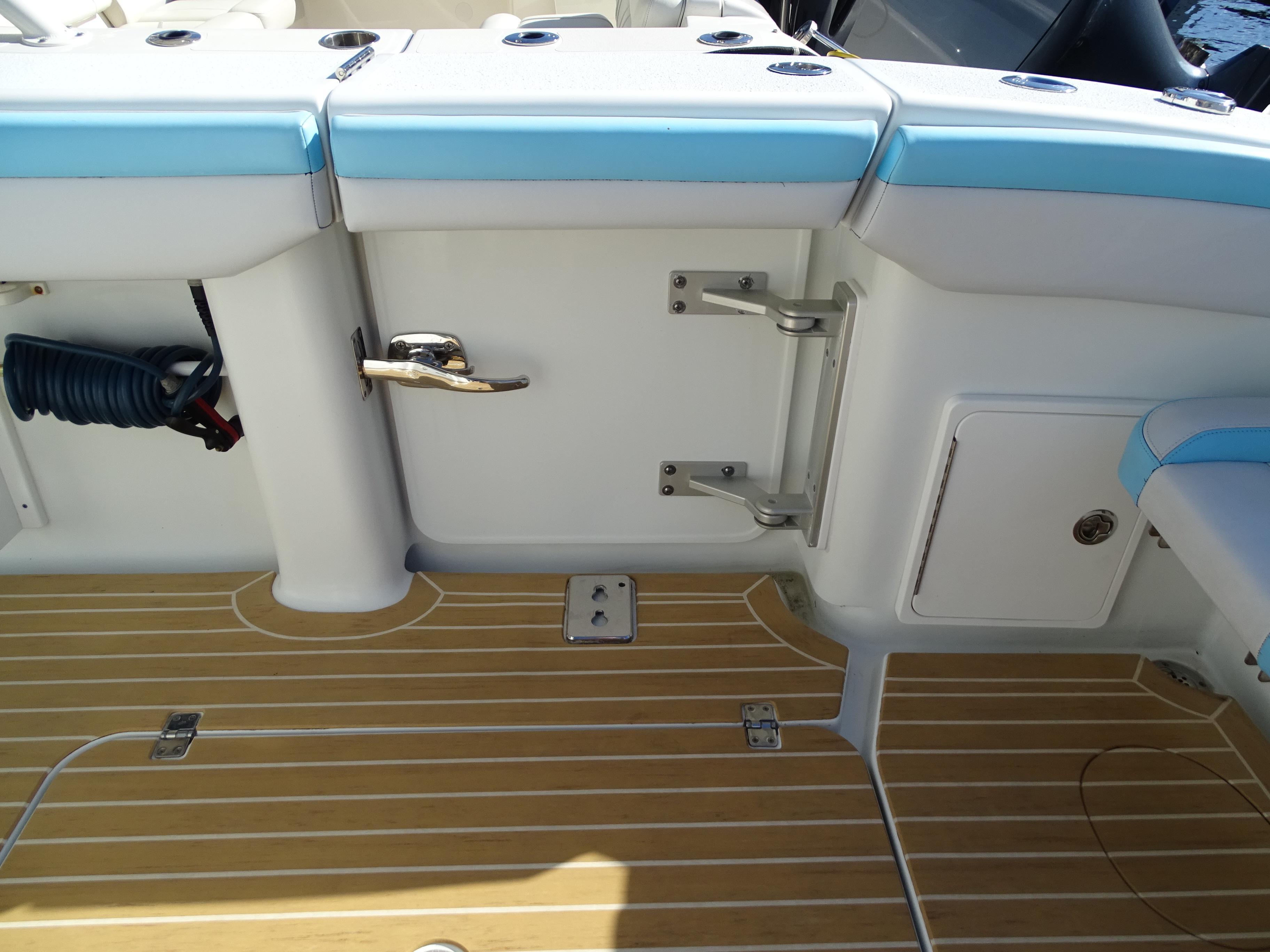 Standard EquipmentGemlux Flush Mount Cleats SS Pop Up Bow Light Under Gunwale Courtesy Lights Hydraulic Power Steering Console and Combing Cushions Rule 1100 GPH Baitwell Pumps 2 Rule 2000 Bilge Pumps SS D-Rings Gemlux 2'' Gas Fills 4 Gemlux Rod Holders High Performance K Plane Trim Tabs Lighted Digital Fly by Wire Switch Panel Tinned Copper Wiring Deutsch Connectors O-ring Gutter System Gemlux SS Thru-Hull Fittings Gemlux Ball Valves T-top with 7 Rod Holders Saltwater Wash Down 80 Gallon Livewell Aft 530 Qt macerated Fish Box 82 Gallons Fresh Water Toilet and Shower 2 6'6" sleeping bunks