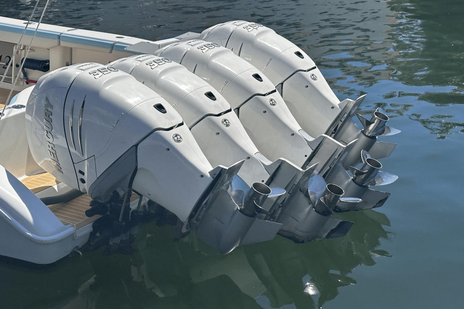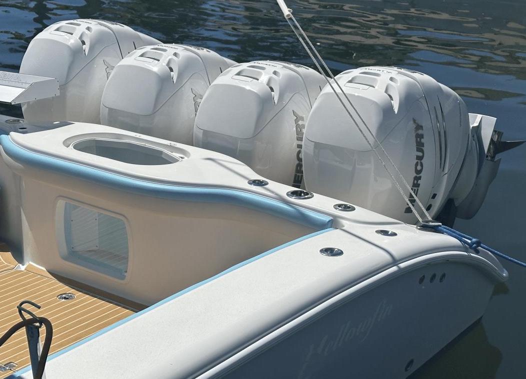 SELLER'S NEW BOAT ARRIVING SOON.BRING OFFERS!300 Hour Service Was Just Done This beautiful 2018 42 Yellowfin is loaded with every option you can add, dive door, generator, and more. Anyone that knows Yellowfin knows its offshore performance, smooth and dry ride. This fine boat is owned, operated, and maintained by a knowledgeable family and used for recreational fishing and fun. She has Etheral Blue Hull and full PlasDECK 2023. Powered by Quad 350R Mercury Verados she cruises effortlessly in the 40s. Engines services up to date and hull sides polished. A complete Garmin package makes navigation a breeze. The boat is equipped with forward seating w/ electric backrest, anchor windlass, Mase generator, air conditioning, a fully enclosed head and cabin, tons of rod holder and cup holders.Quad 350 Mercury Verados (Cold Fusion White) fully serviced.(2) 24’ Garmin units at the helmGarmin Open ArrayFLIR Night vision SeaSafe Life RaftSide dive doorForward seating w/ electric backrests.Plas Dek flooringEtheral Blue hullAnchor windlass w/ through hull bow shoot.Bow thrusterUnder water lightsChill plates consoleSea chest with three pumps.Transom livewell / Aft seat livewellCarbon fiber outriggersEnclosed head and cabin with air conditioning.Mase Diesel generator