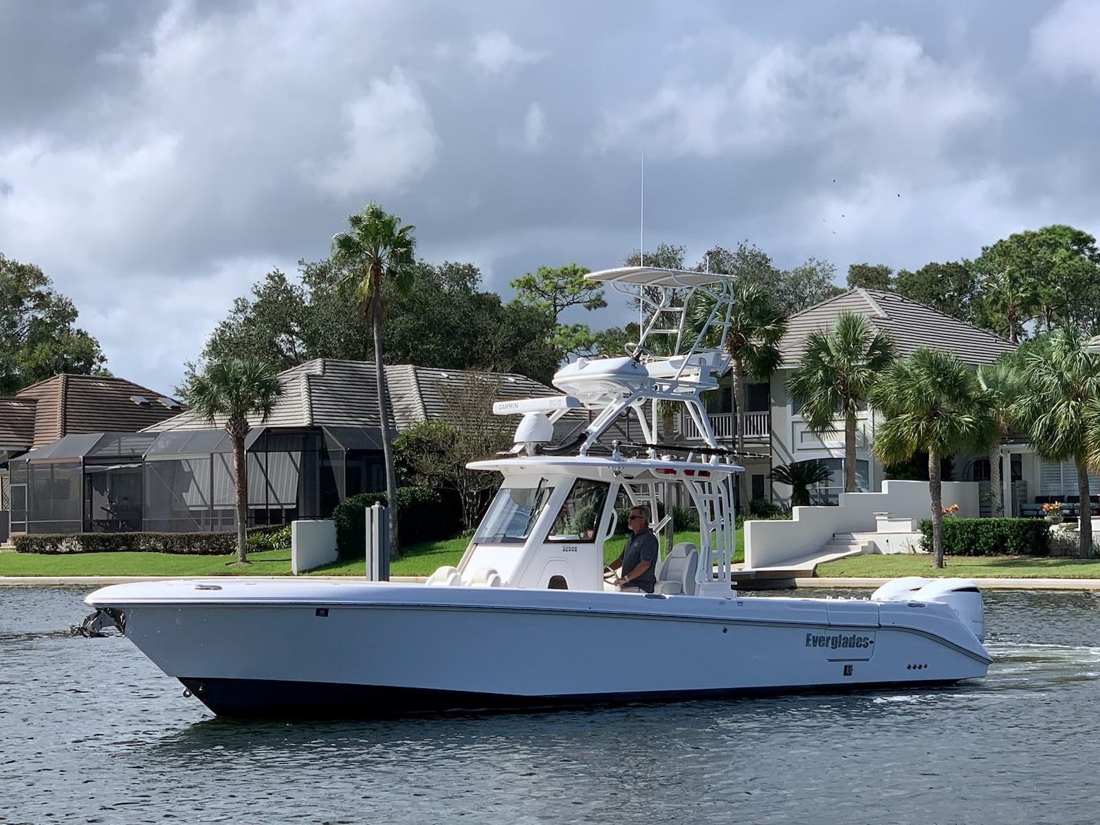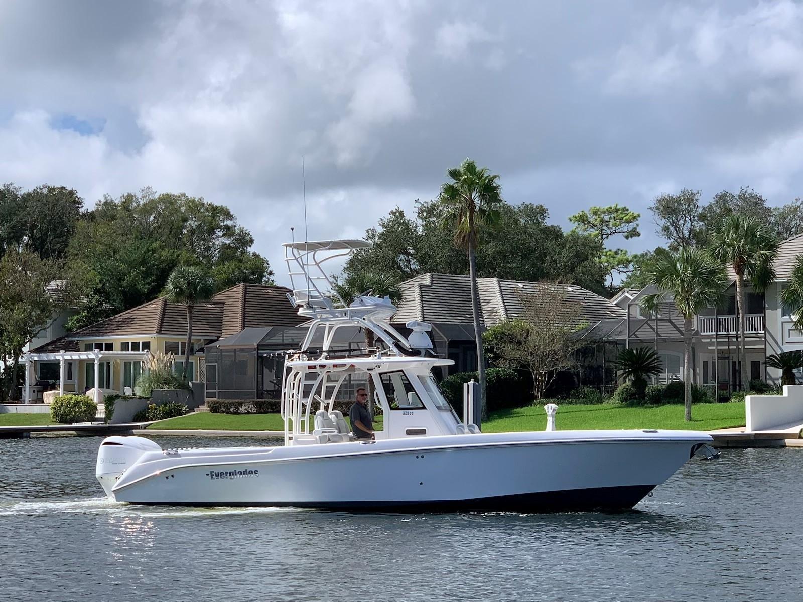 "Dauntless" is one of the very few well equipped 325 Everglades with a full fold down tower and full controls and electronics.Powered with twin 300HP Yamaha 4 strokes Dauntless is kept in a lock accessed, fresh water lagoon community.She is loaded up with all the most updated equipment including a newly replaced Garmin 8600 Plotter Screens and new chirp Transducer. The boat just came out of the boat yard this week (5/2025) where it had brand new bottom paint job, and the Engines had their annual Services done. Key Features and UpgradesTower with full controls Bow thrusterNew buggy top- 2022New upholstery- 2022New Garmin 8600's- May 2023Chirp Transducer- May 2023Helm and Seat Covers- 2024Underwater lights- 2023Boat cover- 2023Fusion JL Audio SystemAnnual engine services done May 2025Bottom Paint job just done May 2025