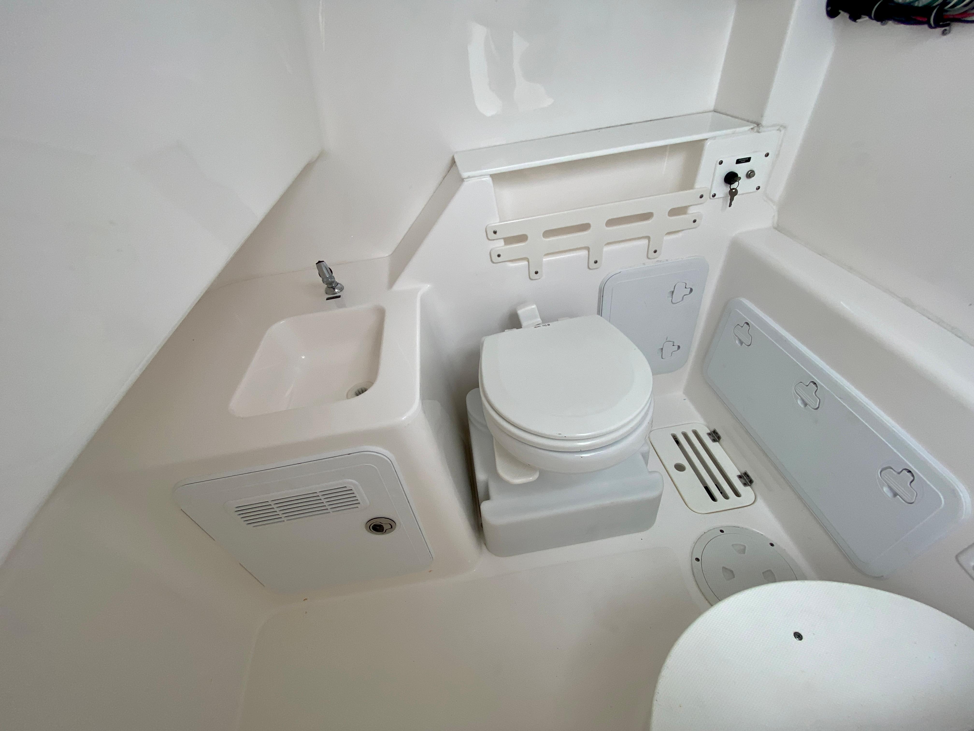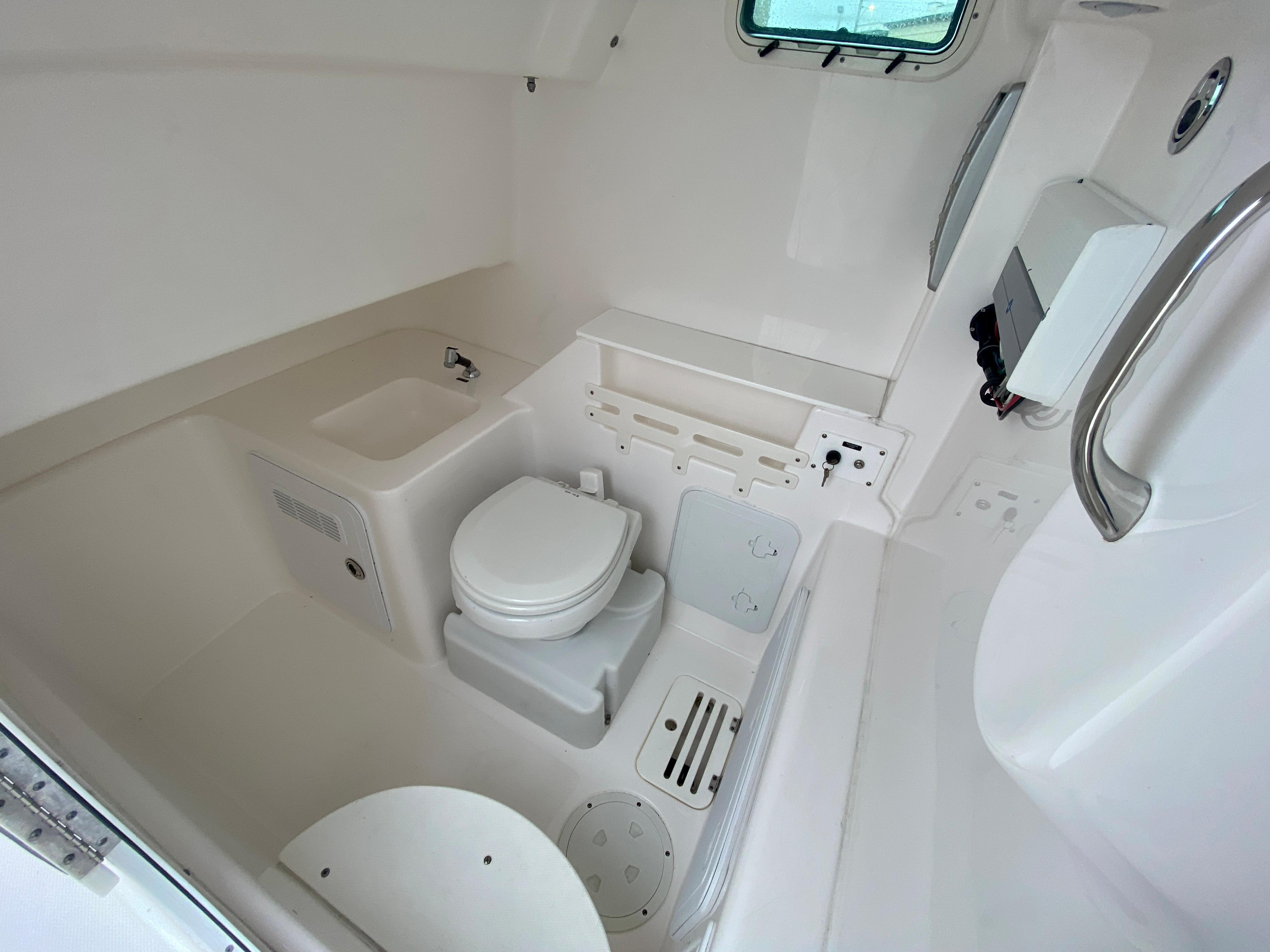The 325cc is also loaded when it comes to style and comfort. The electric bow table converts to a sun lounge at the push of a button, and the roomy head compartment comes with a sink, shower, and china bowl head with macerator and holding tank. There is abundant plush seating fore and aft, and 131 square feet of cockpit space for friends and family. The 325cc features Everglades' patented tempered glass, hydraulic sliding windshield. Designed for ventilation as well as safety while running at night, it is one of many exclusive Everglades standards. Other notable safety features include a lockable transom gate with freeing port, 3 bilge pumps, and of course, Everglades' patented unsinkable RAMCAP® construction.